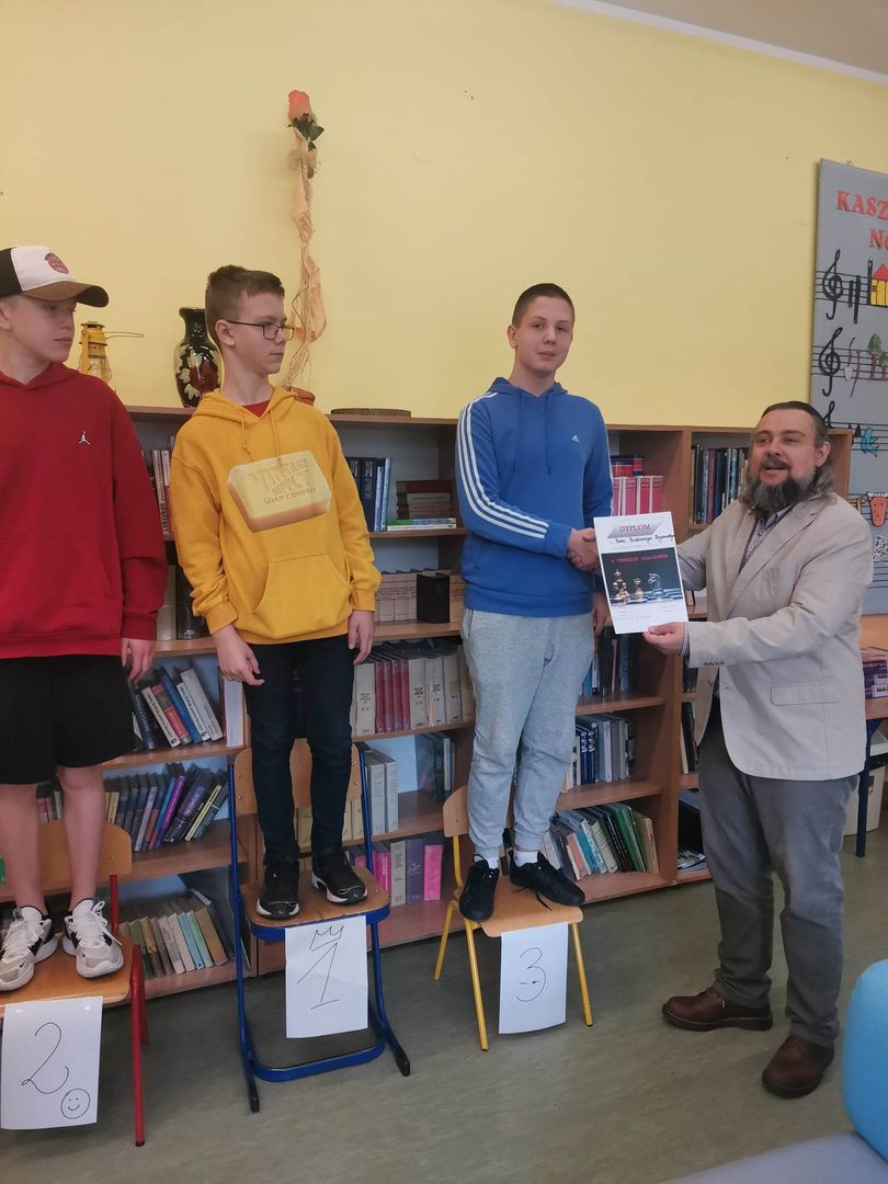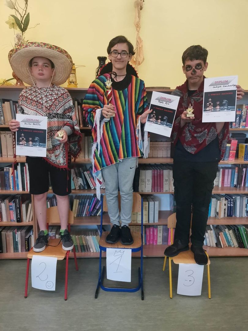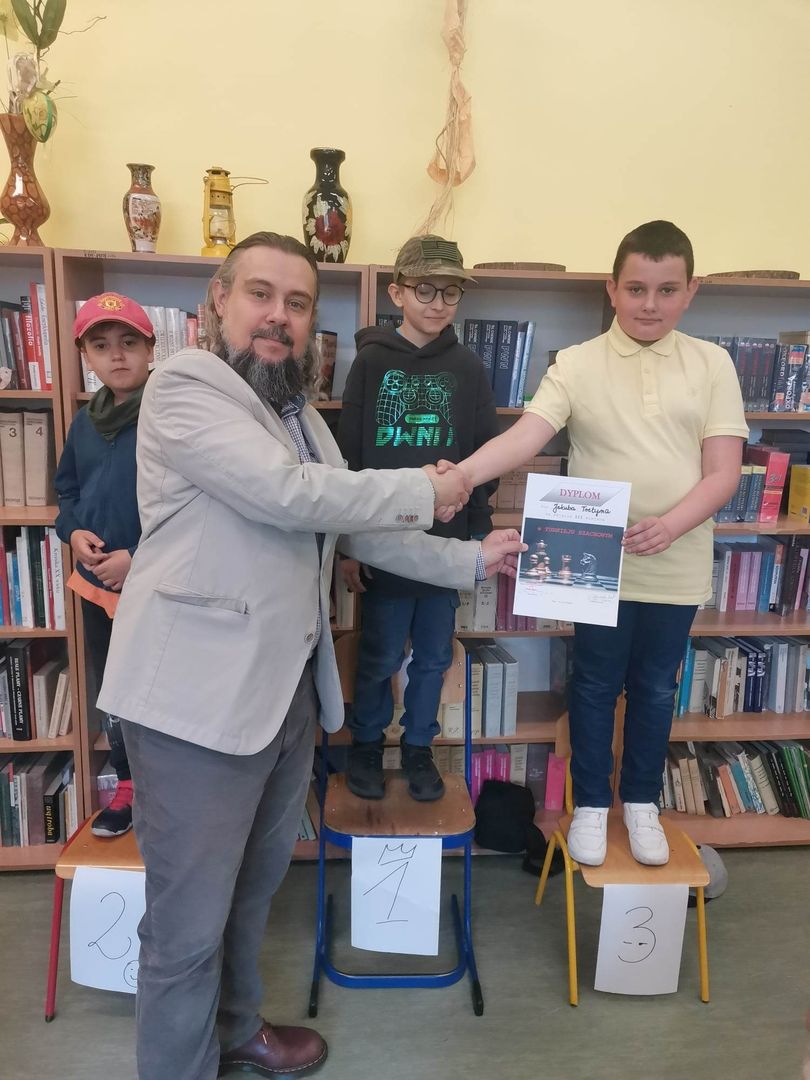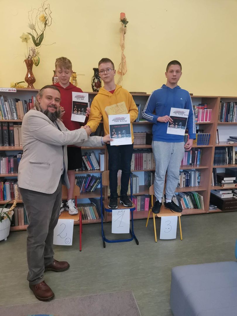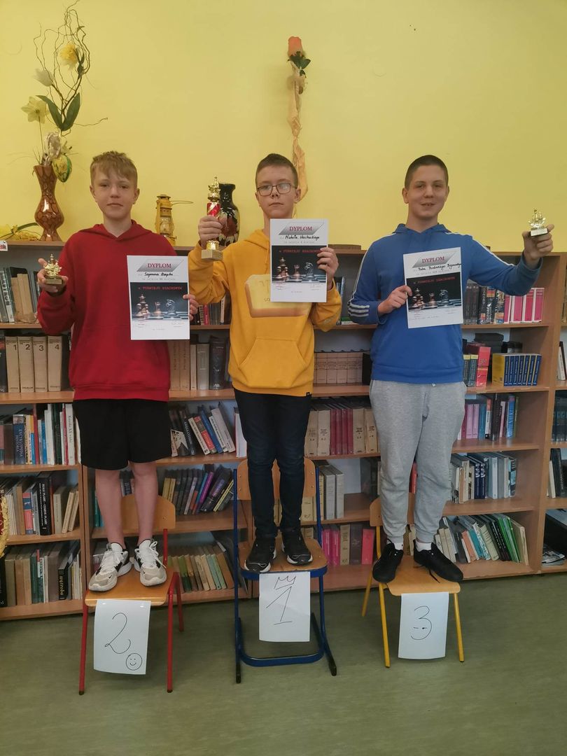 Osoby te otrzymały dyplomy i puchary. Serdecznie gratulujemy zwycięzcom! Wszystkim uczestnikom turnieju życzymy dalszych sukcesów. Dziękujemy za zaciętą rywalizację, grę fair-play i atmosferę świetnej zabawy! Mamy nadzieję, że tegoroczne pierwsze szkolne zawody szachowe staną się dodatkową zachętą dla pozostałych uczniów do zgłębiania tajników gry w szachy. Bowiem szachy to wspaniała gra, która sprzyja wszechstronnemu rozwojowi: uczy logicznego myślenia, przewidywania, sportowego współzawodnictwa, refleksu i cierpliwości.