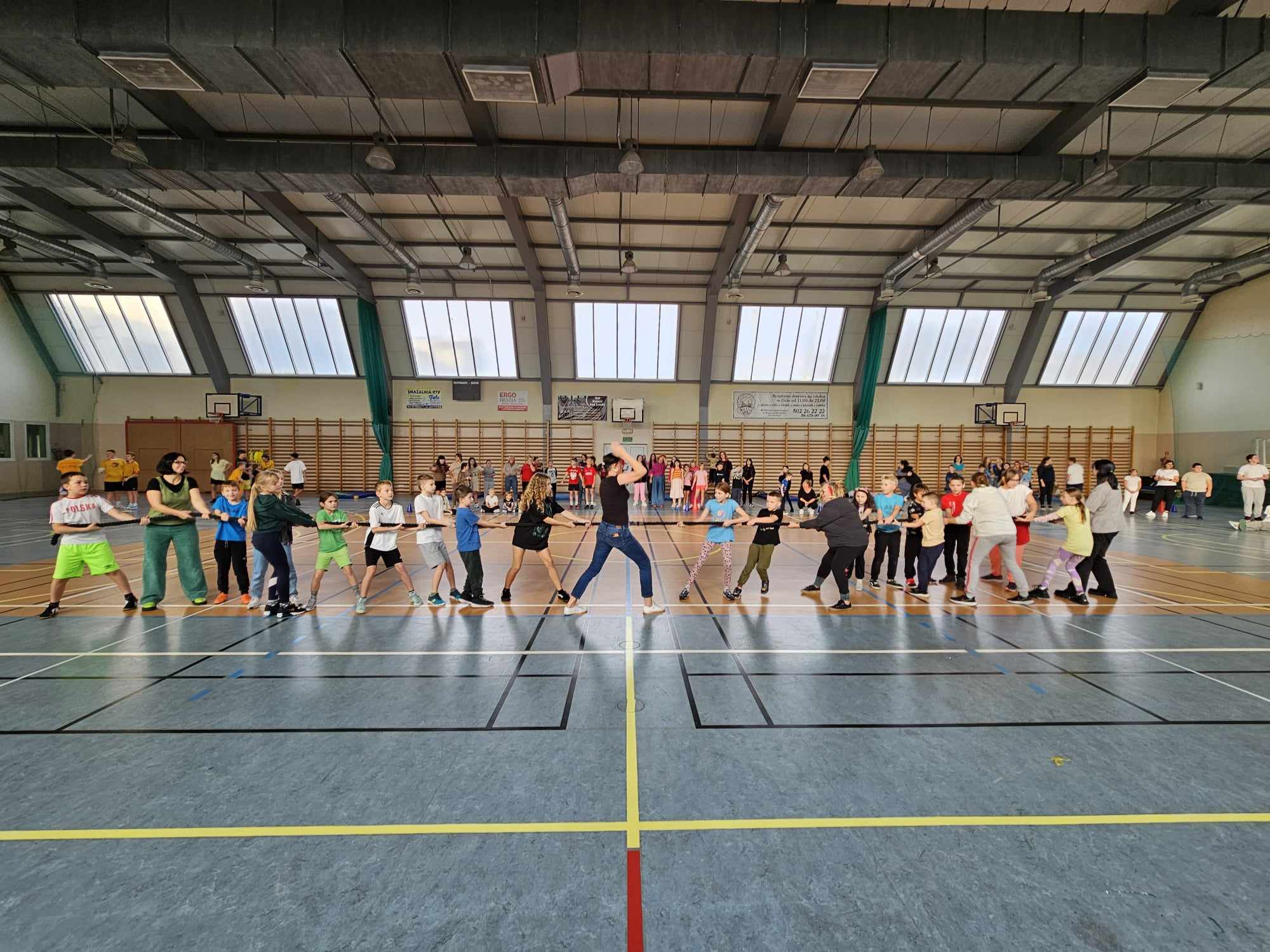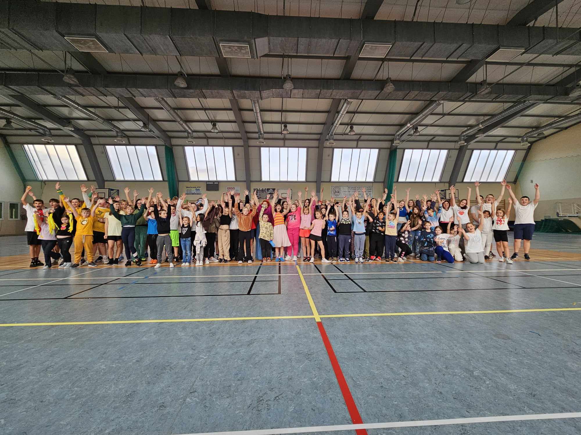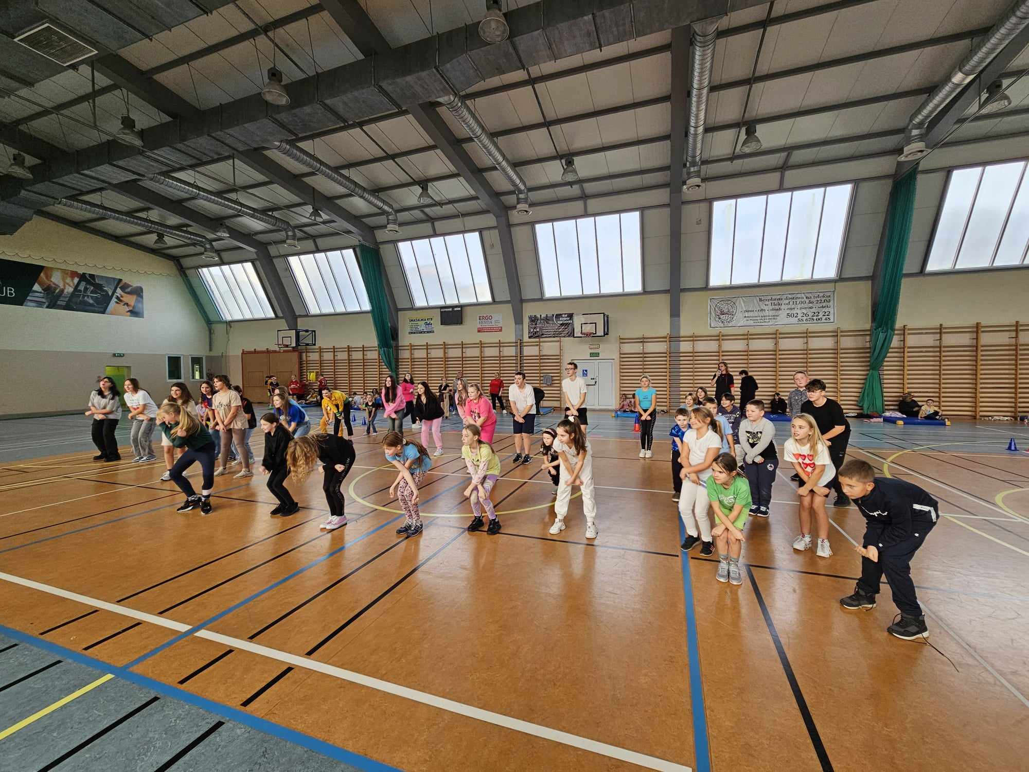 Po zakończonej rywalizacji uczniowie zatańczyli Zumbę pod dyktando Martyny Aleksandrowicz po której zrobiliśmy wspólne pamiątkowe zdjęcie.