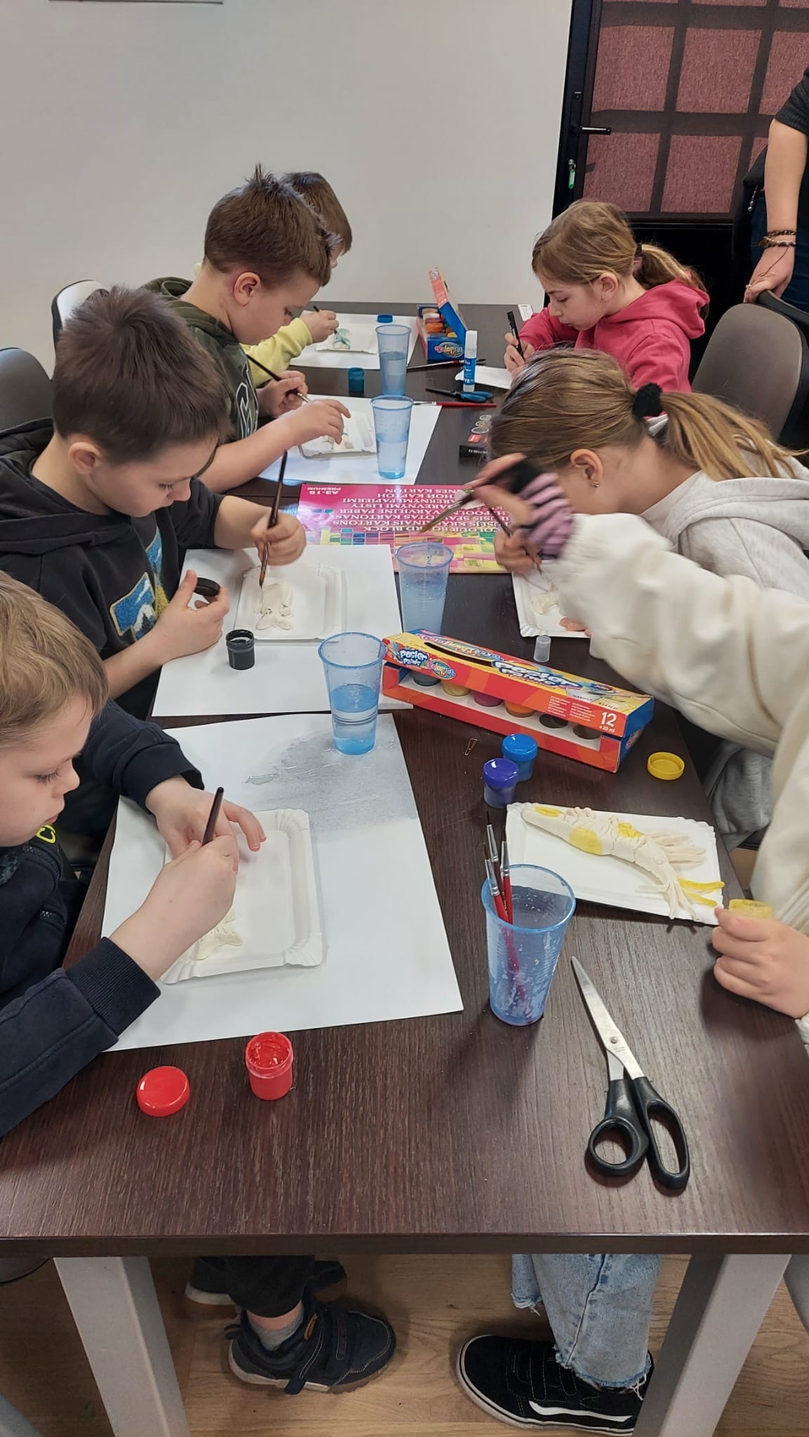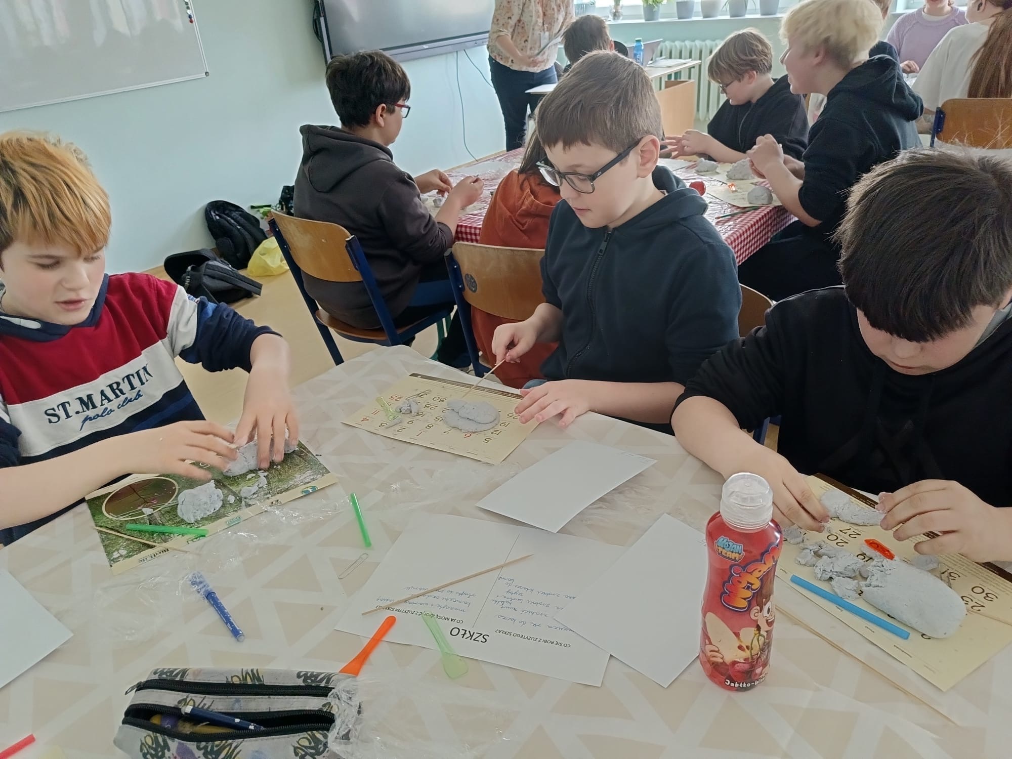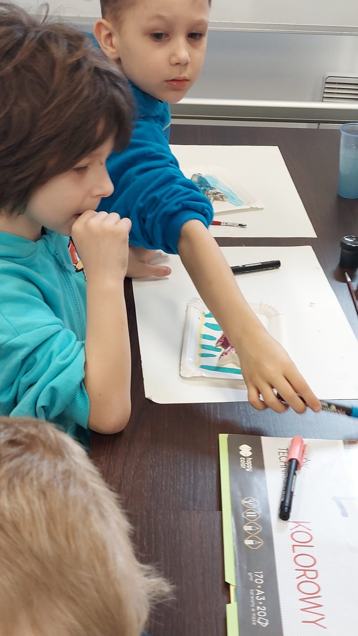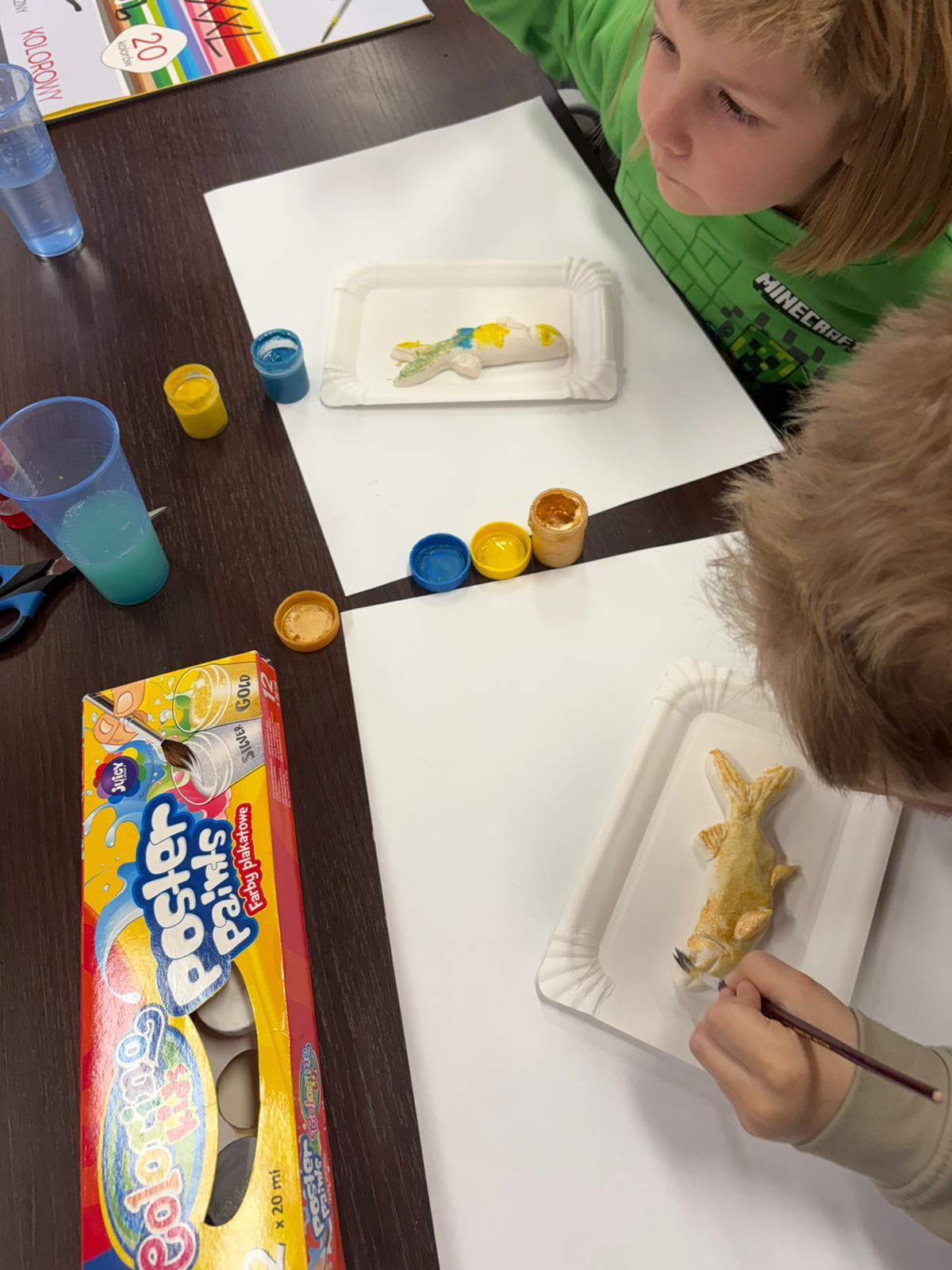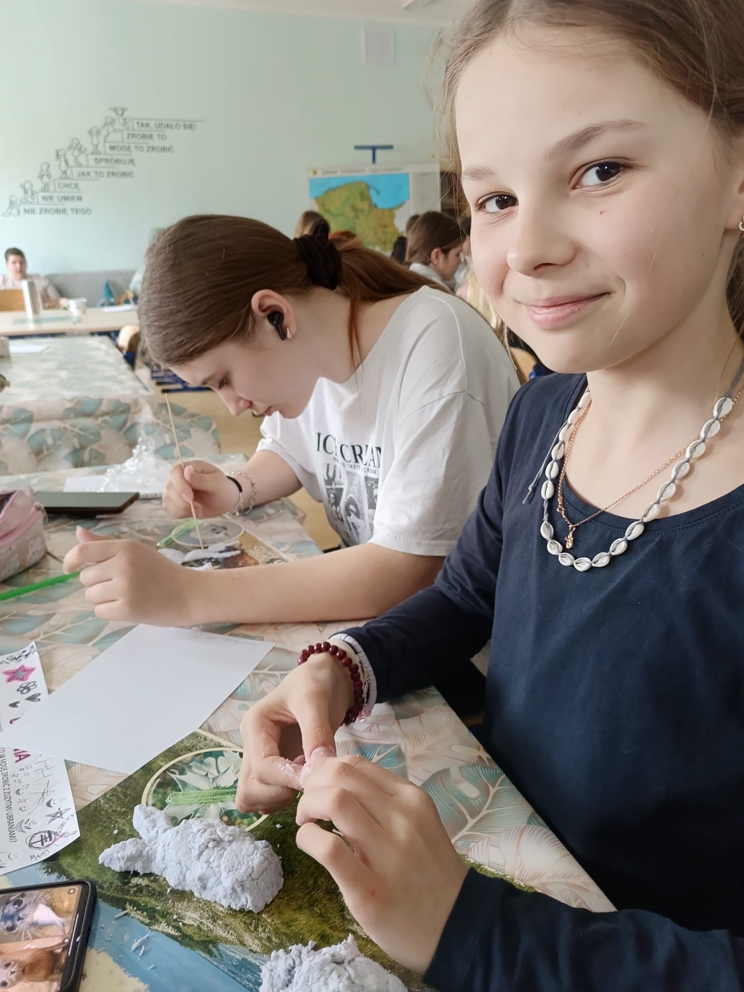 - Konkurs Drugie Życie Odpadów II tura. Pracowały w niej klasy szóste i siódma. Wyczerpujący wstęp o współczesnych problemach ekologicznych posłużył do dyskusji o korzyściach recyklingu i upcyklingu. Uczyliśmy się, jak zmniejszać zużycie surowców naturalnych oraz ilości powstałych odpadów. W duchu upcyklingu, czyli bez zbędnego zużycia energii elektrycznej i gazu, praktykowaliśmy techniki ręczne. To również przyczynia się do dbania o nasze środowisko, a może też stać się przedmiotem sztuki, na co liczymy jako organizatorzy Konkursu „Drugie Życie Odpadów”. Rozwiązanie konkursu nastąpi dopiero w maju, jako że prace z masy papierowej wymagają wysuszenie i pomalowania.