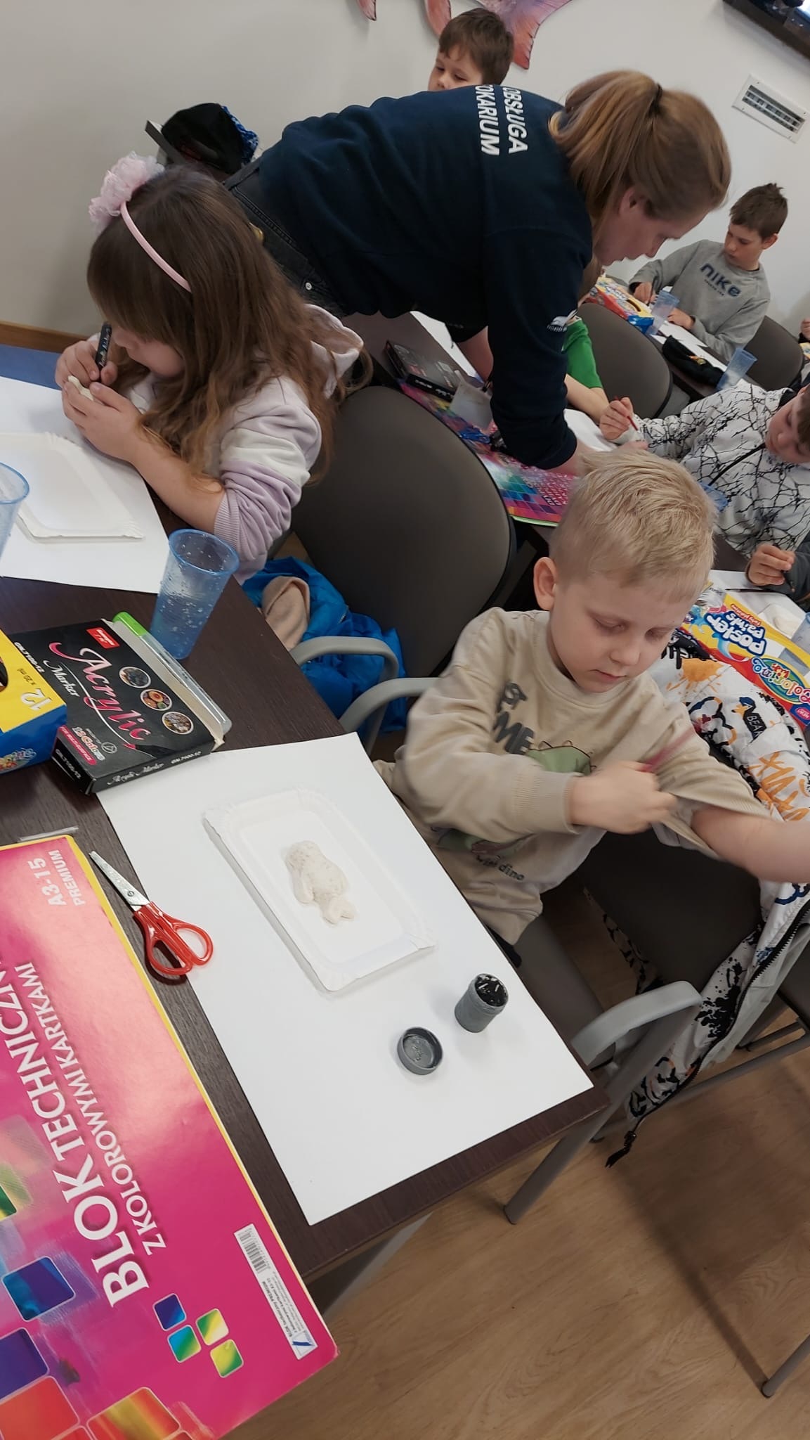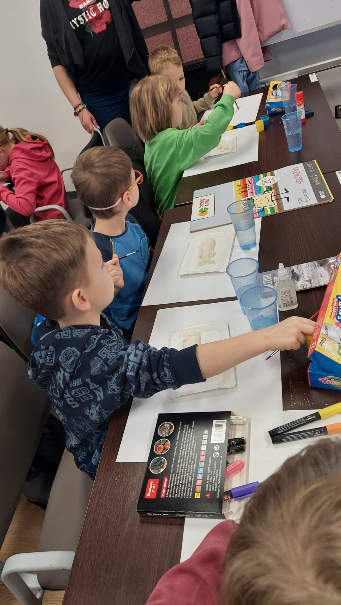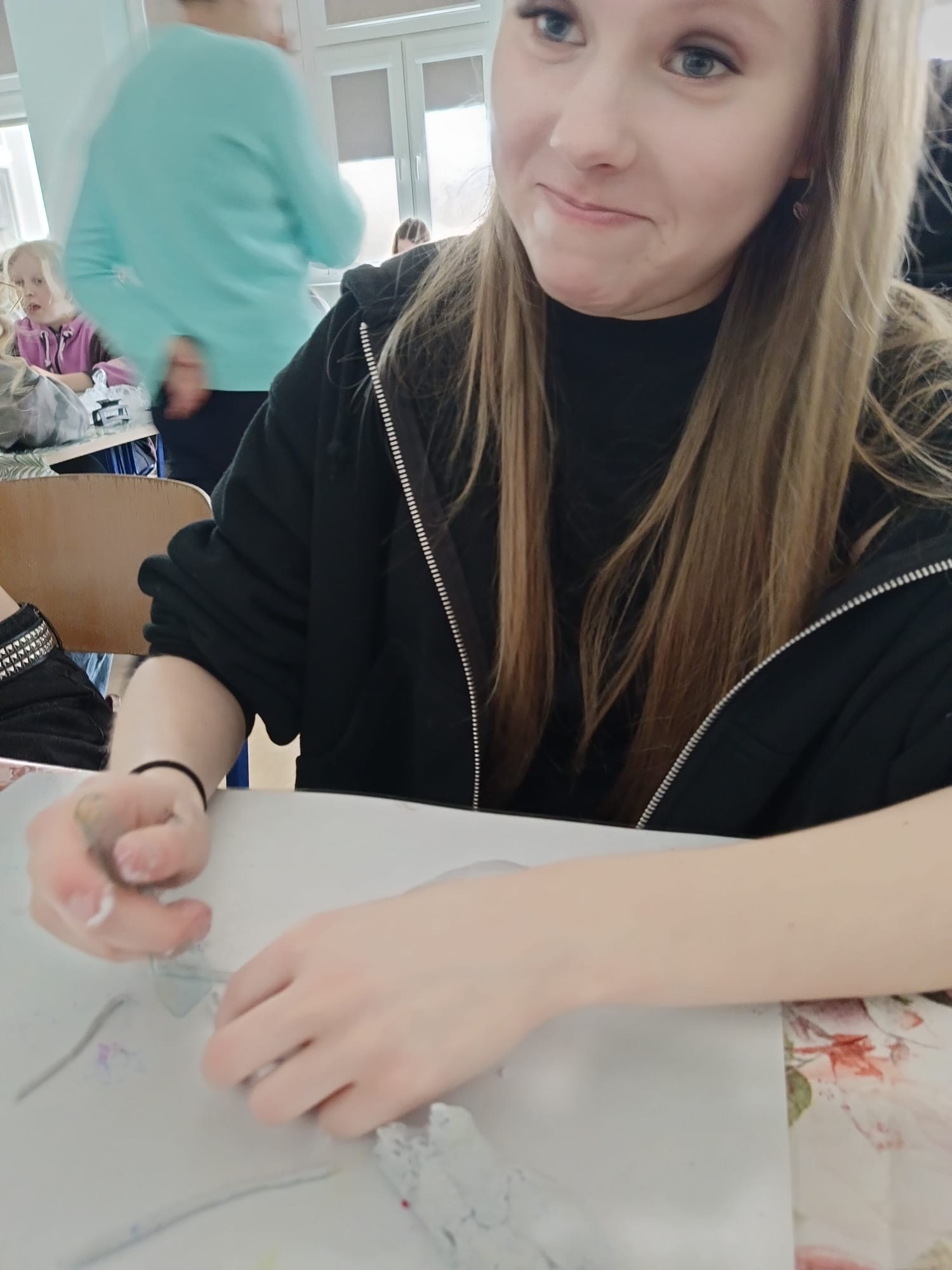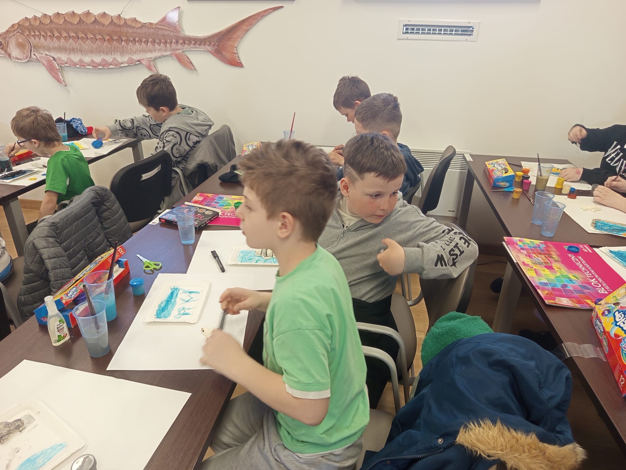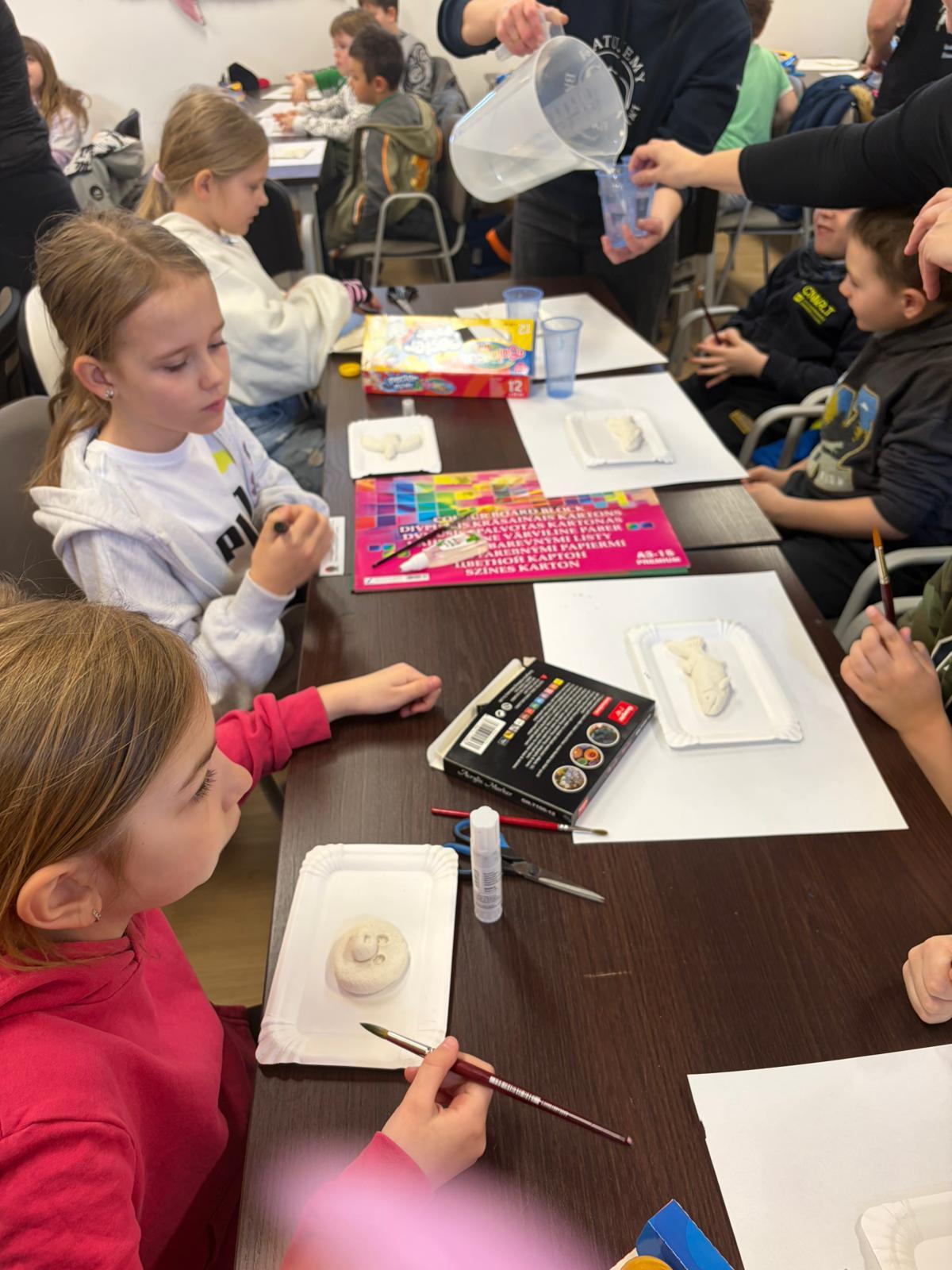 - Konkurs Drugie Życie Odpadów II tura. Pracowały w niej klasy szóste i siódma. Wyczerpujący wstęp o współczesnych problemach ekologicznych posłużył do dyskusji o korzyściach recyklingu i upcyklingu. Uczyliśmy się, jak zmniejszać zużycie surowców naturalnych oraz ilości powstałych odpadów. W duchu upcyklingu, czyli bez zbędnego zużycia energii elektrycznej i gazu, praktykowaliśmy techniki ręczne. To również przyczynia się do dbania o nasze środowisko, a może też stać się przedmiotem sztuki, na co liczymy jako organizatorzy Konkursu „Drugie Życie Odpadów”. Rozwiązanie konkursu nastąpi dopiero w maju, jako że prace z masy papierowej wymagają wysuszenie i pomalowania.
