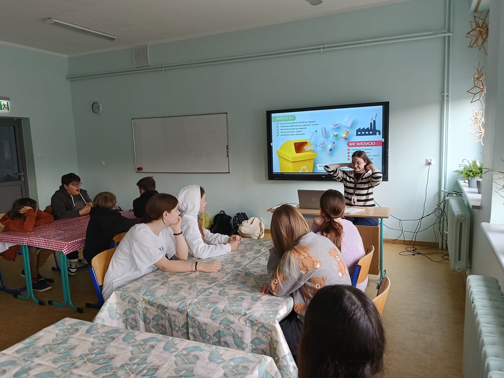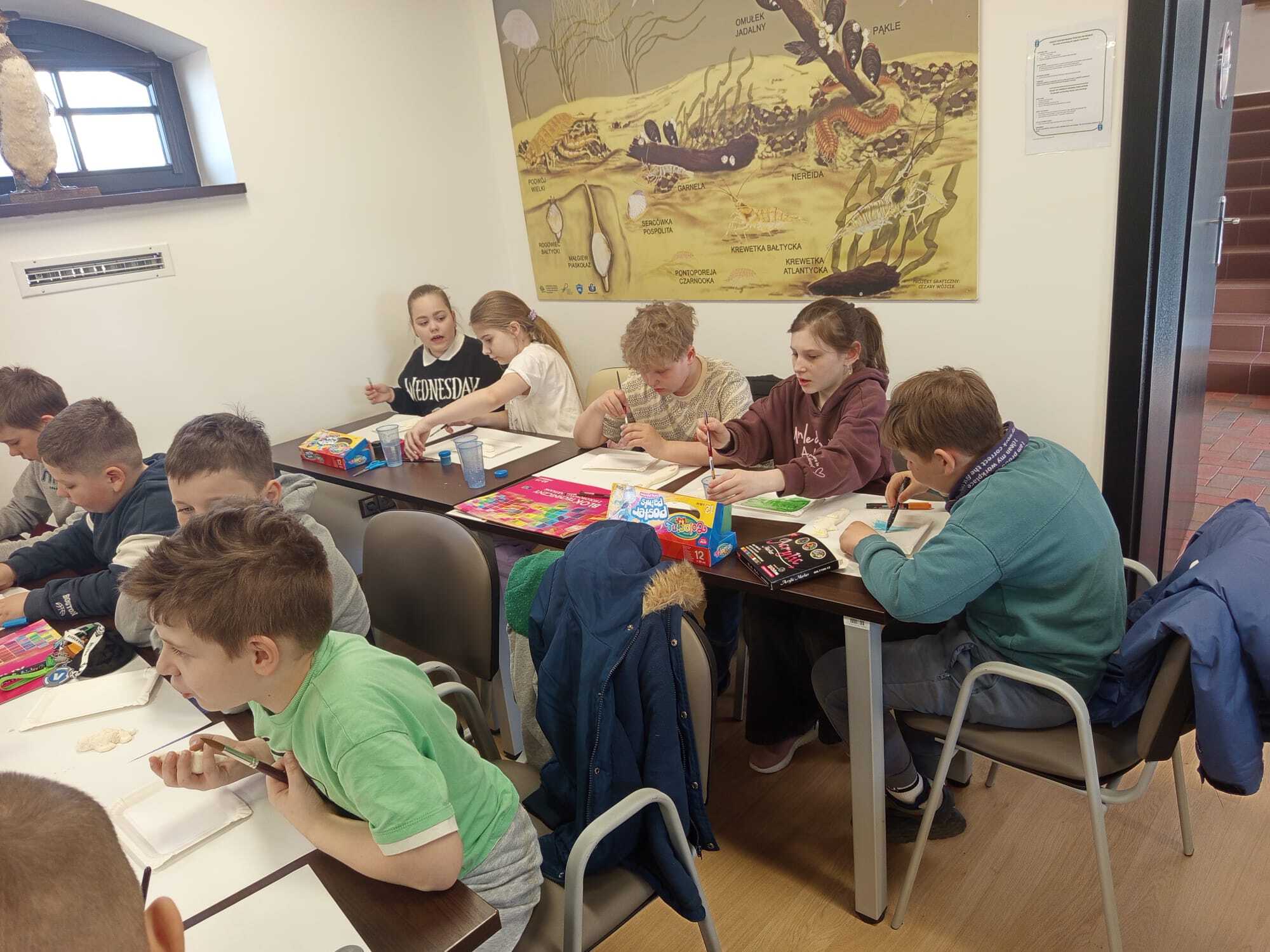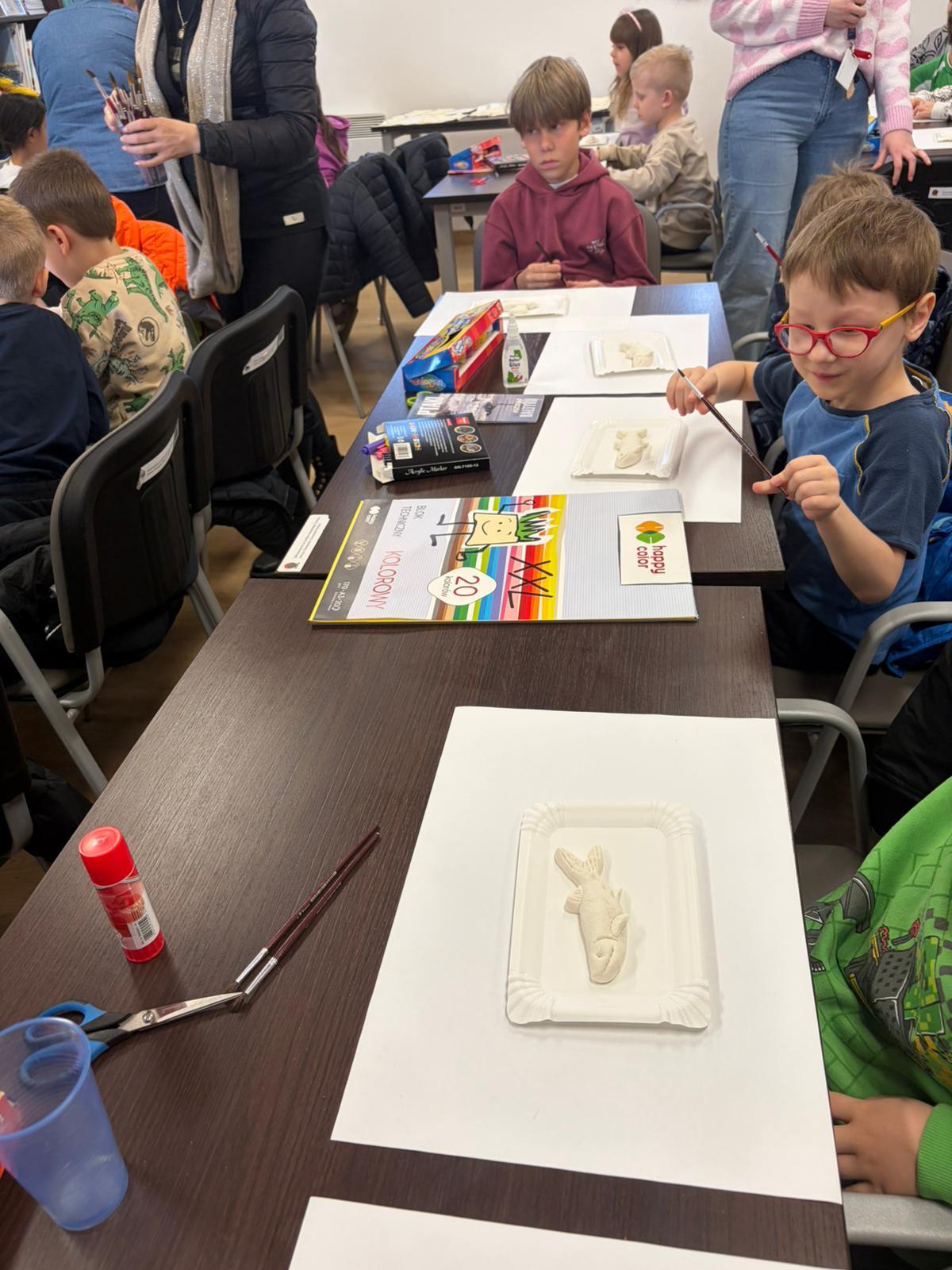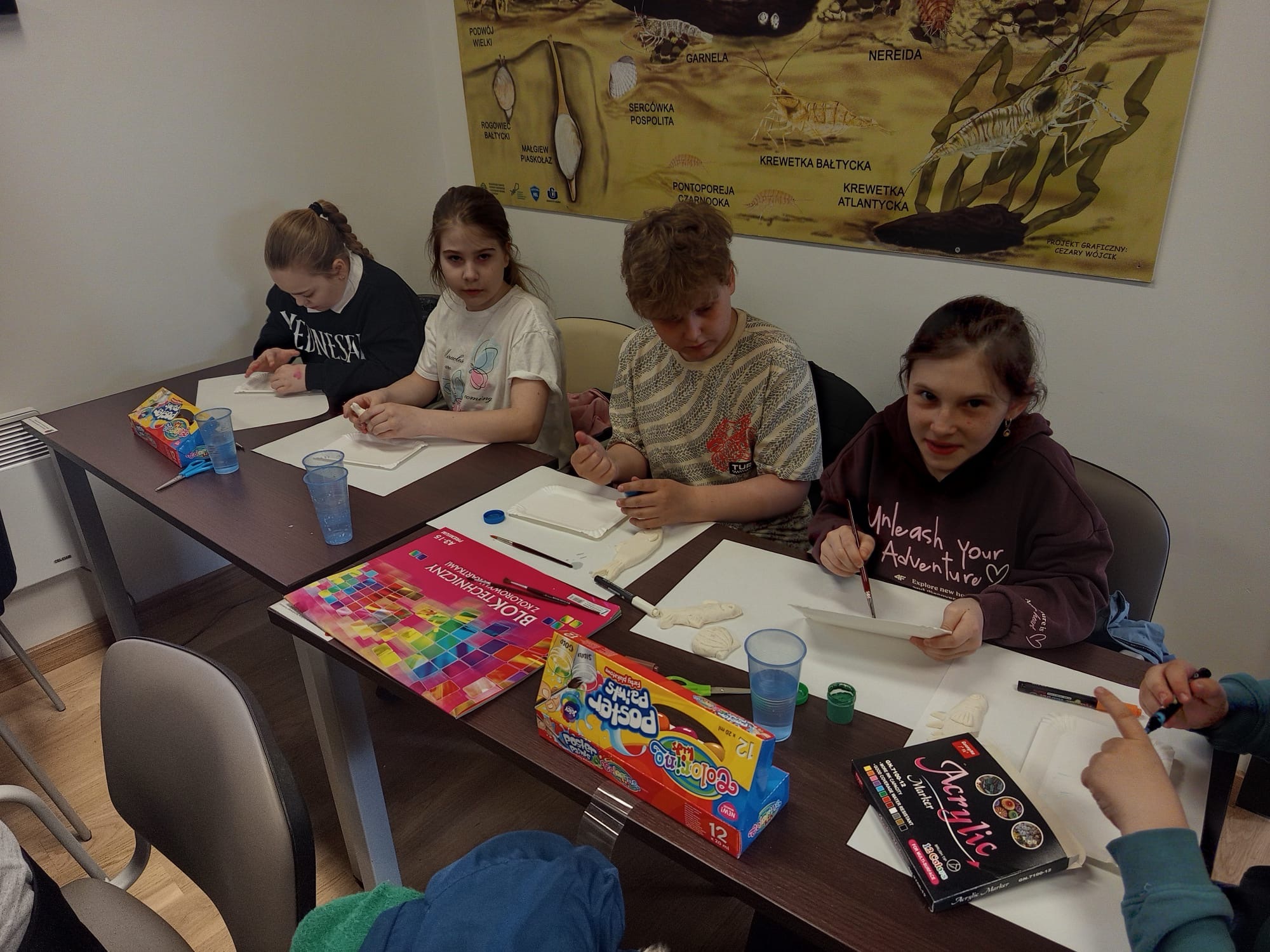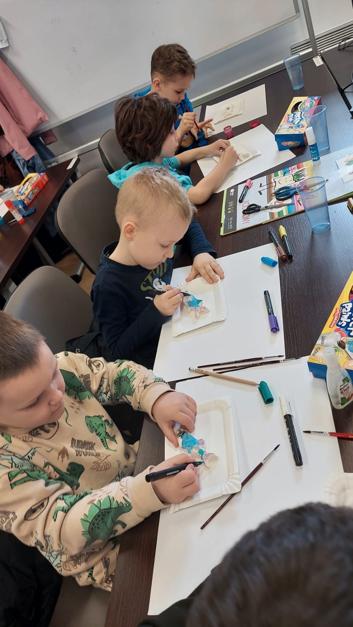 - Konkurs Drugie Życie Odpadów II tura. Pracowały w niej klasy szóste i siódma. Wyczerpujący wstęp o współczesnych problemach ekologicznych posłużył do dyskusji o korzyściach recyklingu i upcyklingu. Uczyliśmy się, jak zmniejszać zużycie surowców naturalnych oraz ilości powstałych odpadów. W duchu upcyklingu, czyli bez zbędnego zużycia energii elektrycznej i gazu, praktykowaliśmy techniki ręczne. To również przyczynia się do dbania o nasze środowisko, a może też stać się przedmiotem sztuki, na co liczymy jako organizatorzy Konkursu „Drugie Życie Odpadów”. Rozwiązanie konkursu nastąpi dopiero w maju, jako że prace z masy papierowej wymagają wysuszenie i pomalowania.