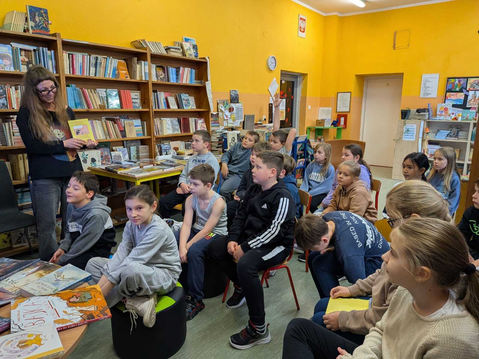 Najmłodsze klasy SP od godziny 9.00 w bibliotece szkolnej słuchały fragmentów literatury podejmującej w sposób przygodowy i przystępny dla młodego odbiorcy globalne zagadnienia Życia na Lądzie i Działań w Dziedzinie Klimatu. Pobyt w bibliotece, słuchanie ze zrozumieniem i oswajanie z książkami, które mogą wyjawiać tajemnice świata, to także lekcja o dostępie do edukacji, a ta ostatnia z kolei jest niezbędnym warunkiem rozwoju.