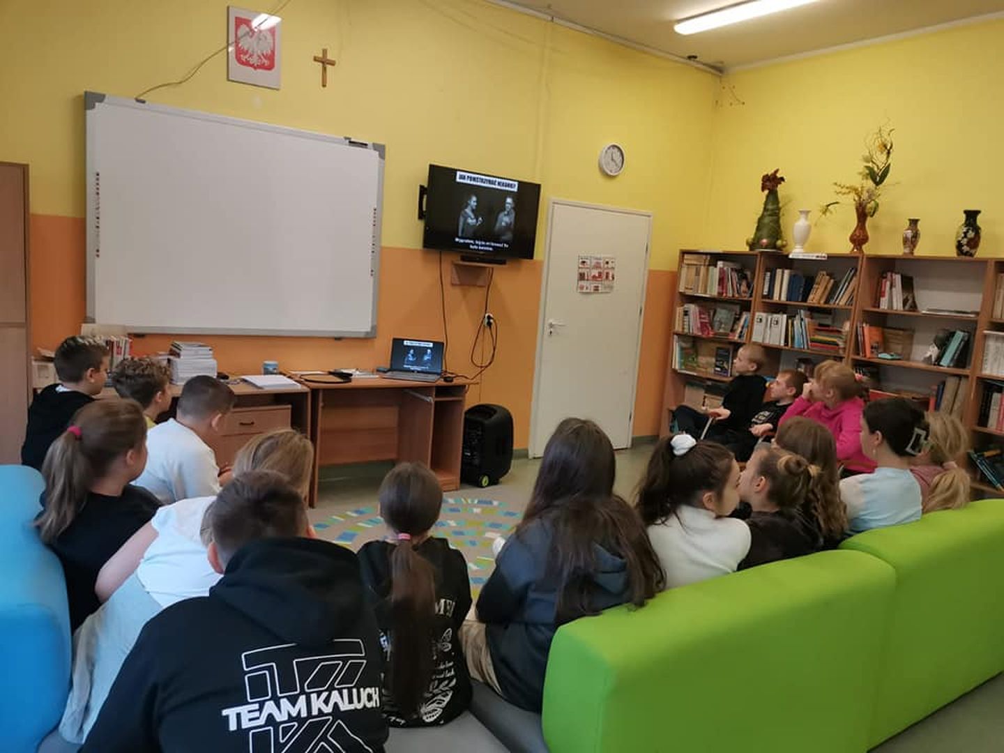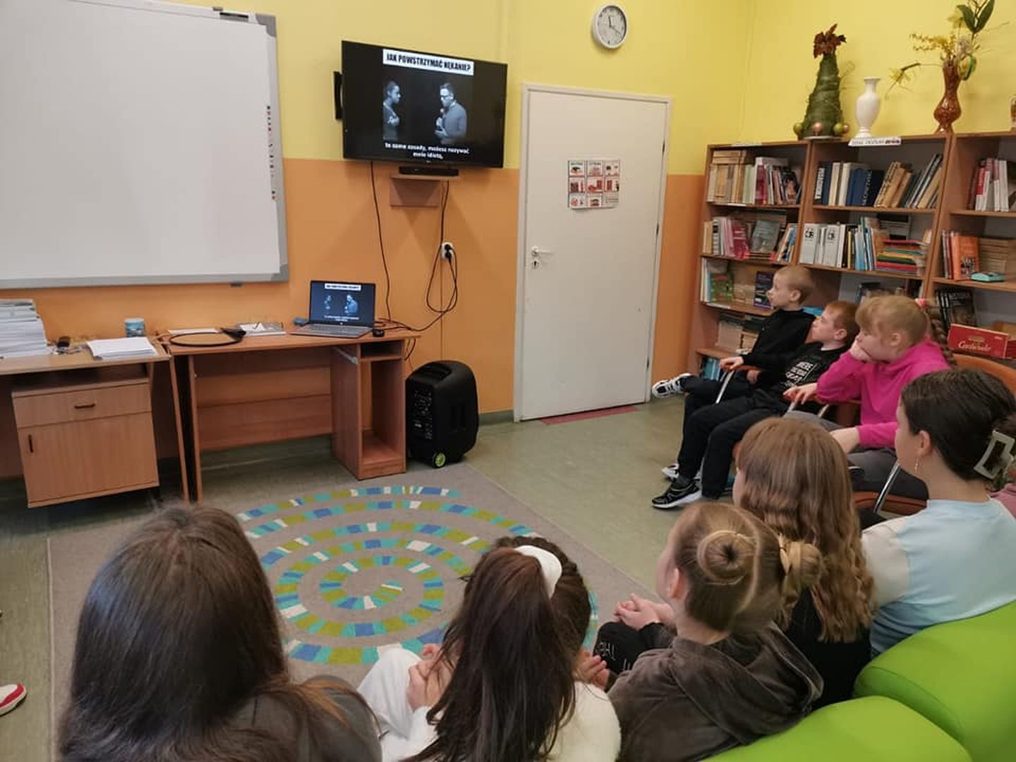 Kolejny dzień przyjemnych doznań w strefie relaksu. Dobyły poduszki i pluszaki od Rady Rodziców, miłe bardzo przytulanki. Na herbatkę, maseczkę, kojący leżaczek przydreptuje coraz więcej uczniów. Zielona Zona na topie.