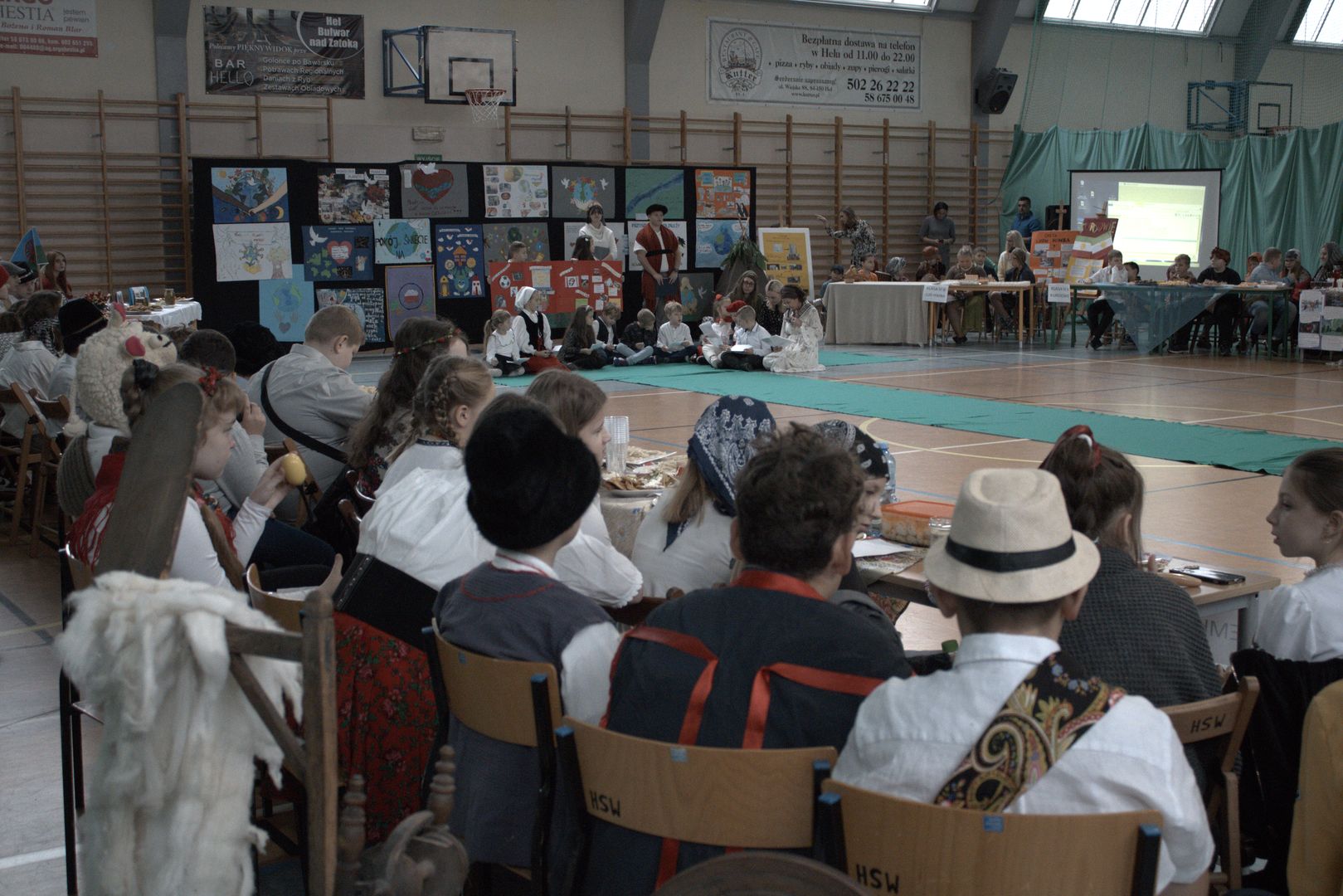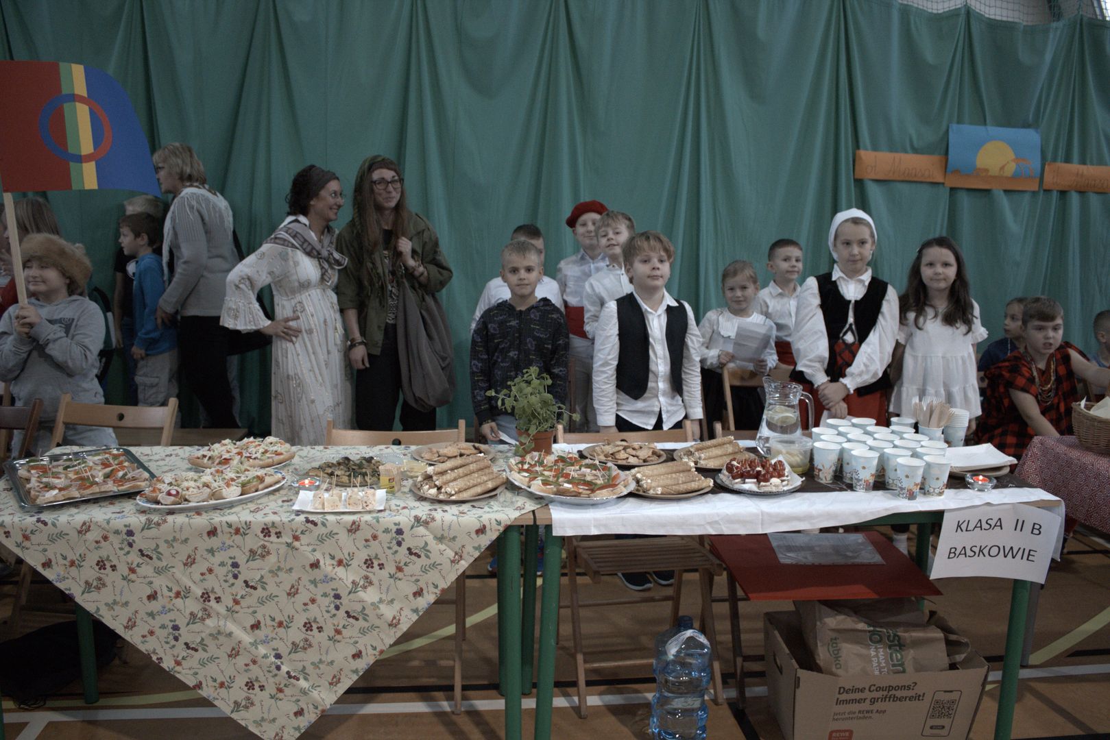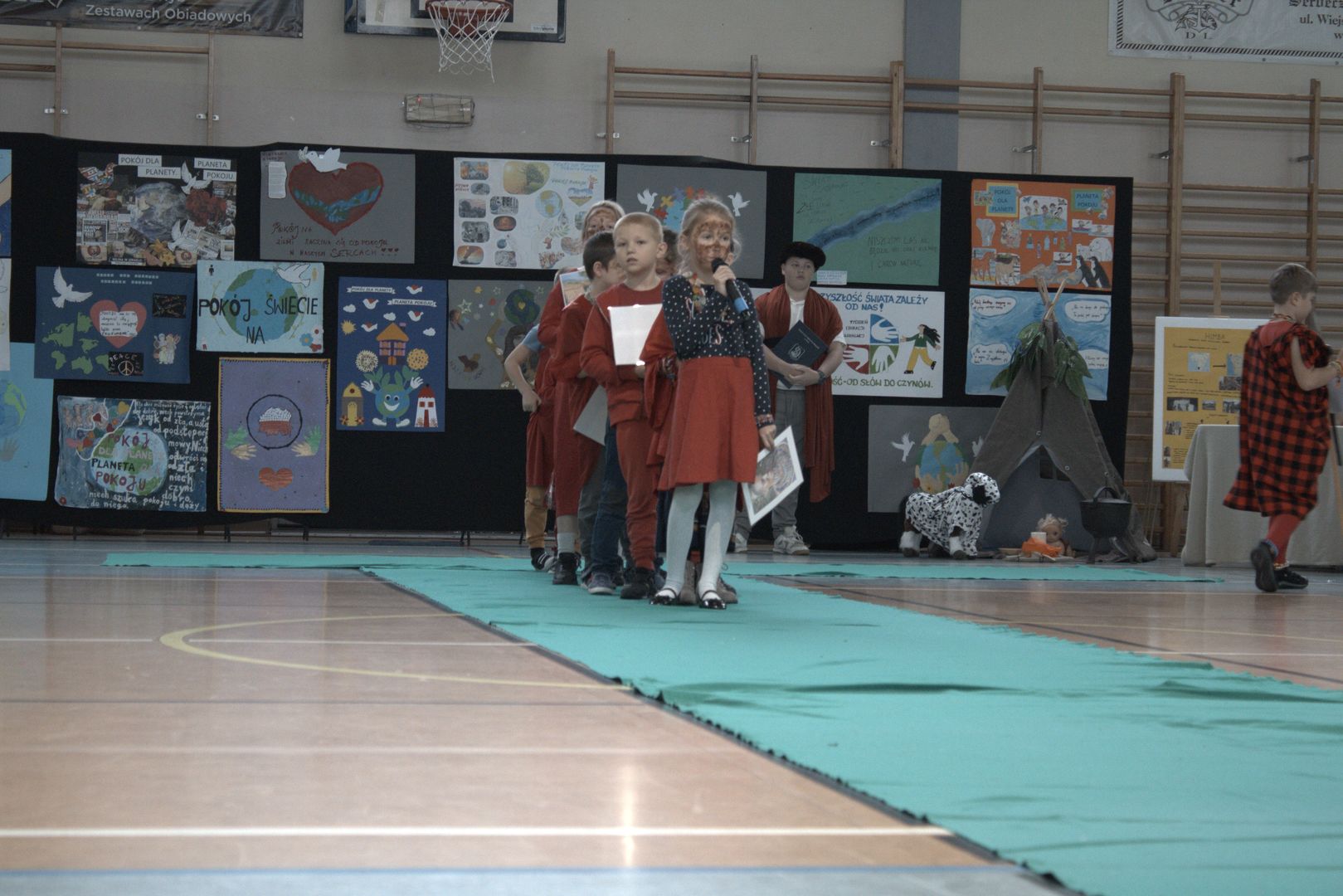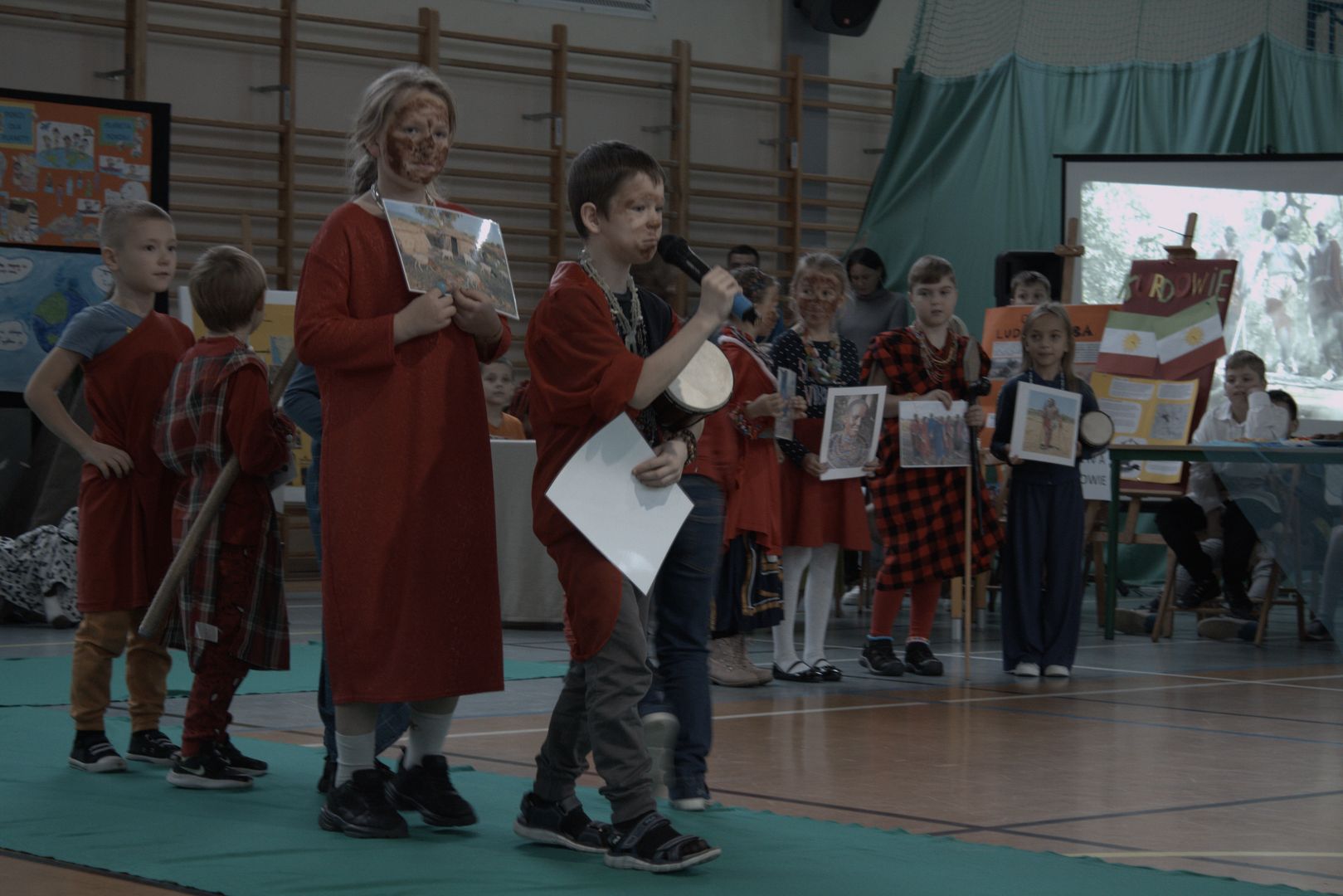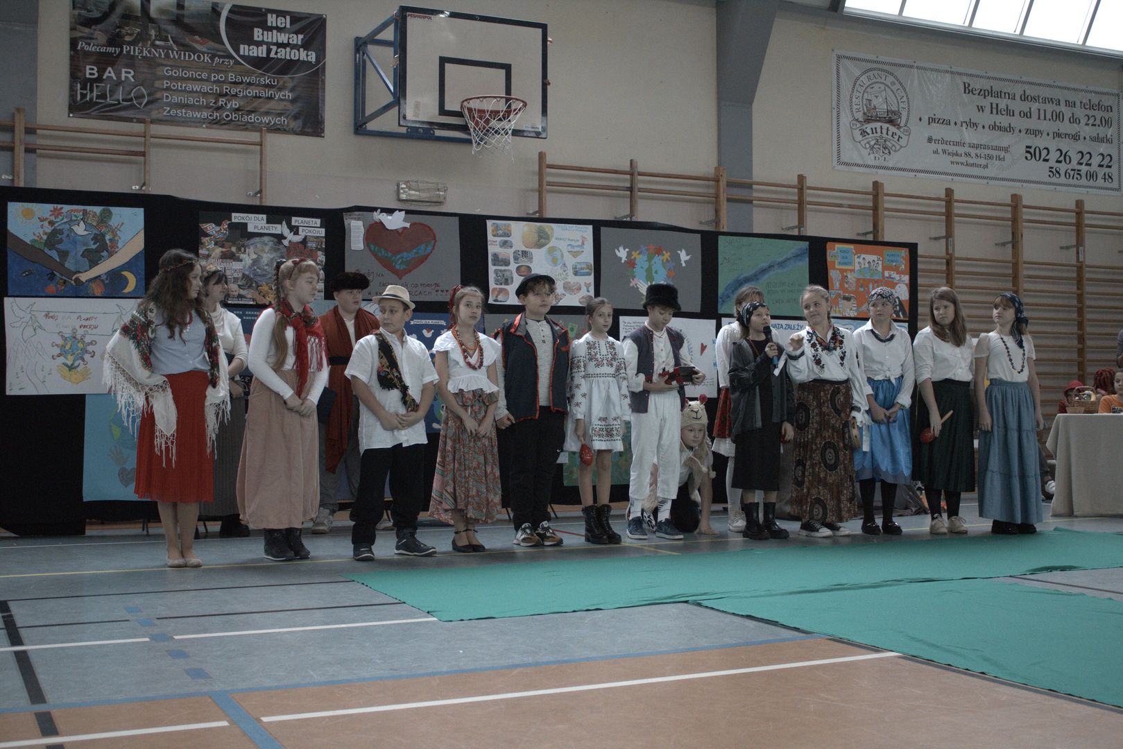 Piątek podyktowany był działaniami związanymi z przybliżaniem obrazu małych nacji, grup etnicznych i kulturowych, tak aby temat pokoju na planecie Ziemi dotyczył wszystkich, także tych, którzy są nam odlegli, czasami wręcz egzotyczni. Klasy losowały grupy a następnie przygotowywały prezentację oraz krótki poczęstunek. I tak klasa 1a w tanecznym pląsie zamieniała się w Ormian, czyli starożytny naród indoeuropejski. Klasa 2a przeniosła nas do Afryki i przedstawiła etniczną grupę Masajów, a 2b wcieliła się w prastary naród znad Zatoki Biskajskiej - Basków. Trzecioklasiści wylosowali Saamów, zwanych Lapończykami, związanych z rejonem północnym, a klasy czwarte pochyliły się nad ludem Himba i Kurdami. Piątacy zaprezentowali kulturę Łemków, a klasa szósta Tatarów. Siódmoklasiści otworzyli się na kulturę żydowską, a klasa ósma zawirowała w rytm muzyki ludów Sinti. Najstarsi reprezentanci szkoły, uczniowie HEL-LO przybliżyli kulturę najmniejszej grupy kulturowo- religijnej w naszym kraju- Karaimów. Pokaz uzupełniały muzyka i charakterystyczne przysmaki danej nacji.