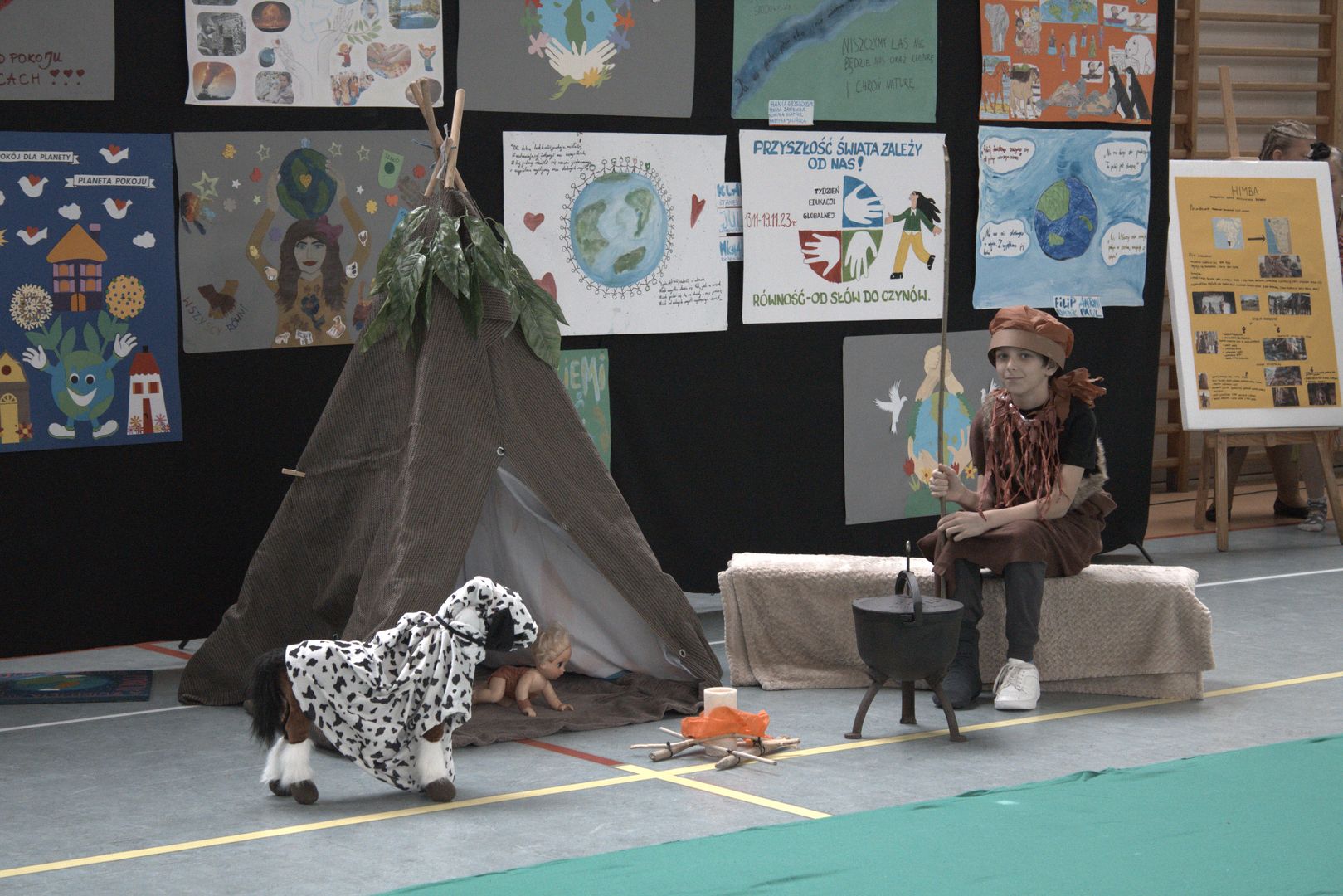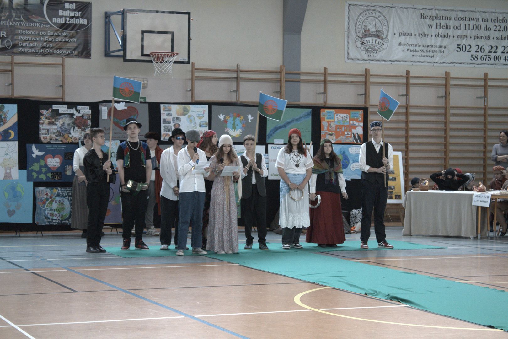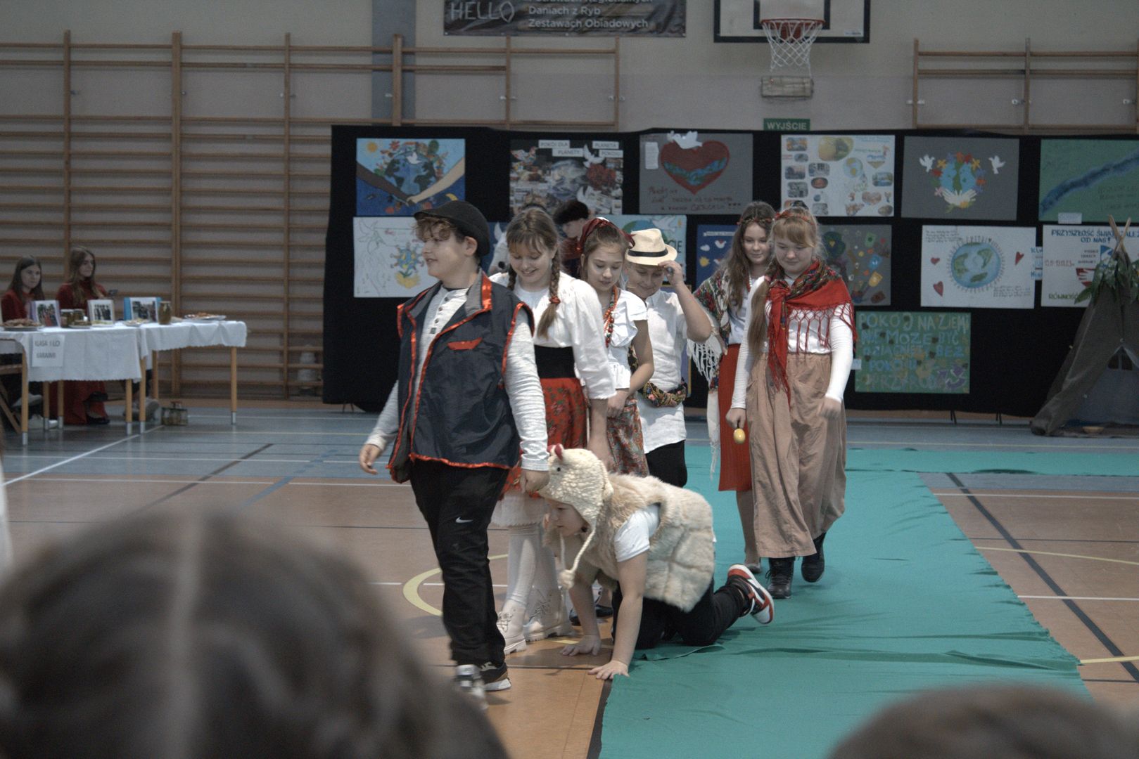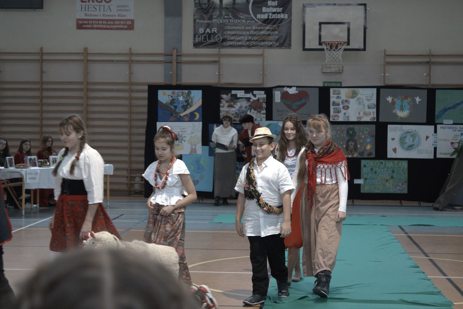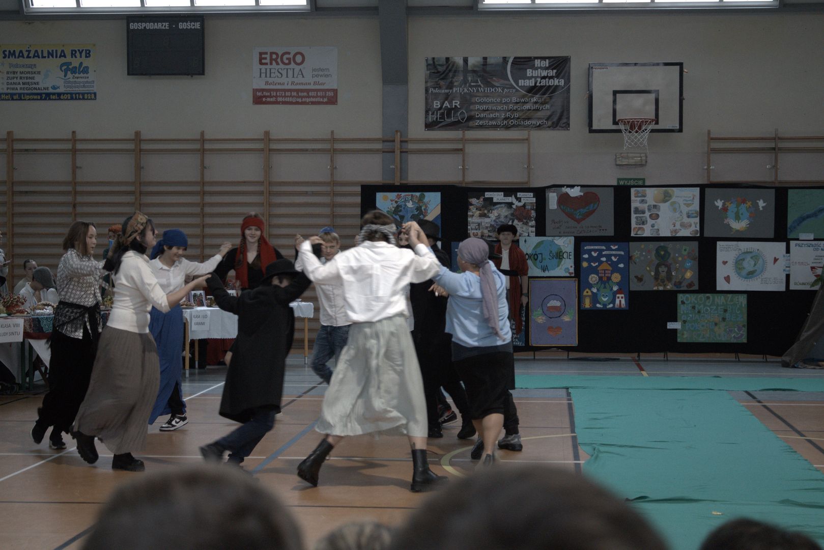 Piątek podyktowany był działaniami związanymi z przybliżaniem obrazu małych nacji, grup etnicznych i kulturowych, tak aby temat pokoju na planecie Ziemi dotyczył wszystkich, także tych, którzy są nam odlegli, czasami wręcz egzotyczni. Klasy losowały grupy a następnie przygotowywały prezentację oraz krótki poczęstunek. I tak klasa 1a w tanecznym pląsie zamieniała się w Ormian, czyli starożytny naród indoeuropejski. Klasa 2a przeniosła nas do Afryki i przedstawiła etniczną grupę Masajów, a 2b wcieliła się w prastary naród znad Zatoki Biskajskiej - Basków. Trzecioklasiści wylosowali Saamów, zwanych Lapończykami, związanych z rejonem północnym, a klasy czwarte pochyliły się nad ludem Himba i Kurdami. Piątacy zaprezentowali kulturę Łemków, a klasa szósta Tatarów. Siódmoklasiści otworzyli się na kulturę żydowską, a klasa ósma zawirowała w rytm muzyki ludów Sinti. Najstarsi reprezentanci szkoły, uczniowie HEL-LO przybliżyli kulturę najmniejszej grupy kulturowo- religijnej w naszym kraju- Karaimów. Pokaz uzupełniały muzyka i charakterystyczne przysmaki danej nacji.