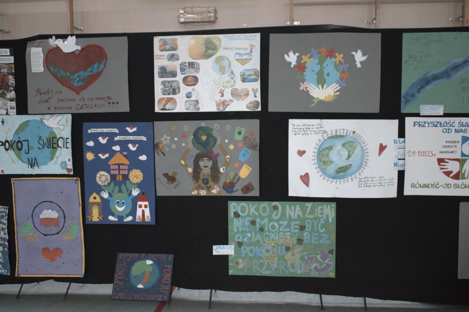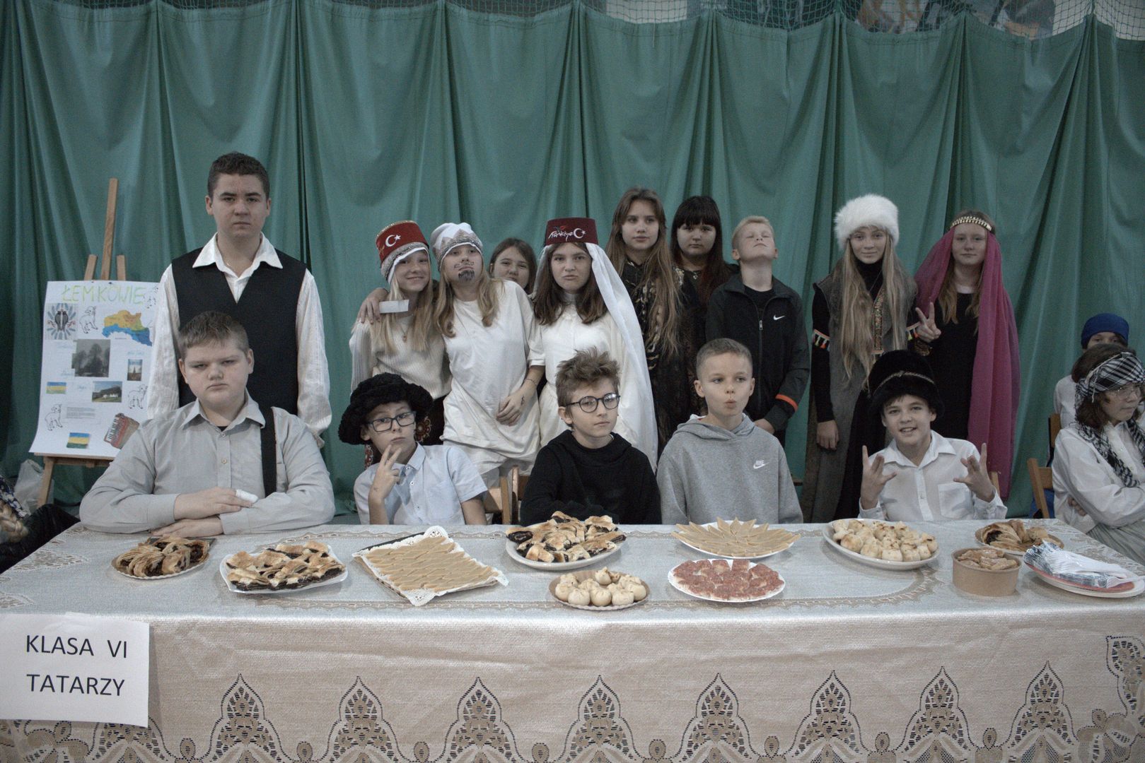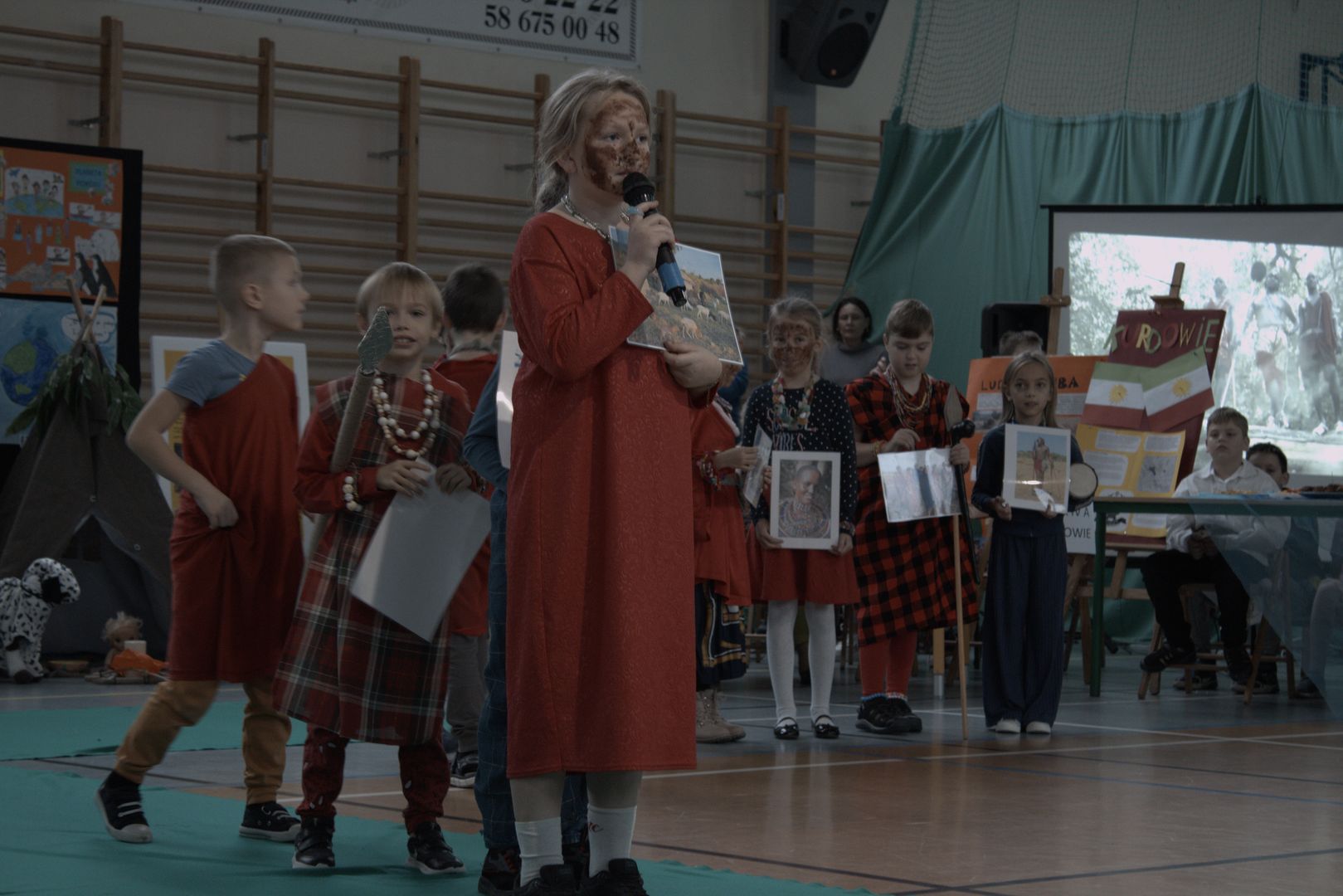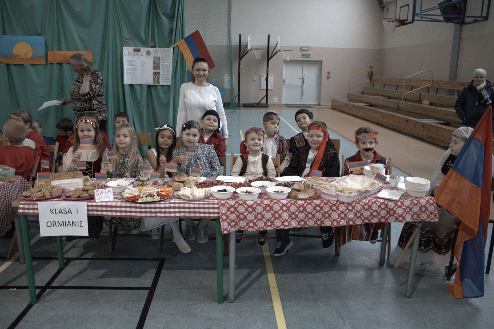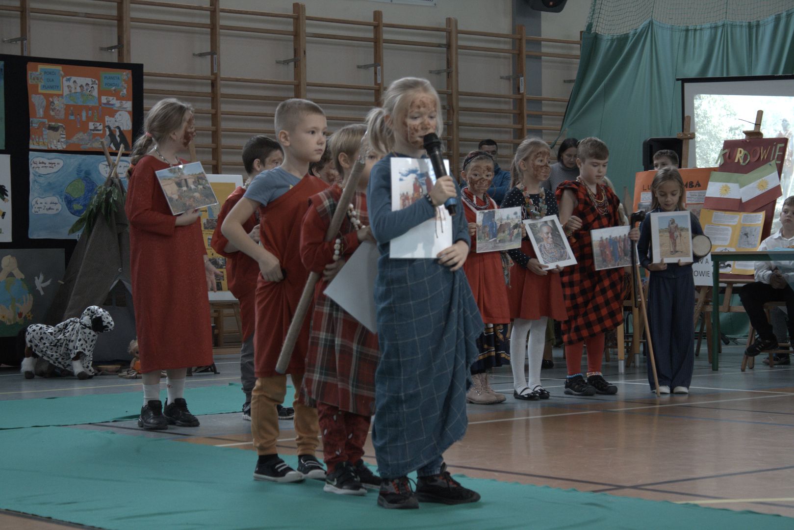 Piątek podyktowany był działaniami związanymi z przybliżaniem obrazu małych nacji, grup etnicznych i kulturowych, tak aby temat pokoju na planecie Ziemi dotyczył wszystkich, także tych, którzy są nam odlegli, czasami wręcz egzotyczni. Klasy losowały grupy a następnie przygotowywały prezentację oraz krótki poczęstunek. I tak klasa 1a w tanecznym pląsie zamieniała się w Ormian, czyli starożytny naród indoeuropejski. Klasa 2a przeniosła nas do Afryki i przedstawiła etniczną grupę Masajów, a 2b wcieliła się w prastary naród znad Zatoki Biskajskiej - Basków. Trzecioklasiści wylosowali Saamów, zwanych Lapończykami, związanych z rejonem północnym, a klasy czwarte pochyliły się nad ludem Himba i Kurdami. Piątacy zaprezentowali kulturę Łemków, a klasa szósta Tatarów. Siódmoklasiści otworzyli się na kulturę żydowską, a klasa ósma zawirowała w rytm muzyki ludów Sinti. Najstarsi reprezentanci szkoły, uczniowie HEL-LO przybliżyli kulturę najmniejszej grupy kulturowo- religijnej w naszym kraju- Karaimów. Pokaz uzupełniały muzyka i charakterystyczne przysmaki danej nacji.