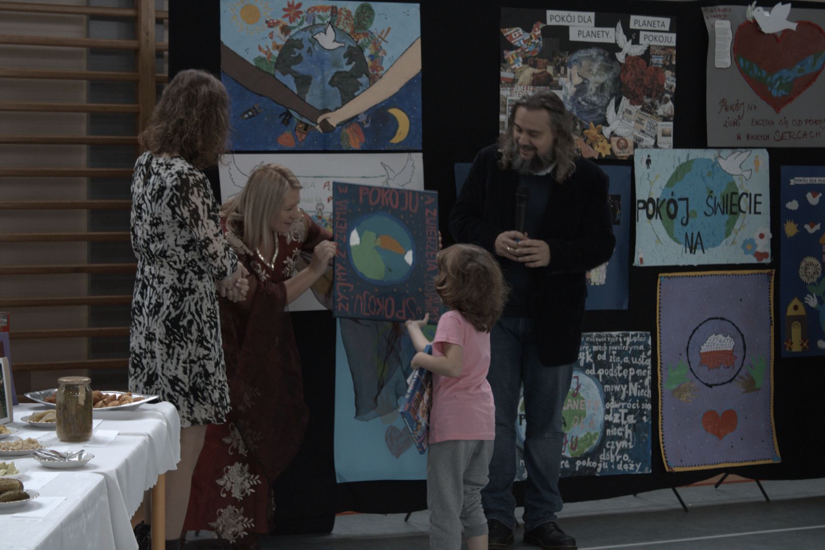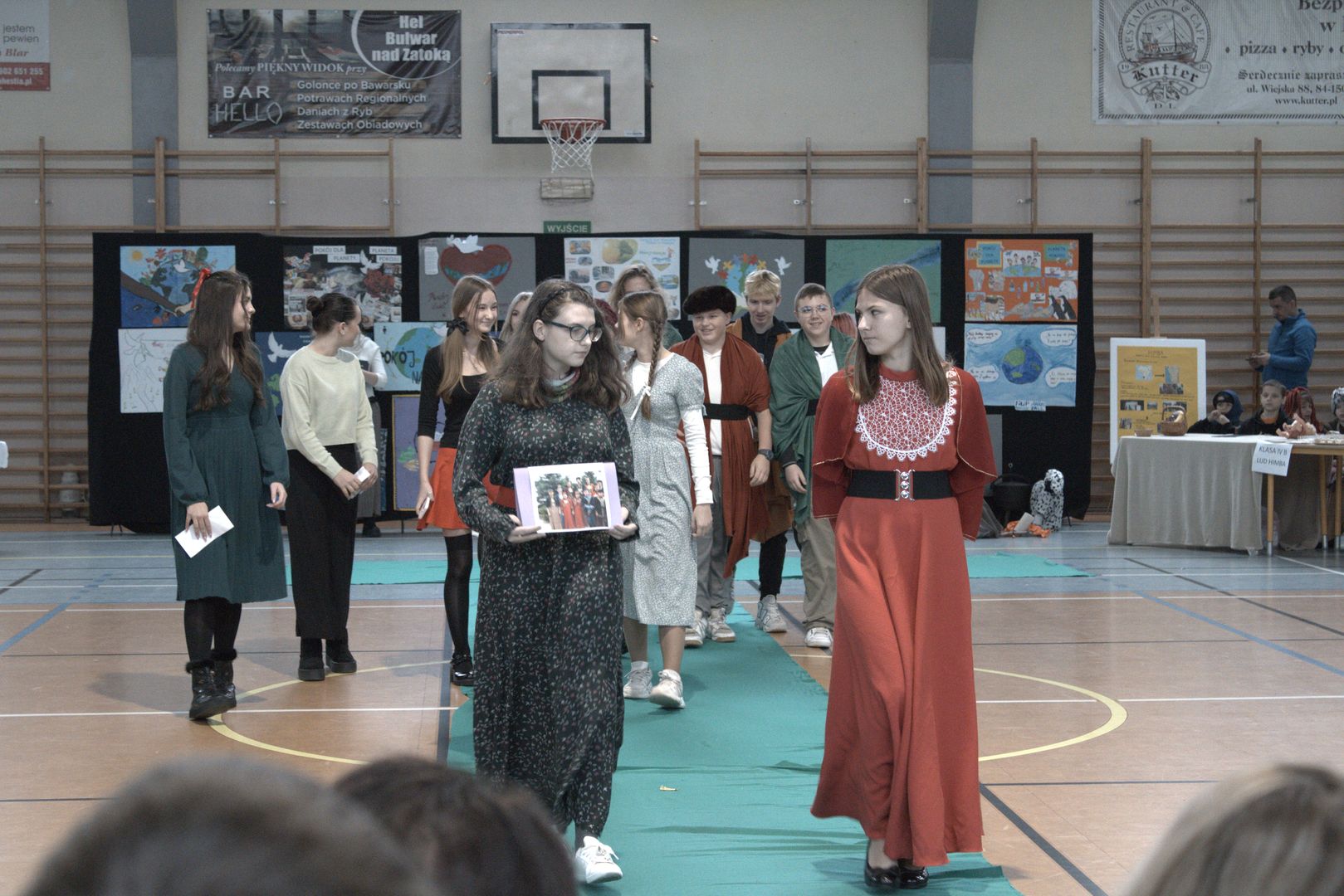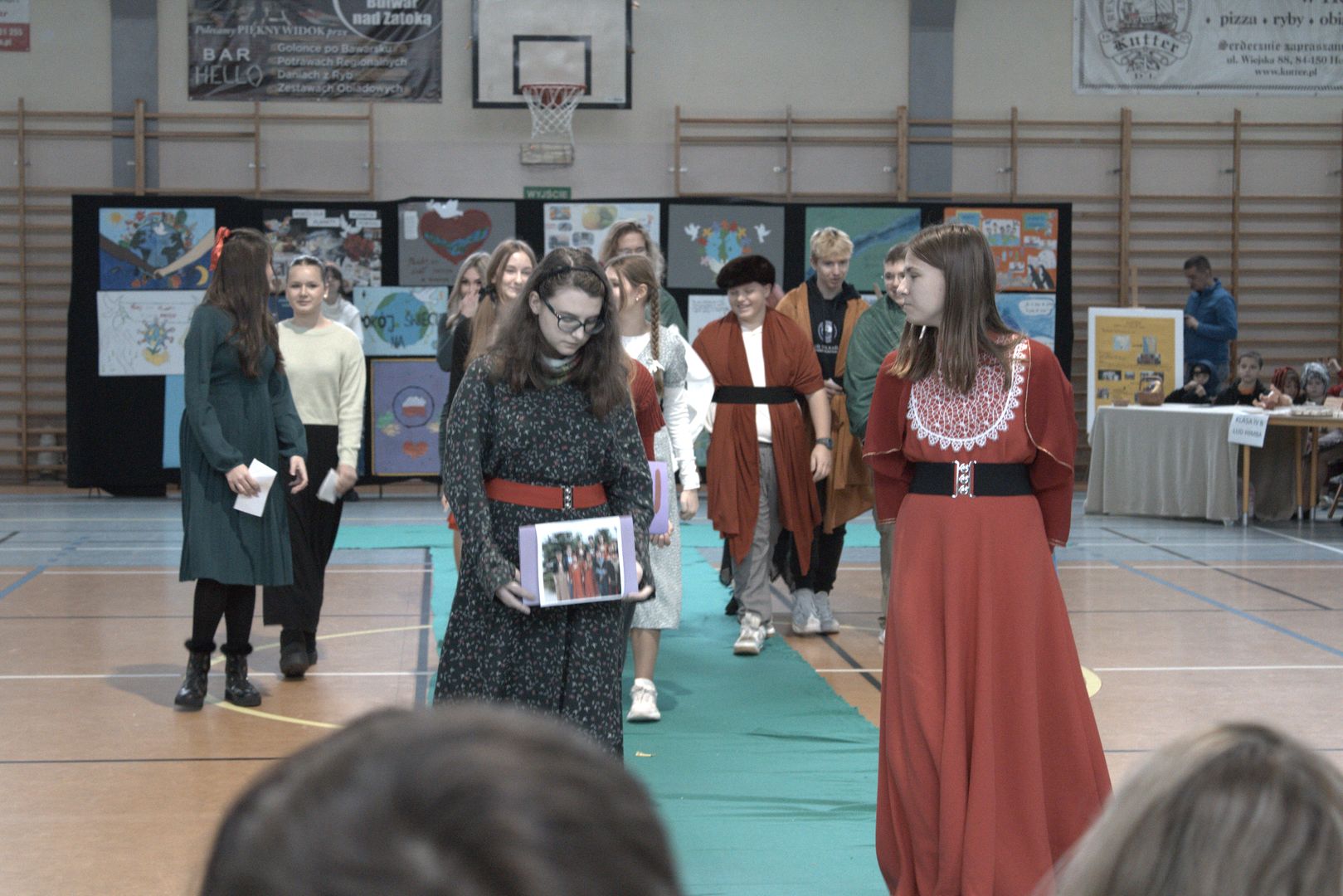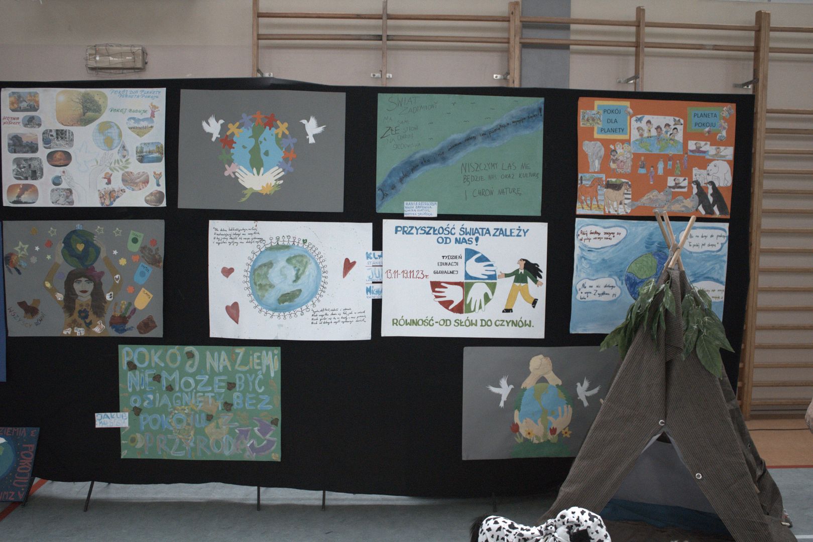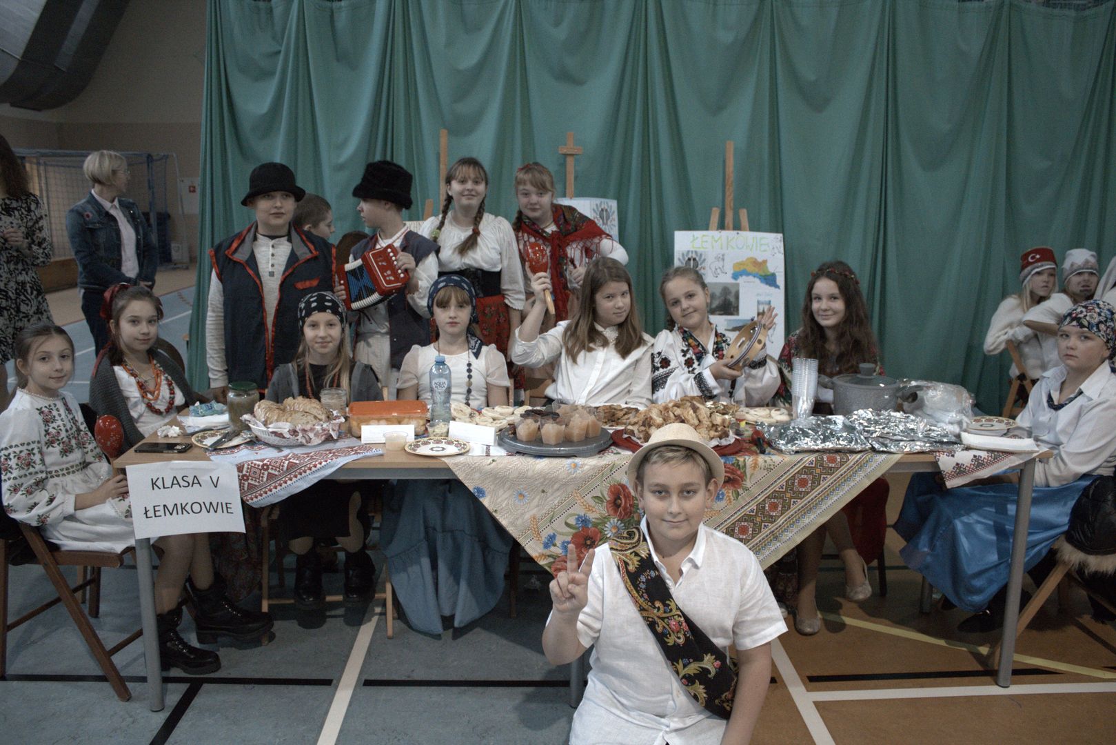 Piątek podyktowany był działaniami związanymi z przybliżaniem obrazu małych nacji, grup etnicznych i kulturowych, tak aby temat pokoju na planecie Ziemi dotyczył wszystkich, także tych, którzy są nam odlegli, czasami wręcz egzotyczni. Klasy losowały grupy a następnie przygotowywały prezentację oraz krótki poczęstunek. I tak klasa 1a w tanecznym pląsie zamieniała się w Ormian, czyli starożytny naród indoeuropejski. Klasa 2a przeniosła nas do Afryki i przedstawiła etniczną grupę Masajów, a 2b wcieliła się w prastary naród znad Zatoki Biskajskiej - Basków. Trzecioklasiści wylosowali Saamów, zwanych Lapończykami, związanych z rejonem północnym, a klasy czwarte pochyliły się nad ludem Himba i Kurdami. Piątacy zaprezentowali kulturę Łemków, a klasa szósta Tatarów. Siódmoklasiści otworzyli się na kulturę żydowską, a klasa ósma zawirowała w rytm muzyki ludów Sinti. Najstarsi reprezentanci szkoły, uczniowie HEL-LO przybliżyli kulturę najmniejszej grupy kulturowo- religijnej w naszym kraju- Karaimów. Pokaz uzupełniały muzyka i charakterystyczne przysmaki danej nacji.