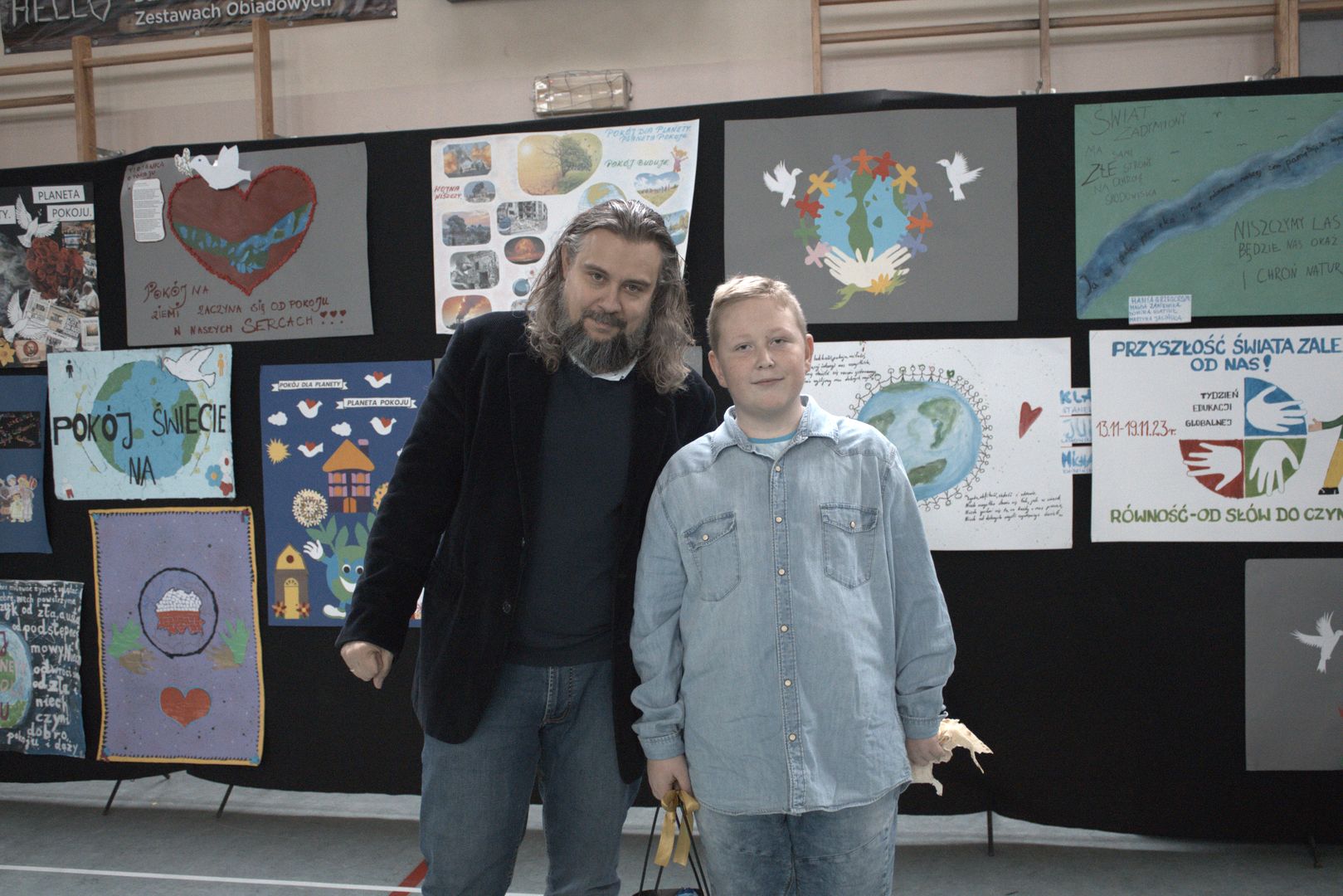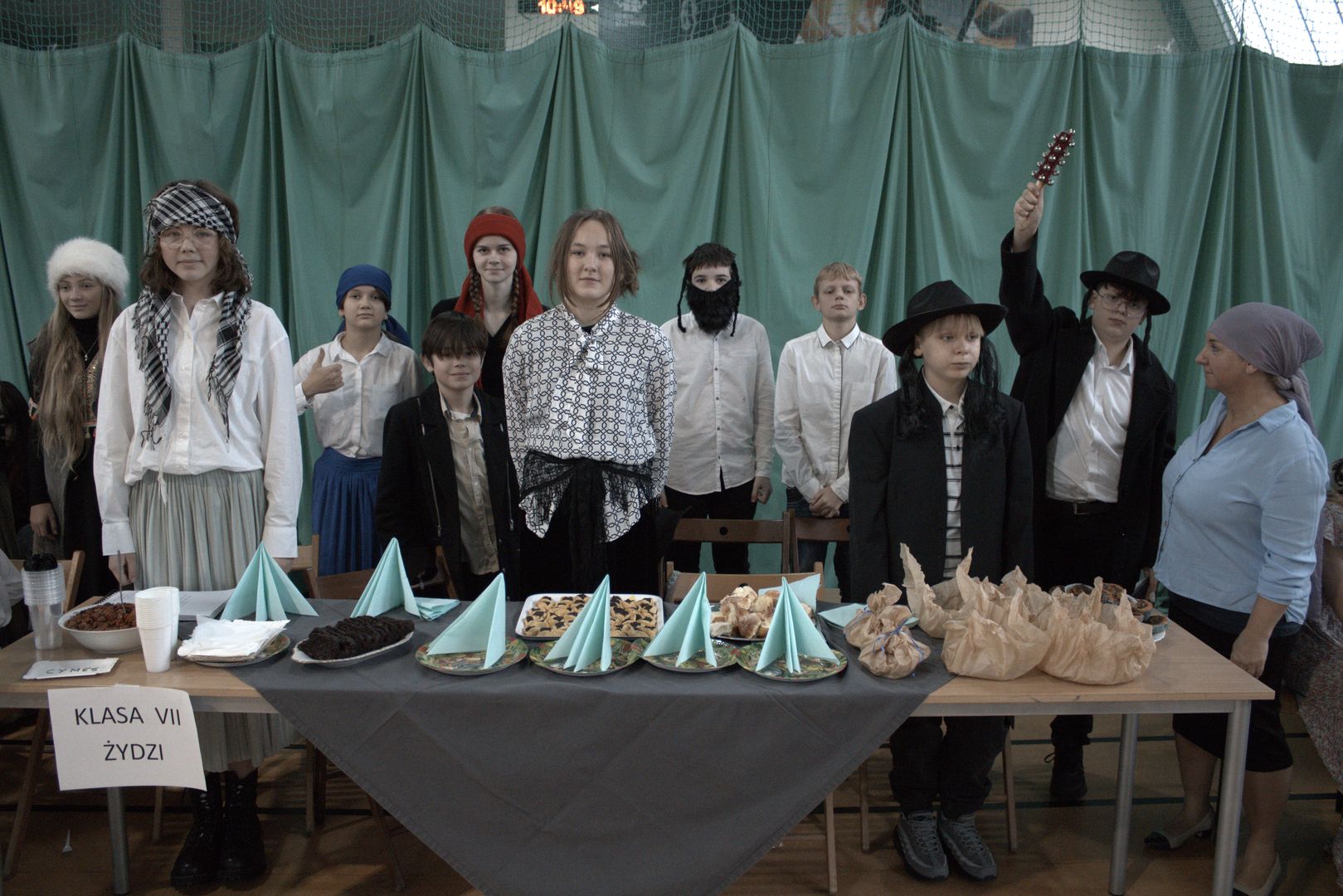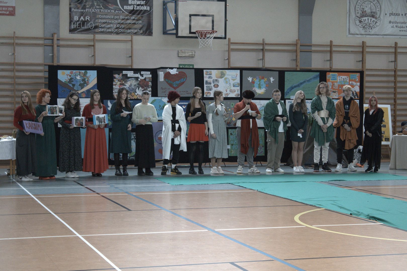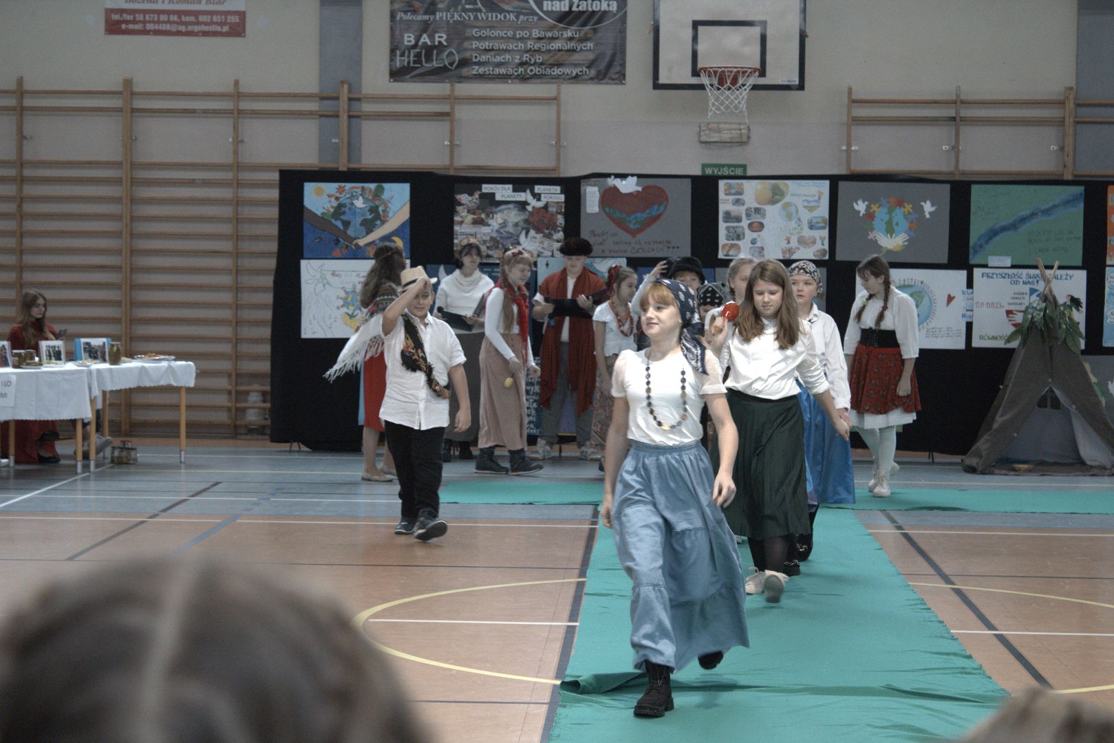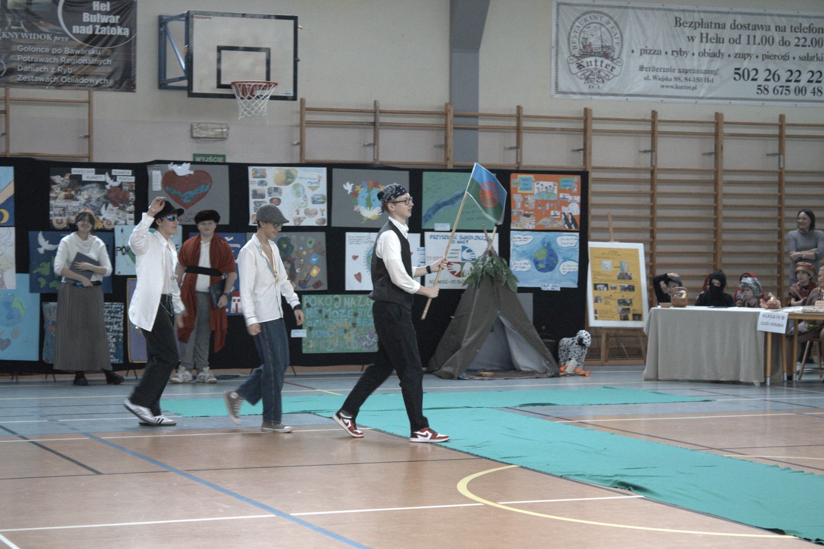 Piątek podyktowany był działaniami związanymi z przybliżaniem obrazu małych nacji, grup etnicznych i kulturowych, tak aby temat pokoju na planecie Ziemi dotyczył wszystkich, także tych, którzy są nam odlegli, czasami wręcz egzotyczni. Klasy losowały grupy a następnie przygotowywały prezentację oraz krótki poczęstunek. I tak klasa 1a w tanecznym pląsie zamieniała się w Ormian, czyli starożytny naród indoeuropejski. Klasa 2a przeniosła nas do Afryki i przedstawiła etniczną grupę Masajów, a 2b wcieliła się w prastary naród znad Zatoki Biskajskiej - Basków. Trzecioklasiści wylosowali Saamów, zwanych Lapończykami, związanych z rejonem północnym, a klasy czwarte pochyliły się nad ludem Himba i Kurdami. Piątacy zaprezentowali kulturę Łemków, a klasa szósta Tatarów. Siódmoklasiści otworzyli się na kulturę żydowską, a klasa ósma zawirowała w rytm muzyki ludów Sinti. Najstarsi reprezentanci szkoły, uczniowie HEL-LO przybliżyli kulturę najmniejszej grupy kulturowo- religijnej w naszym kraju- Karaimów. Pokaz uzupełniały muzyka i charakterystyczne przysmaki danej nacji.