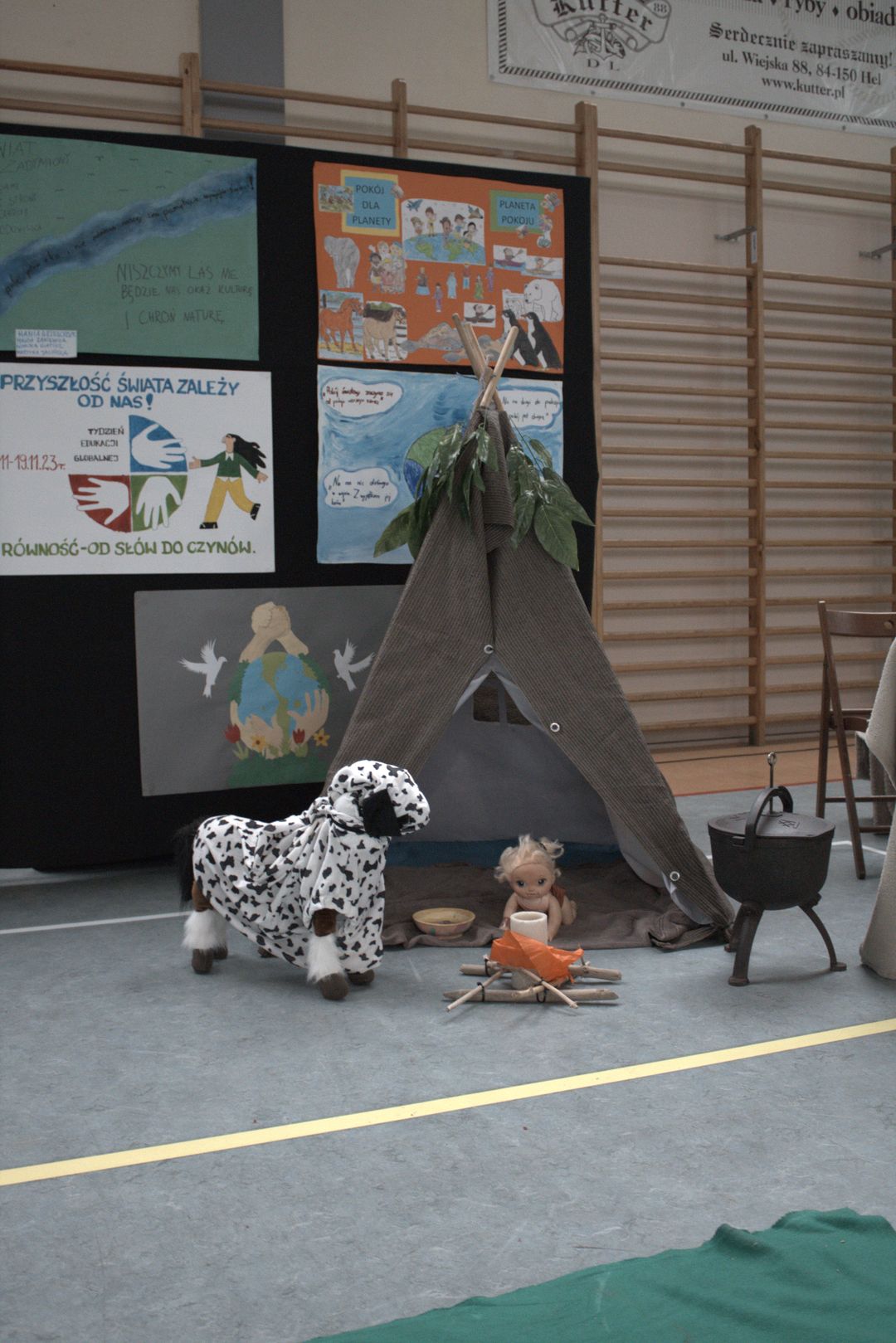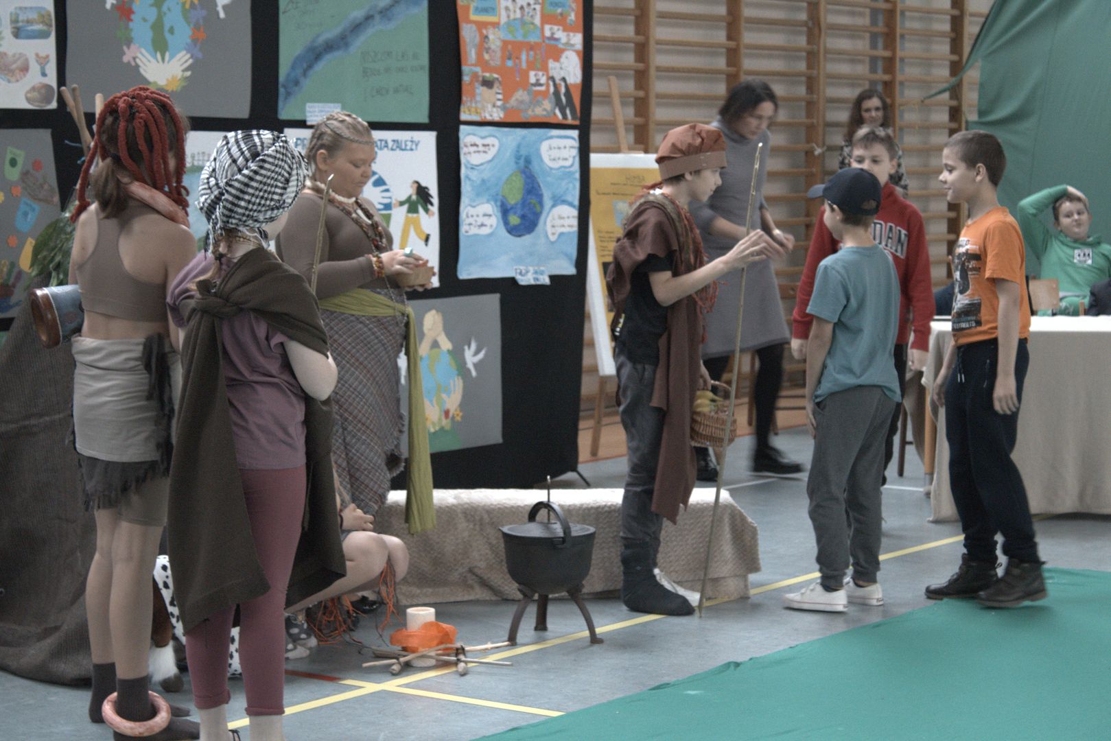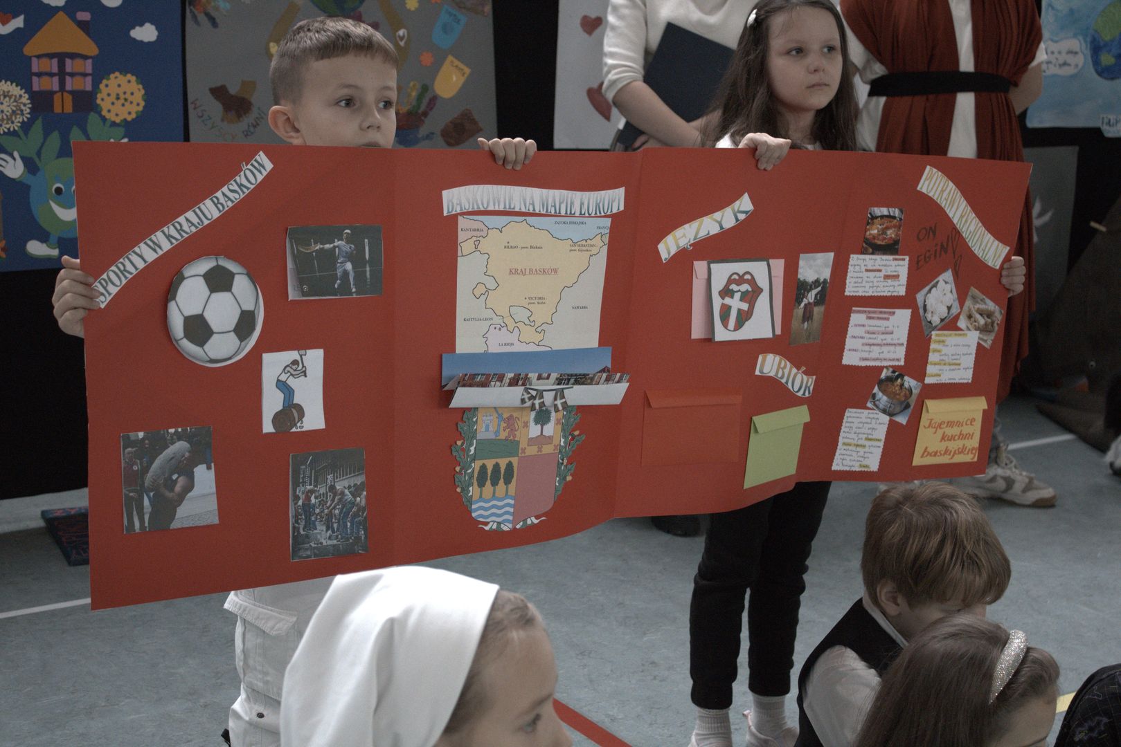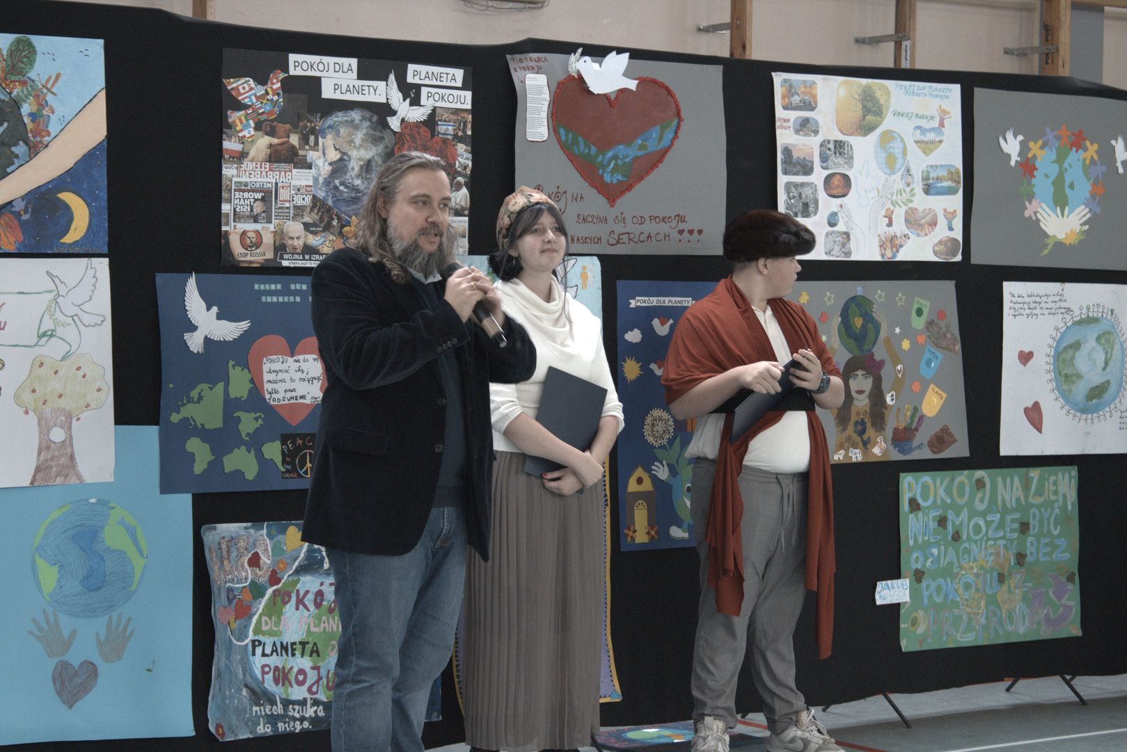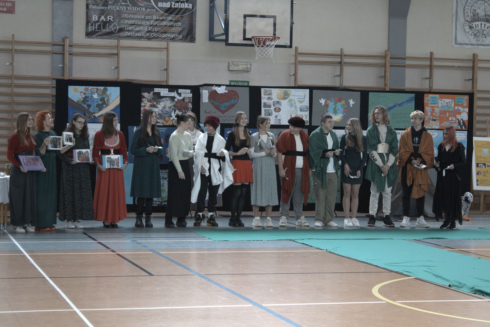 Piątek podyktowany był działaniami związanymi z przybliżaniem obrazu małych nacji, grup etnicznych i kulturowych, tak aby temat pokoju na planecie Ziemi dotyczył wszystkich, także tych, którzy są nam odlegli, czasami wręcz egzotyczni. Klasy losowały grupy a następnie przygotowywały prezentację oraz krótki poczęstunek. I tak klasa 1a w tanecznym pląsie zamieniała się w Ormian, czyli starożytny naród indoeuropejski. Klasa 2a przeniosła nas do Afryki i przedstawiła etniczną grupę Masajów, a 2b wcieliła się w prastary naród znad Zatoki Biskajskiej - Basków. Trzecioklasiści wylosowali Saamów, zwanych Lapończykami, związanych z rejonem północnym, a klasy czwarte pochyliły się nad ludem Himba i Kurdami. Piątacy zaprezentowali kulturę Łemków, a klasa szósta Tatarów. Siódmoklasiści otworzyli się na kulturę żydowską, a klasa ósma zawirowała w rytm muzyki ludów Sinti. Najstarsi reprezentanci szkoły, uczniowie HEL-LO przybliżyli kulturę najmniejszej grupy kulturowo- religijnej w naszym kraju- Karaimów. Pokaz uzupełniały muzyka i charakterystyczne przysmaki danej nacji.