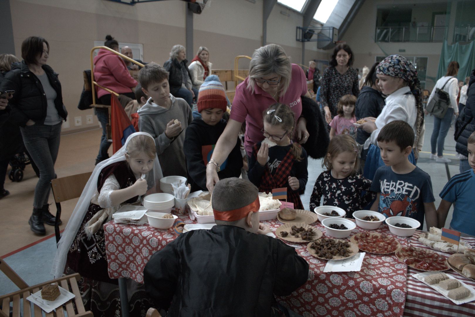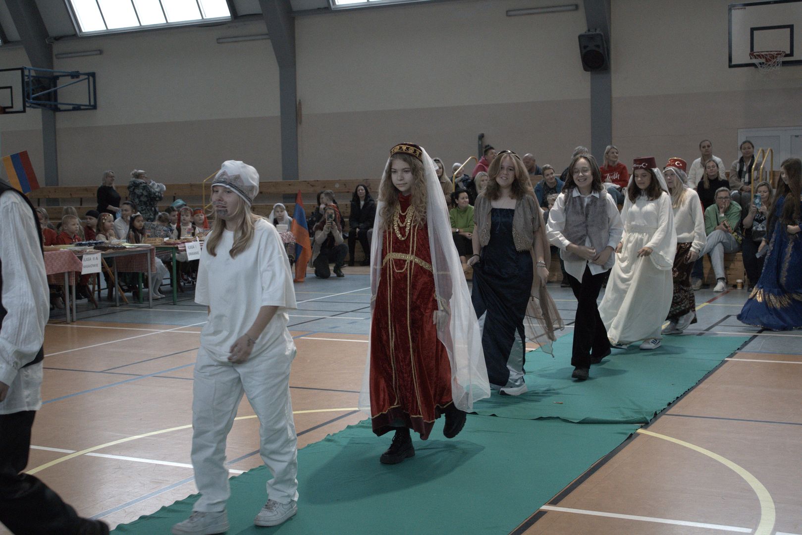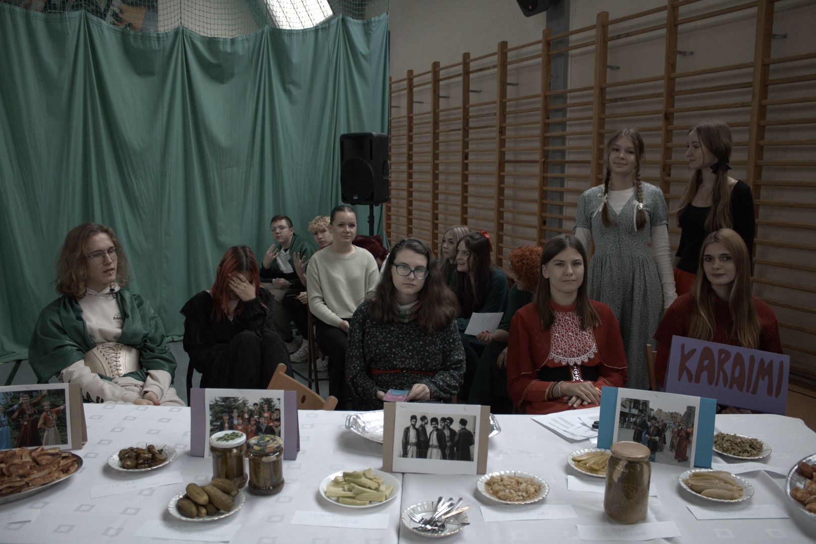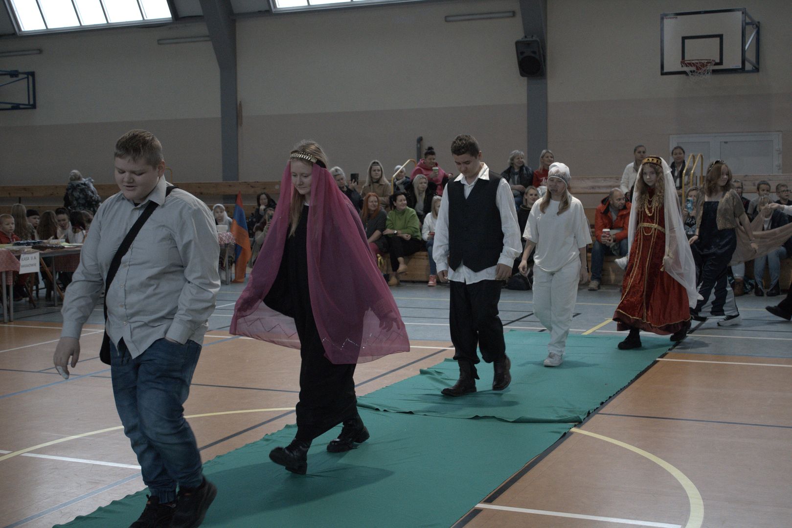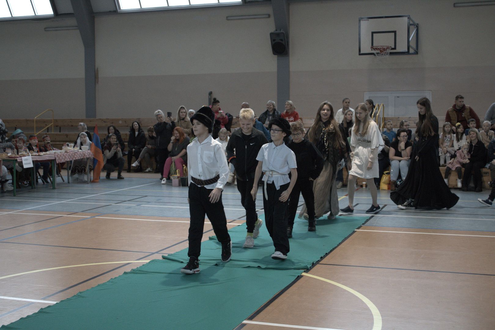 Piątek podyktowany był działaniami związanymi z przybliżaniem obrazu małych nacji, grup etnicznych i kulturowych, tak aby temat pokoju na planecie Ziemi dotyczył wszystkich, także tych, którzy są nam odlegli, czasami wręcz egzotyczni. Klasy losowały grupy a następnie przygotowywały prezentację oraz krótki poczęstunek. I tak klasa 1a w tanecznym pląsie zamieniała się w Ormian, czyli starożytny naród indoeuropejski. Klasa 2a przeniosła nas do Afryki i przedstawiła etniczną grupę Masajów, a 2b wcieliła się w prastary naród znad Zatoki Biskajskiej - Basków. Trzecioklasiści wylosowali Saamów, zwanych Lapończykami, związanych z rejonem północnym, a klasy czwarte pochyliły się nad ludem Himba i Kurdami. Piątacy zaprezentowali kulturę Łemków, a klasa szósta Tatarów. Siódmoklasiści otworzyli się na kulturę żydowską, a klasa ósma zawirowała w rytm muzyki ludów Sinti. Najstarsi reprezentanci szkoły, uczniowie HEL-LO przybliżyli kulturę najmniejszej grupy kulturowo- religijnej w naszym kraju- Karaimów. Pokaz uzupełniały muzyka i charakterystyczne przysmaki danej nacji.