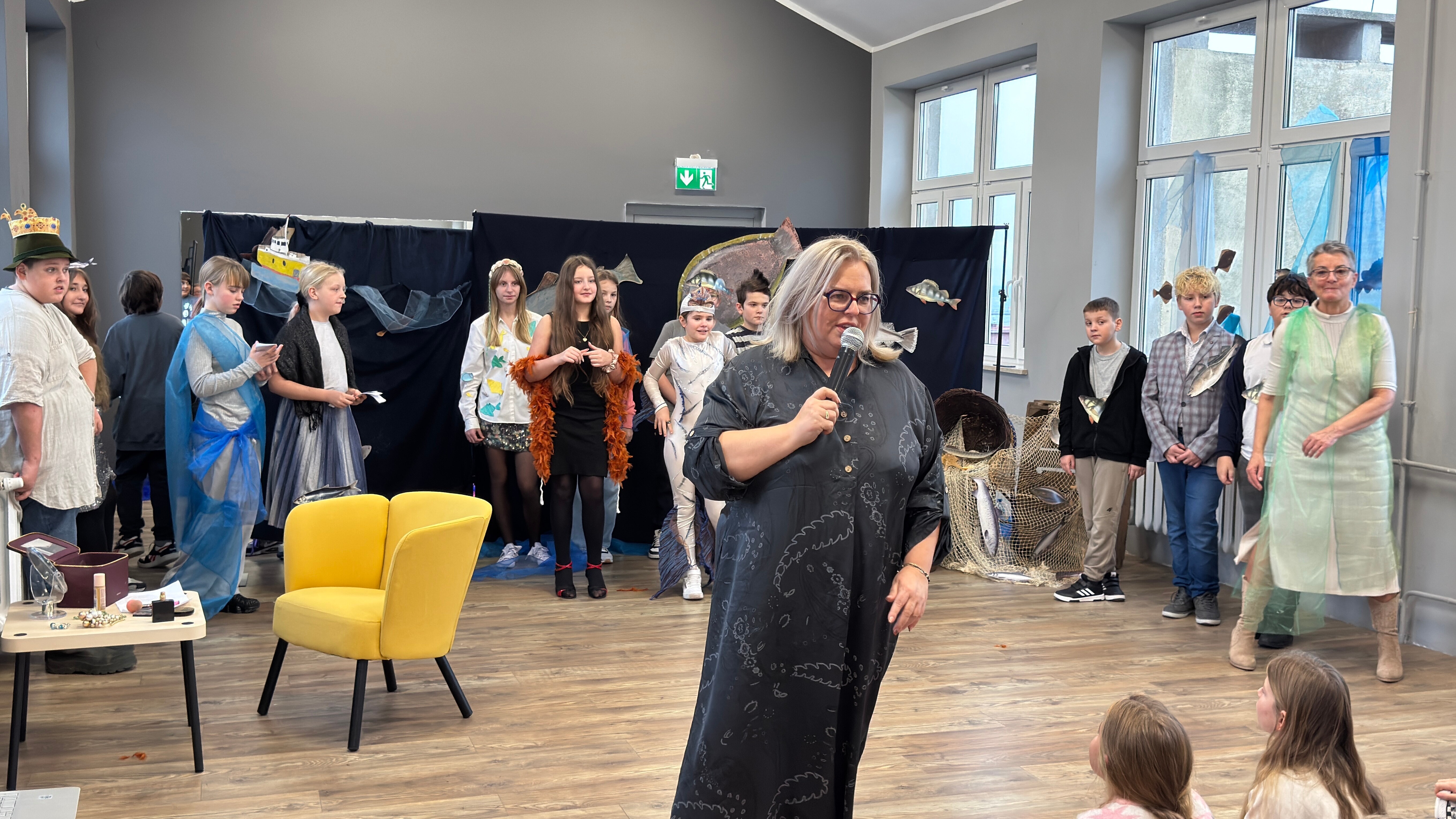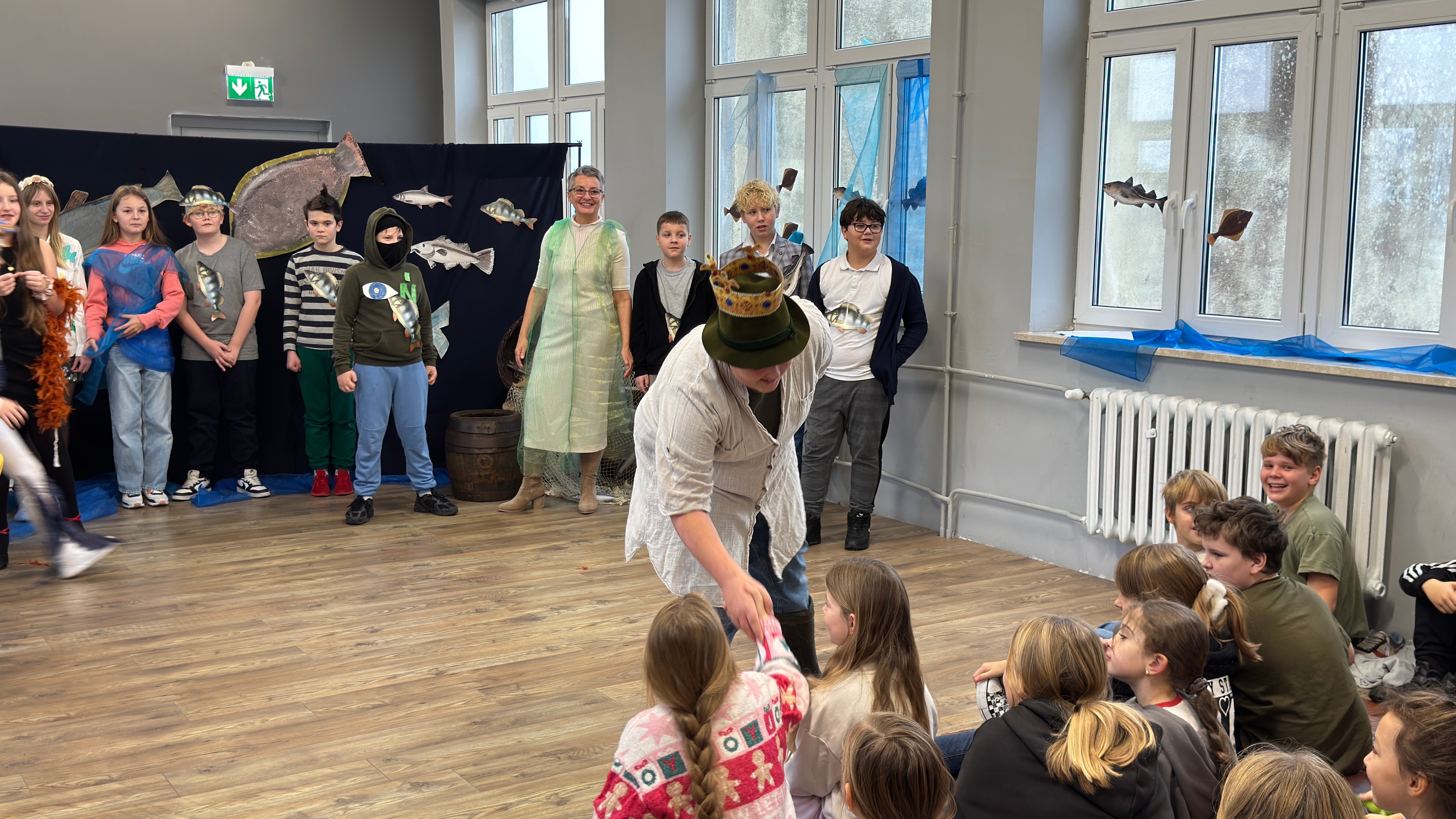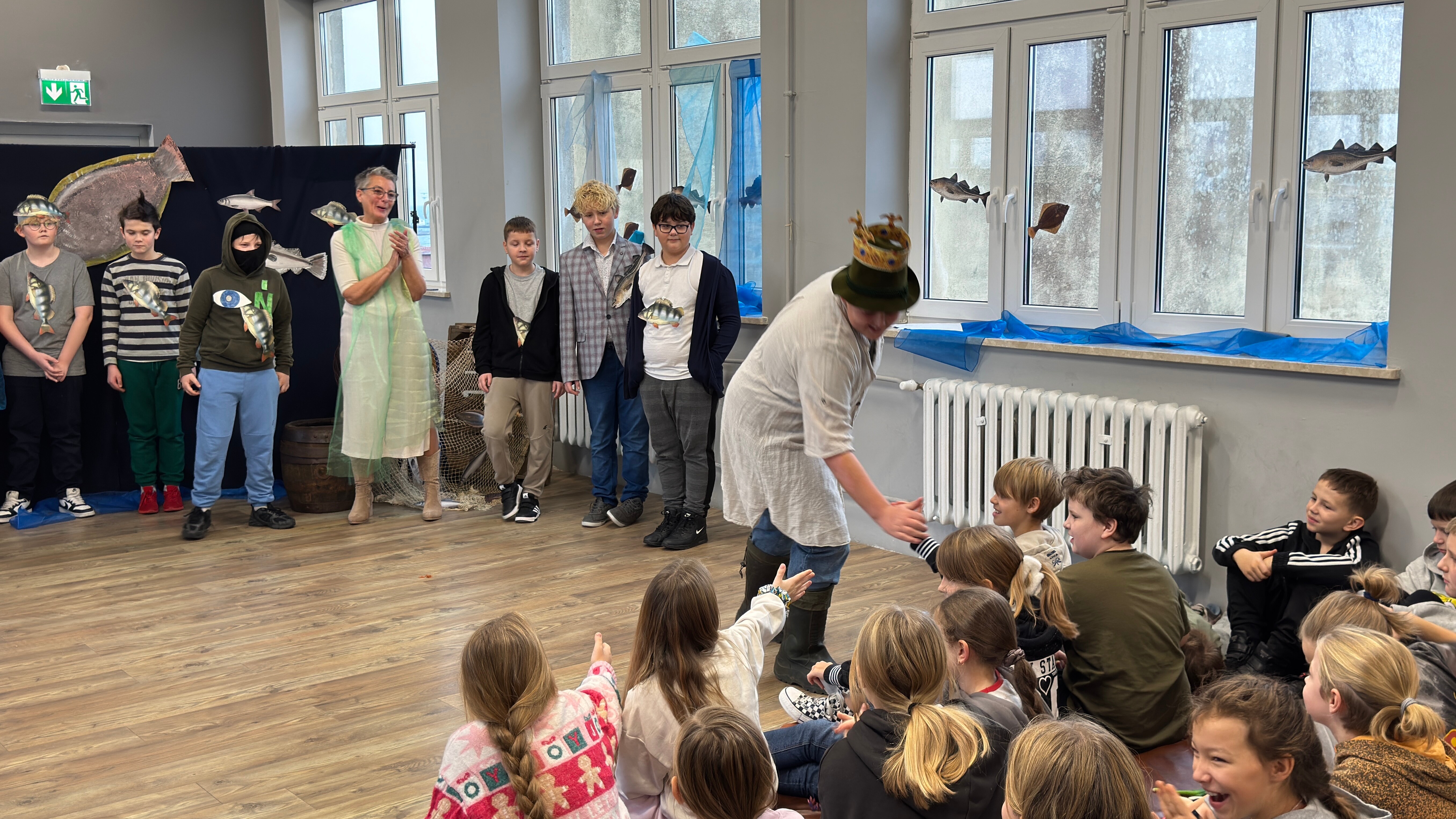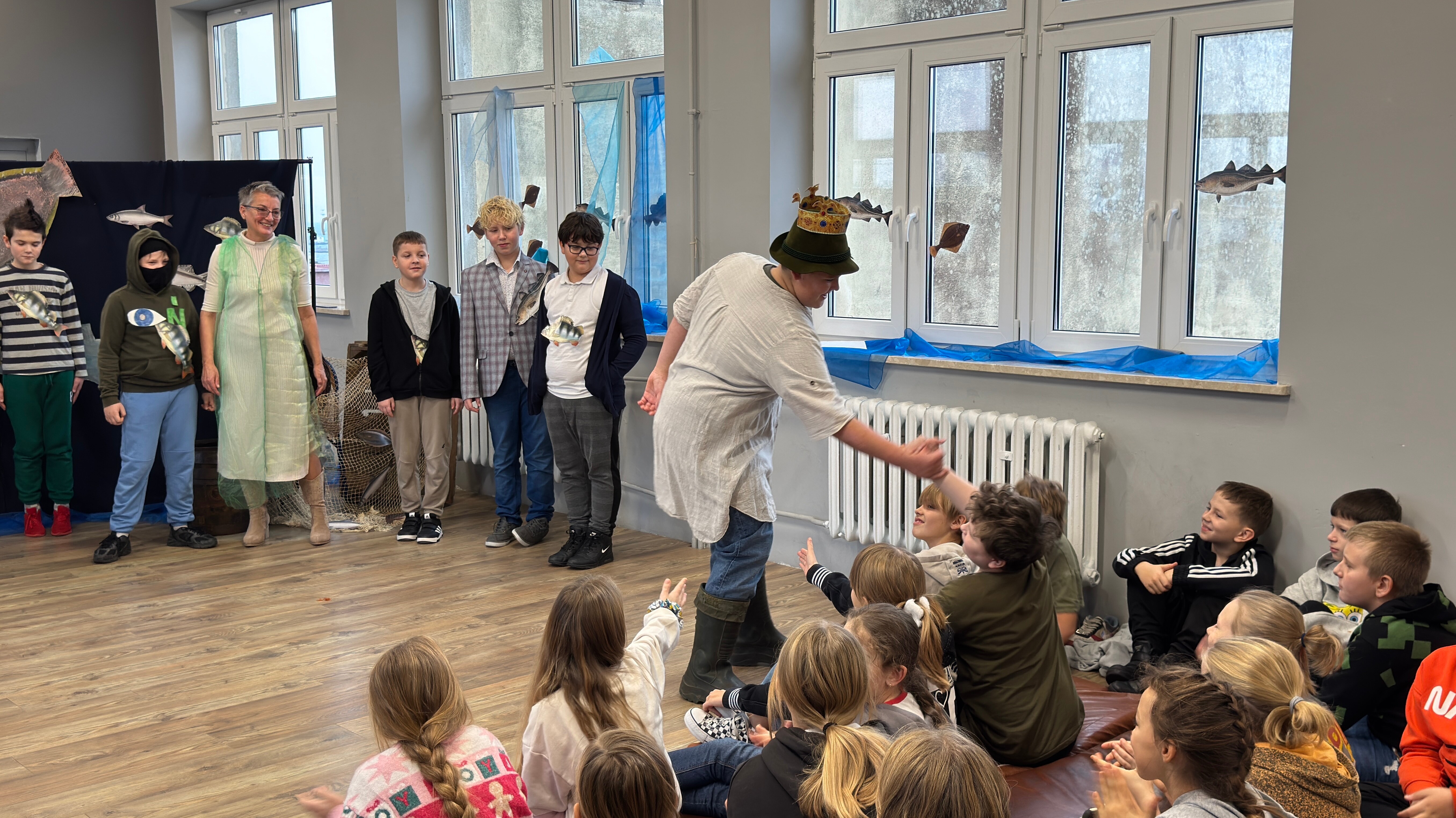 Klasa 5SP, organizator listopadowej edycji Kaszubskiego Czwartku zaprosiła koleżanki i kolegów z najmłodszych oddziałów na mini przedstawienie wyjaśniające, dlaczego to właśnie śledź króluje niepodzielnie wśród bałtyckich ryb.