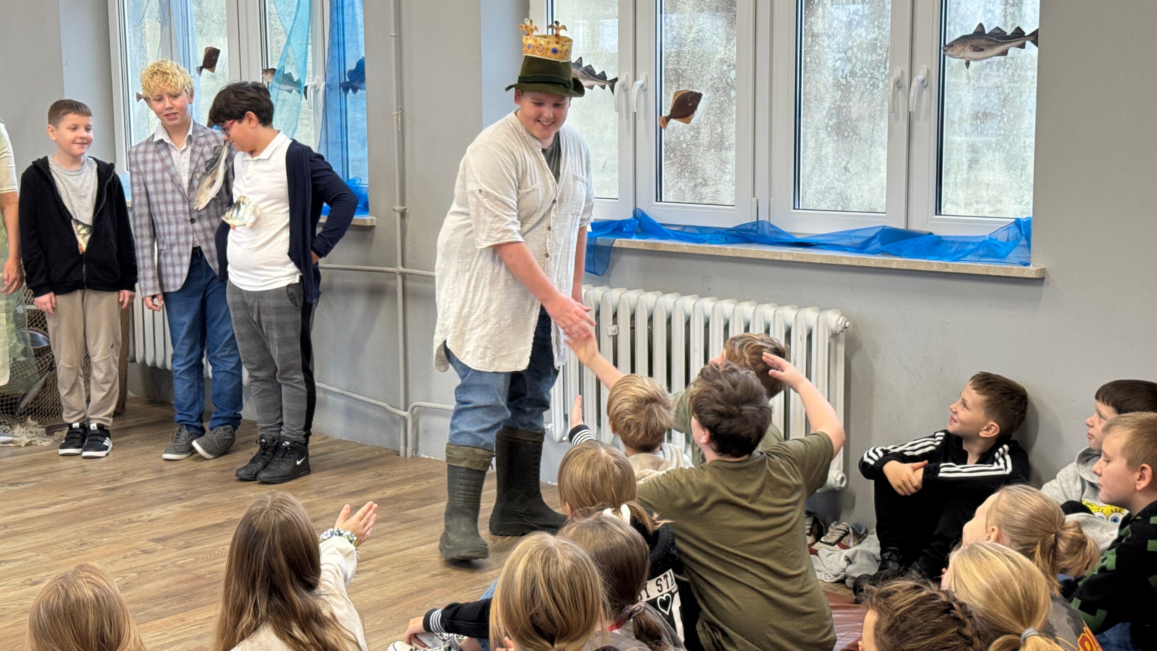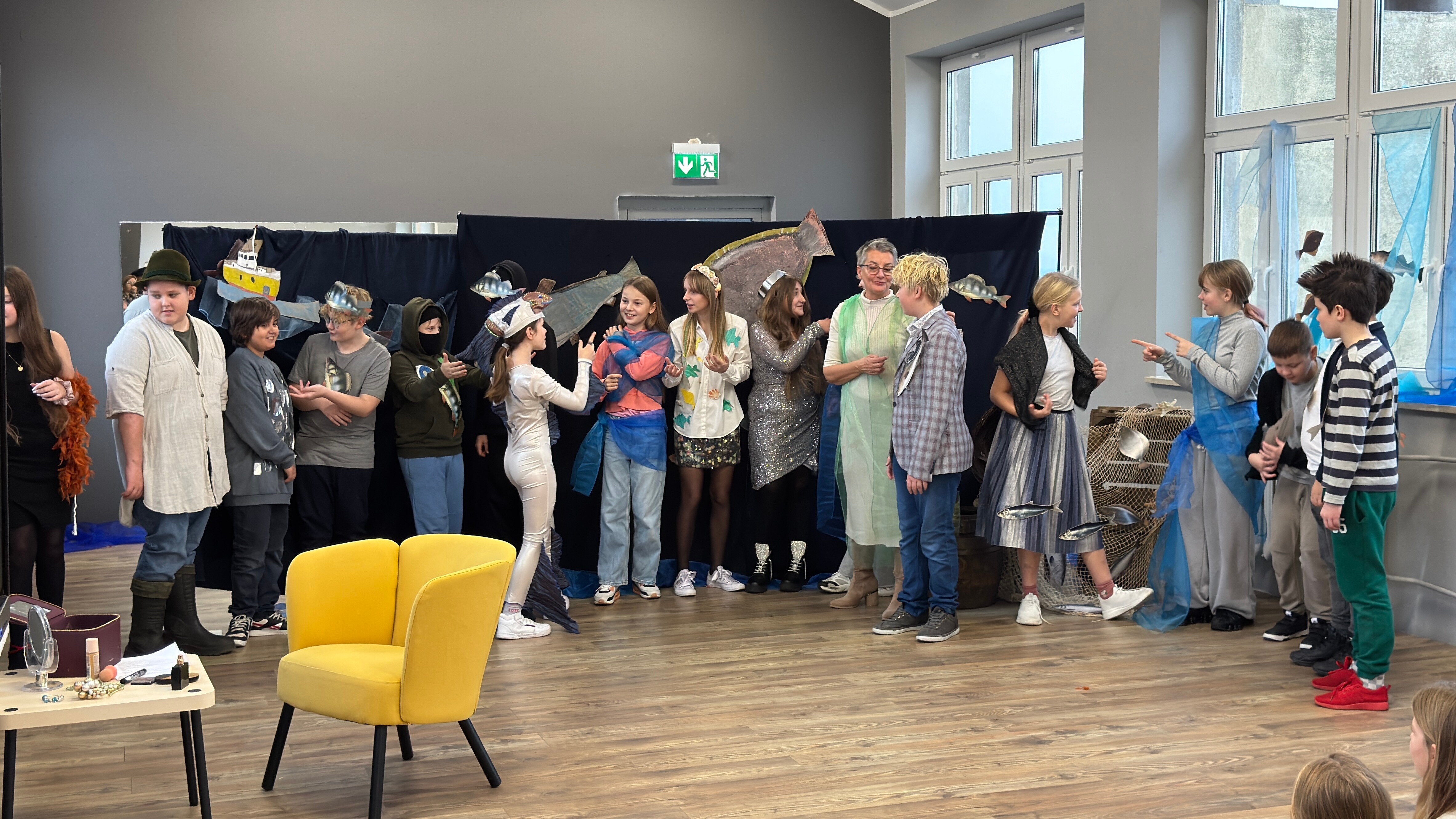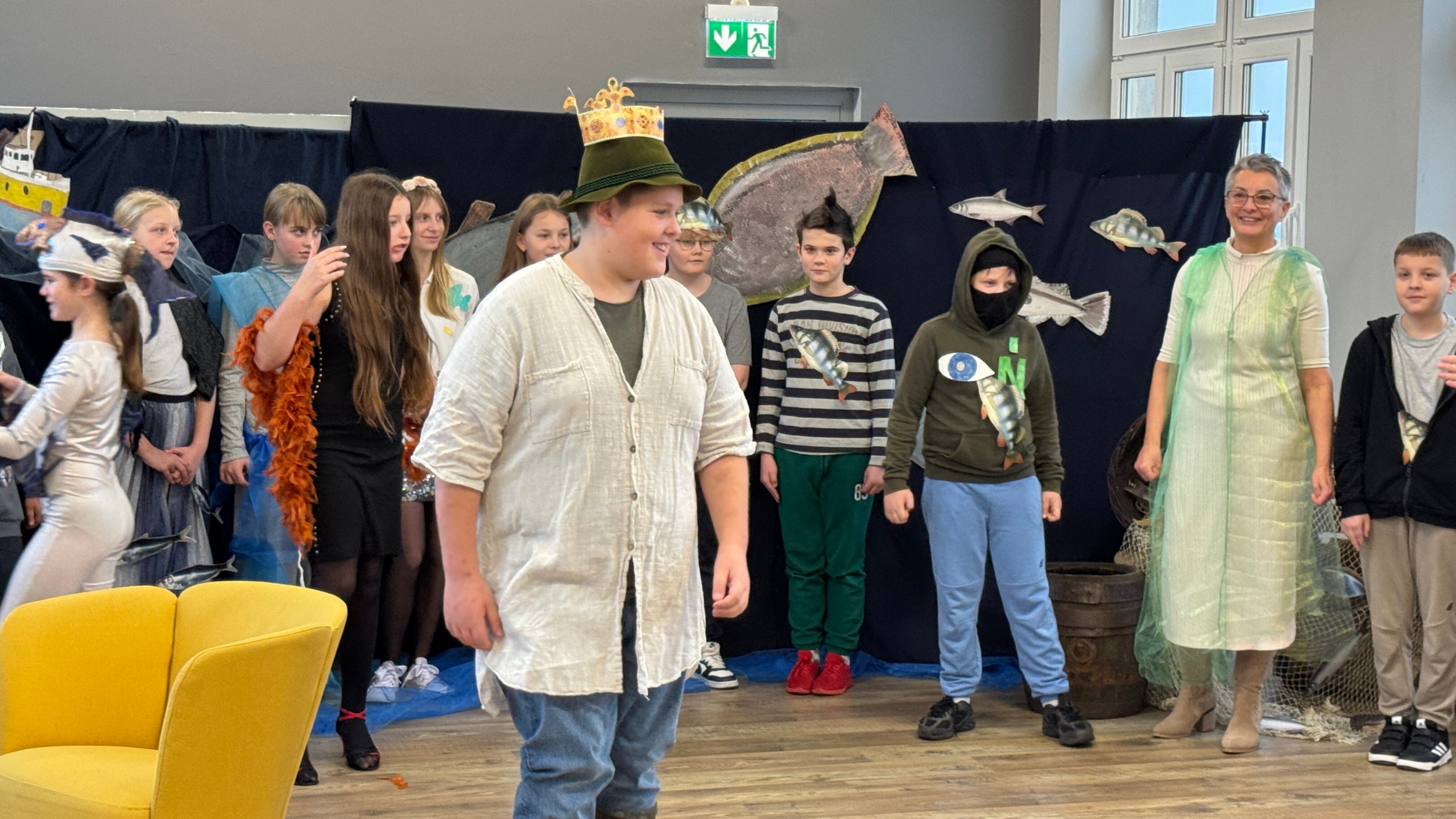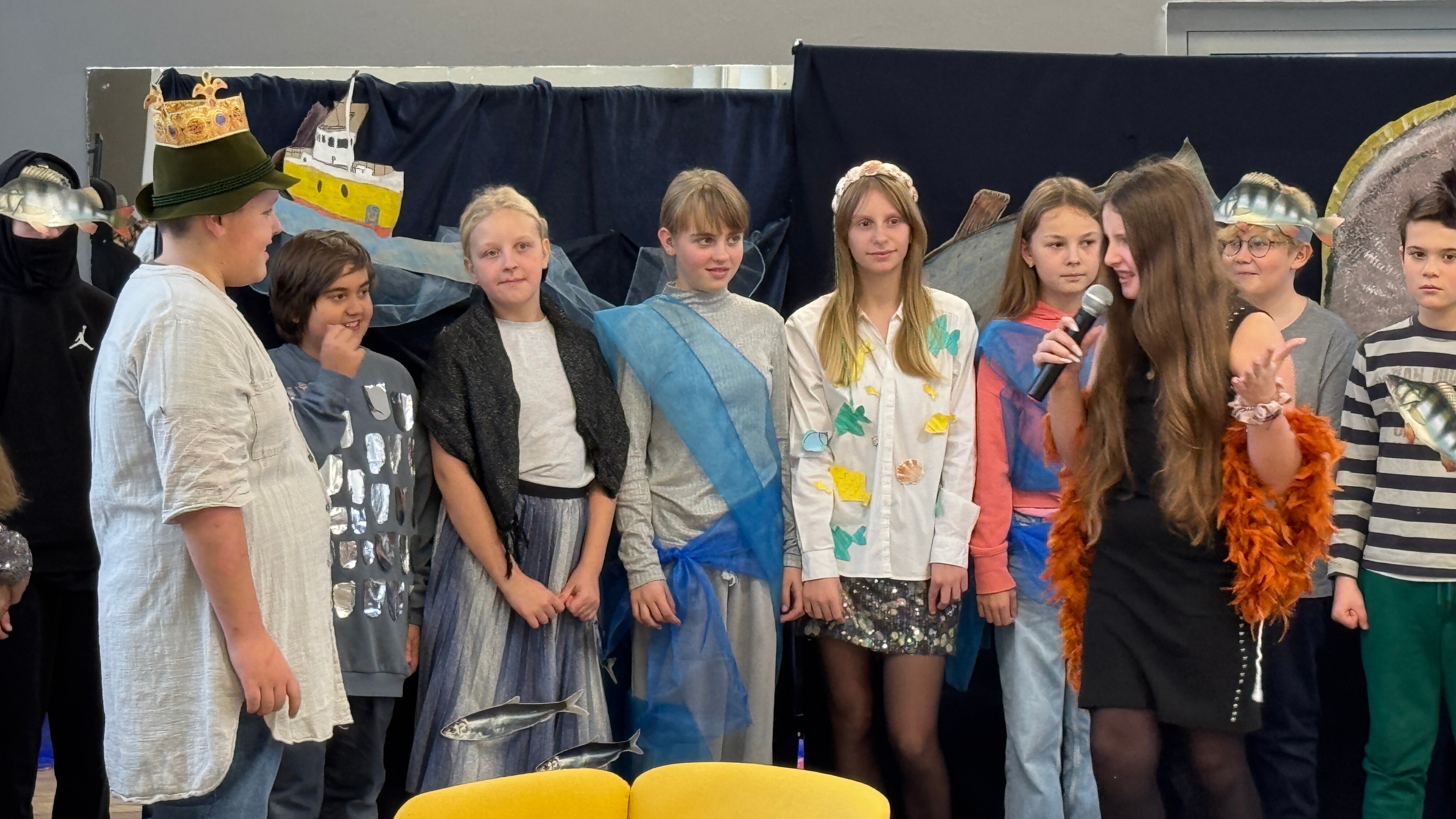 Klasa 5SP, organizator listopadowej edycji Kaszubskiego Czwartku zaprosiła koleżanki i kolegów z najmłodszych oddziałów na mini przedstawienie wyjaśniające, dlaczego to właśnie śledź króluje niepodzielnie wśród bałtyckich ryb.