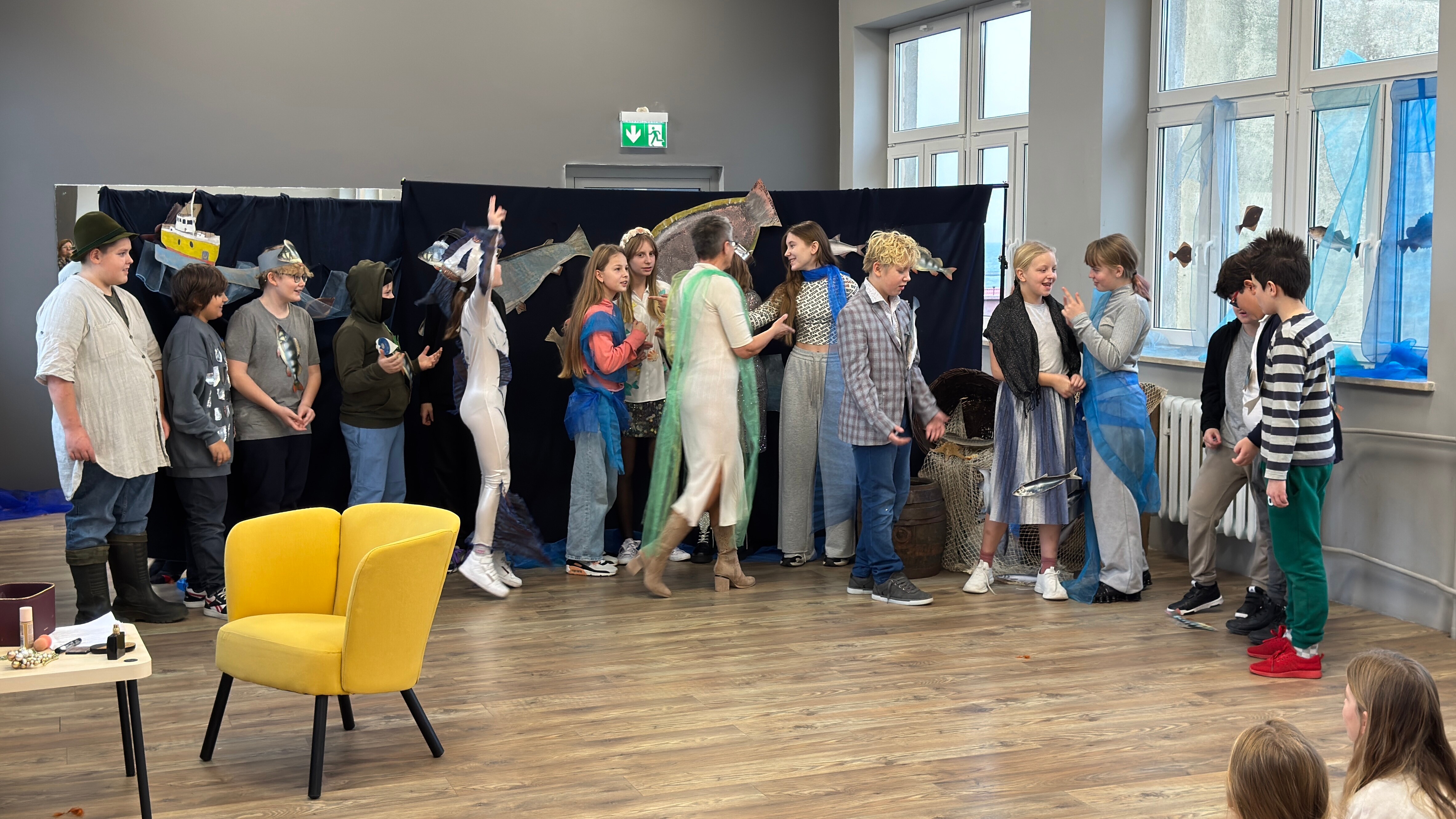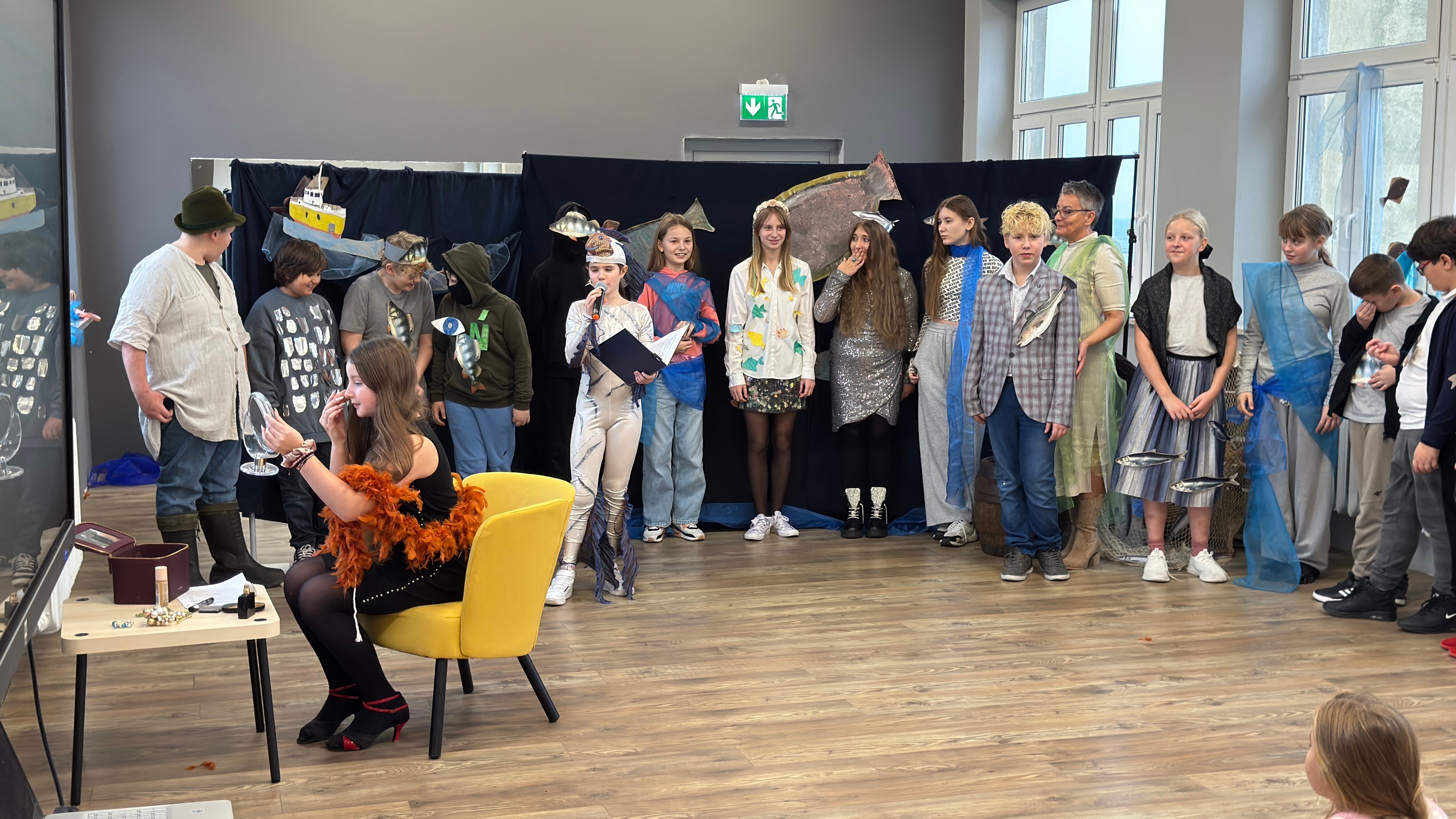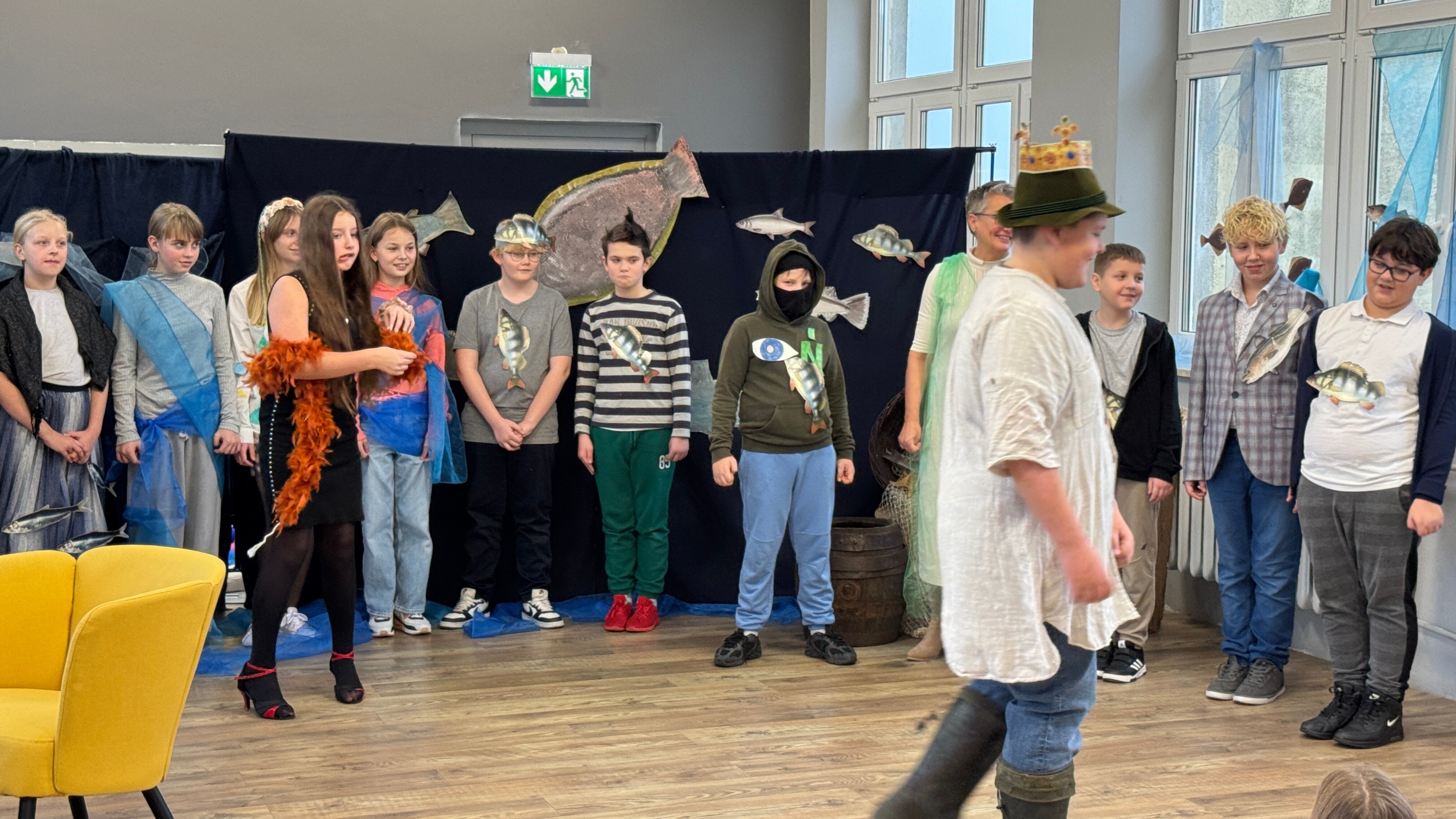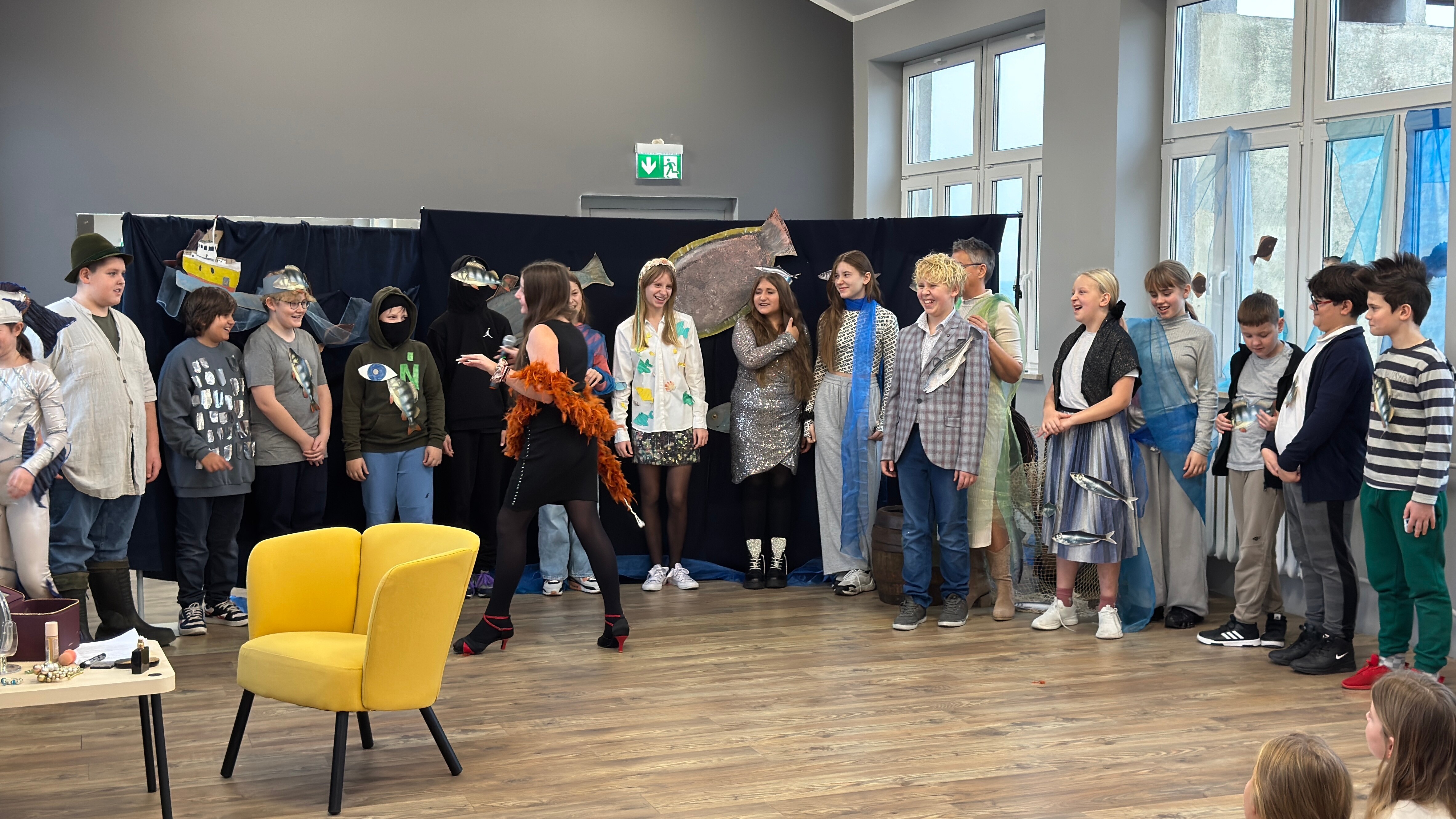 Klasa 5SP, organizator listopadowej edycji Kaszubskiego Czwartku zaprosiła koleżanki i kolegów z najmłodszych oddziałów na mini przedstawienie wyjaśniające, dlaczego to właśnie śledź króluje niepodzielnie wśród bałtyckich ryb.
