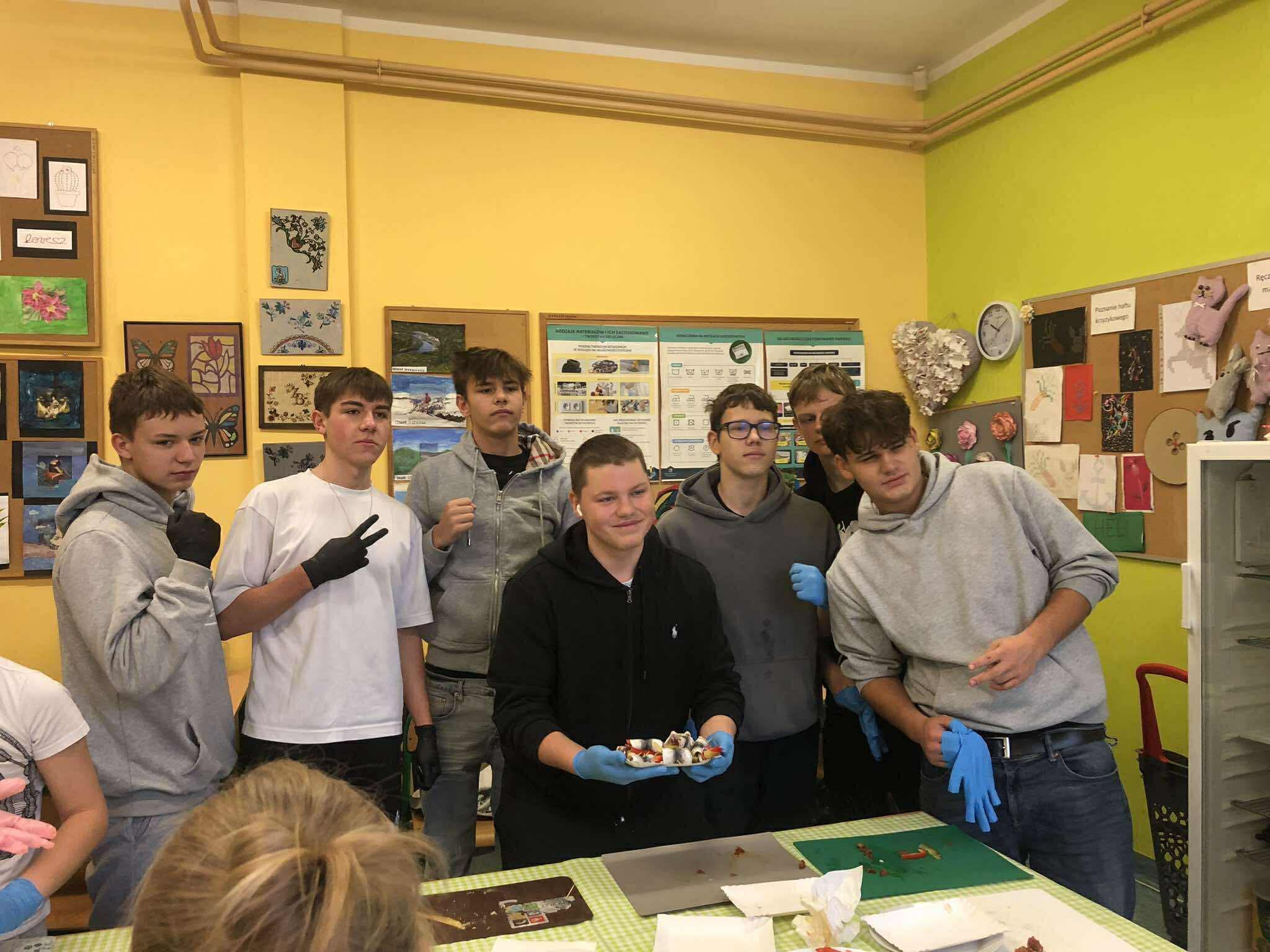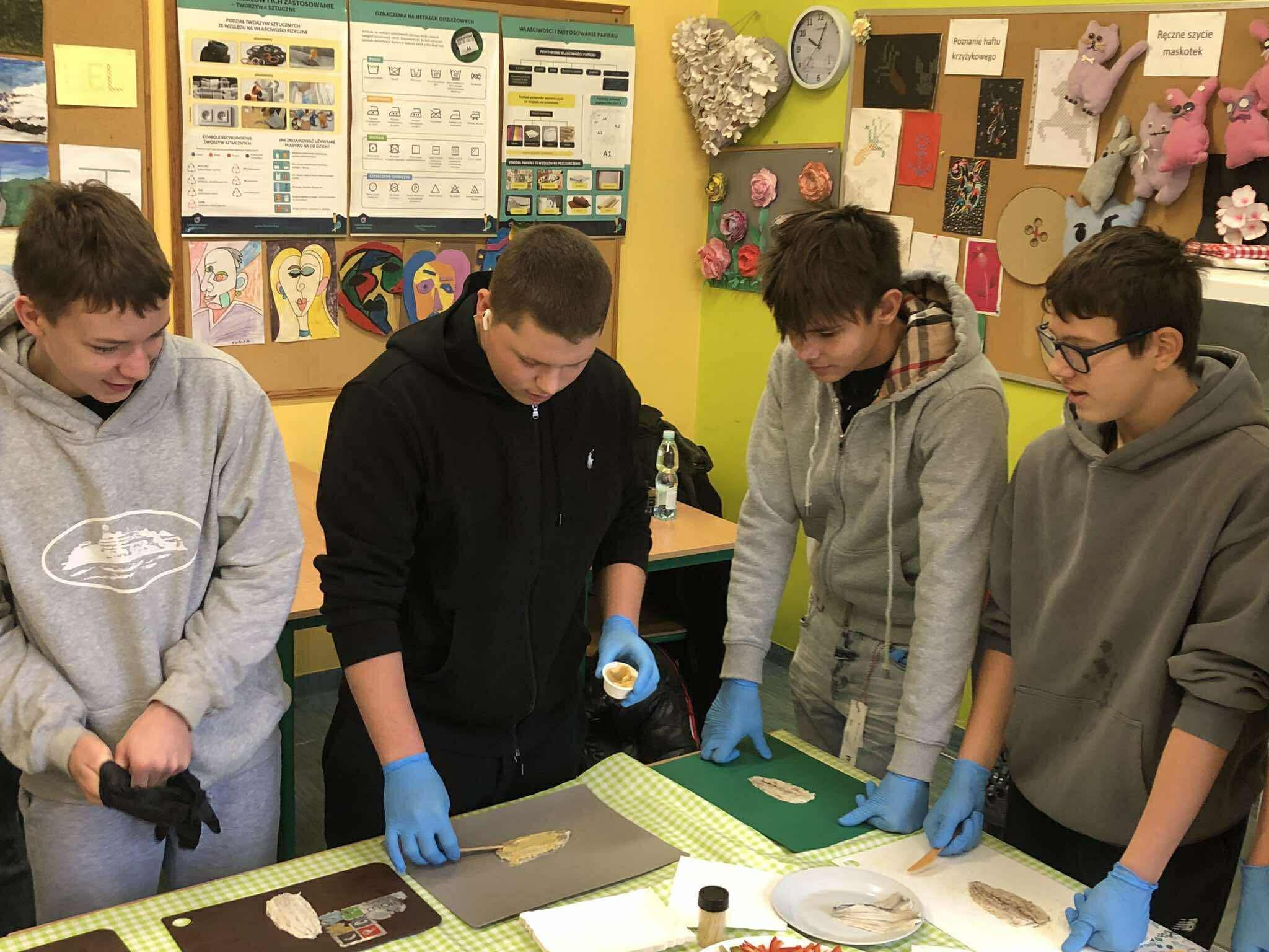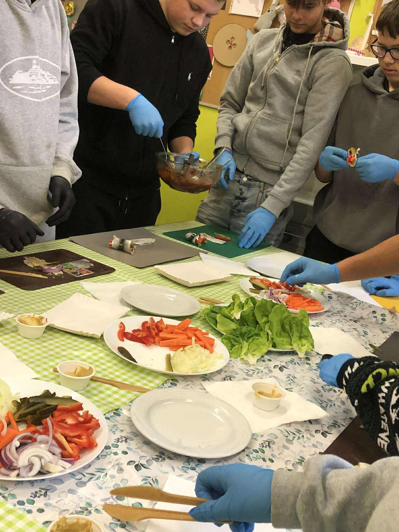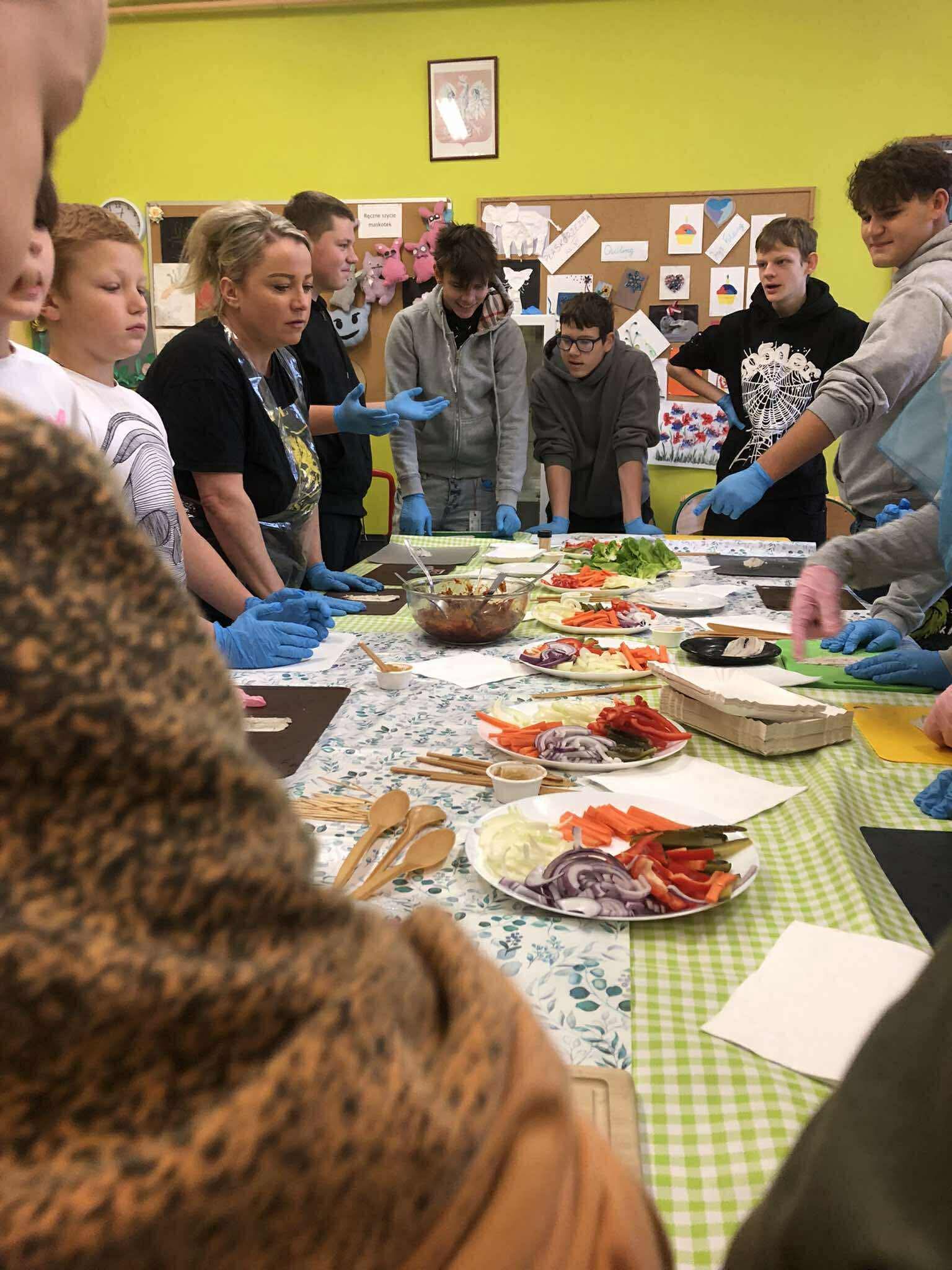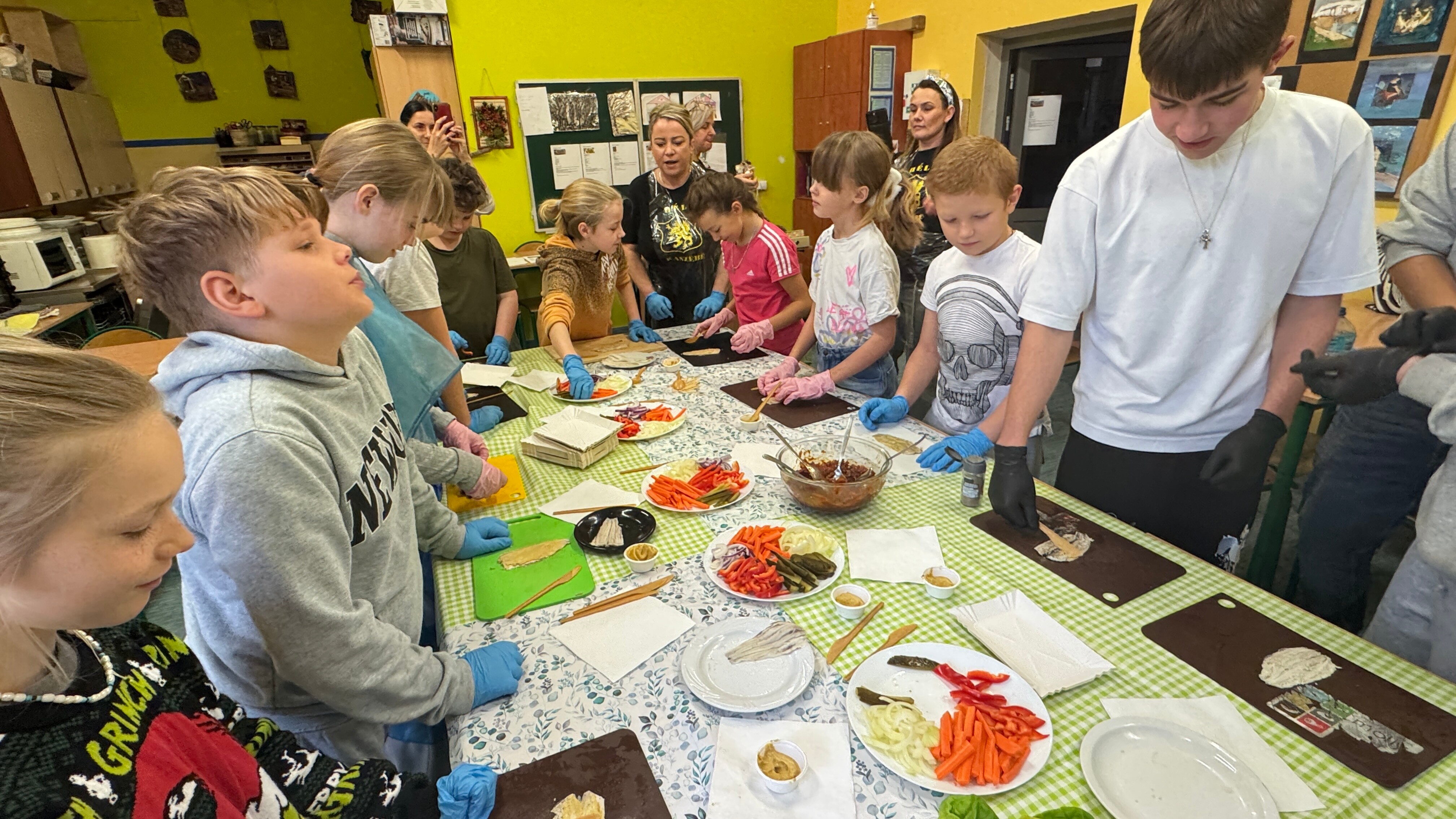 Dla 25 chętnych Uczniów Rodzice klasy 5SP przygotowali zajęcia skręcania rolmopsów. Lokalne zasoby śledzia to rzeczywiste królestwo smaków: po kaszubsku z cebulą w pomidorach, wytrawne z marchewką i ogórkiem, pikantne z papryka i musztardą- przepyszne wariacje. Czego uczyliśmy? Rozpoznawania smaków wód, które nas otaczają, świadomego wybierania ryb trafiających na talerz. Cel 14: Chronić oceany, morza i zasoby morskie oraz wykorzystywać je w sposób zrównoważony.