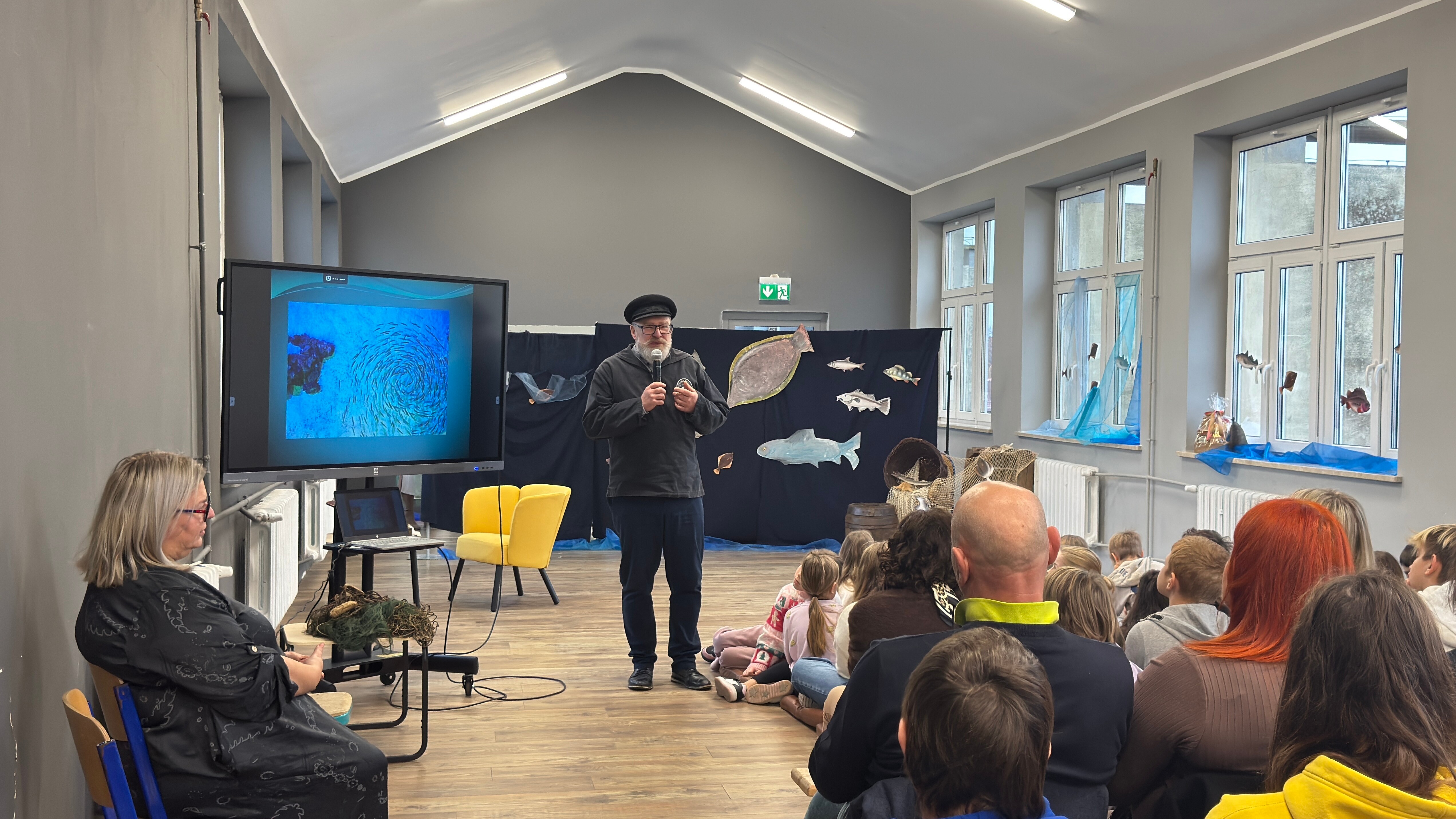 Na specjalne zaproszenie klasy 5SP o dawnym bogactwie śledziowym Helu opowiedział Uczniom klas 4-8 SP i HEL ~LO nasz Gość, kustosz muzealny, Mirosław Kuklik. Usłyszeliśmy wiele ciekawostek a śledź był w nich tematem najpierwszym. Dzieje naszego miasta i rybiego Króla Bałtyku sięgają czasów iście mitologicznych, niemniej jednak to zawsze Człowiek mądrze rozporządzał zasobami. Oby, nam, współczesnym, wystarczyło wiedzy i wyobraźni, wówczas Śledź królować będzie w Bałtyku już zawsze. Legendę o tym panowaniu mogliśmy zobaczyć w wykonaniu Uczniów klasy 5SP. Zadziorna flądra walczyła o laur pierwszeństwa, ale pokonał ją właśnie śledź.