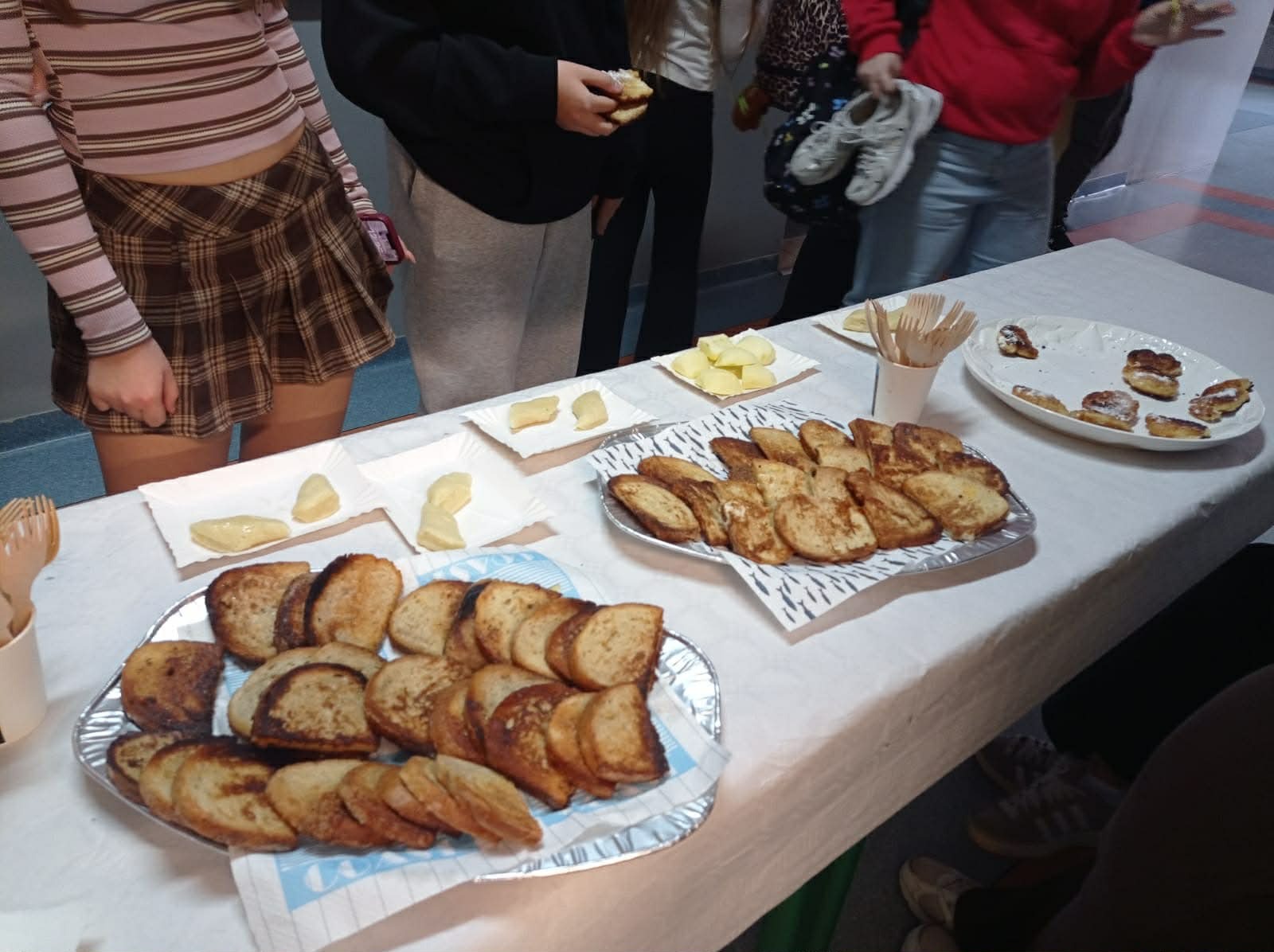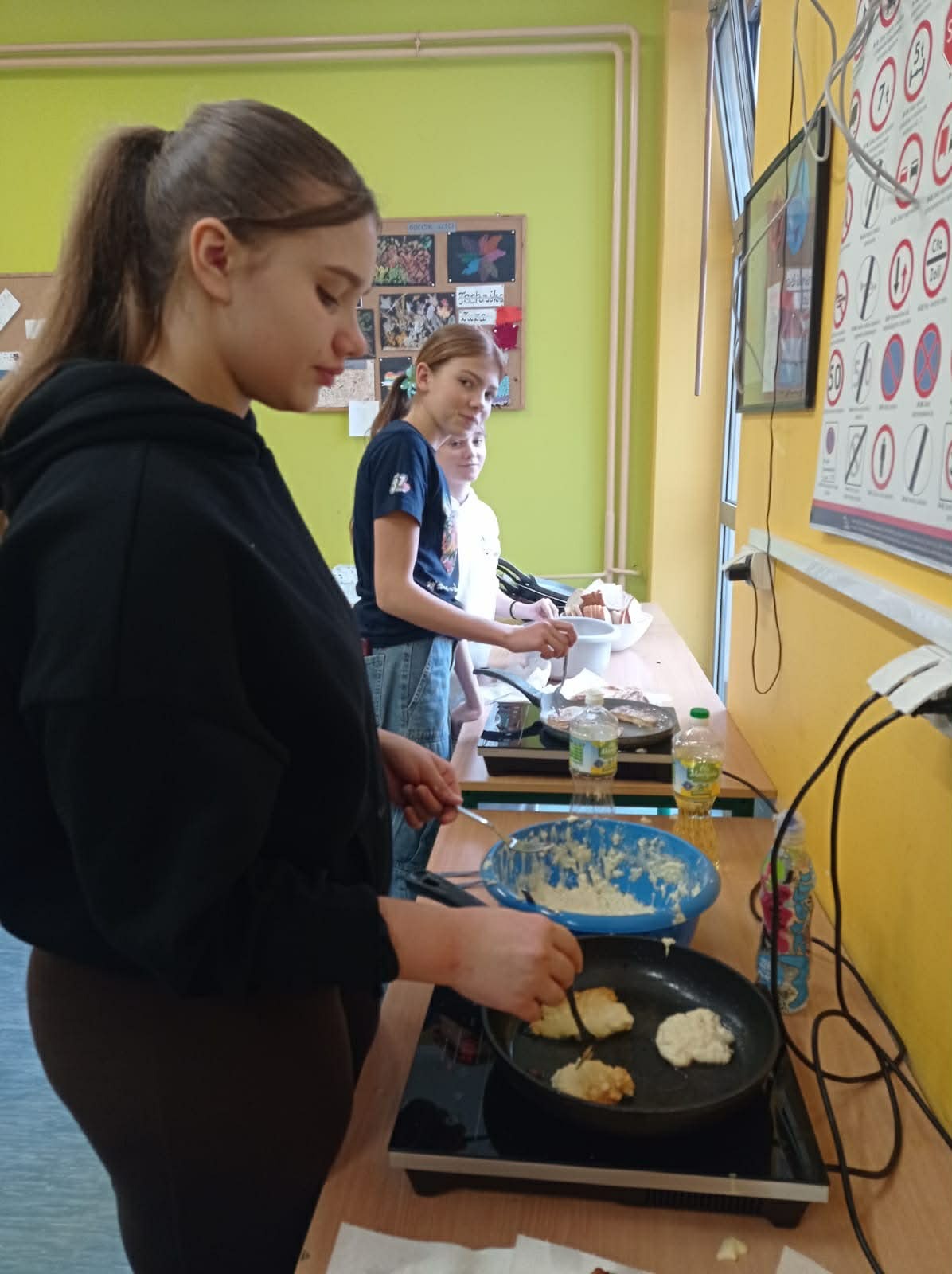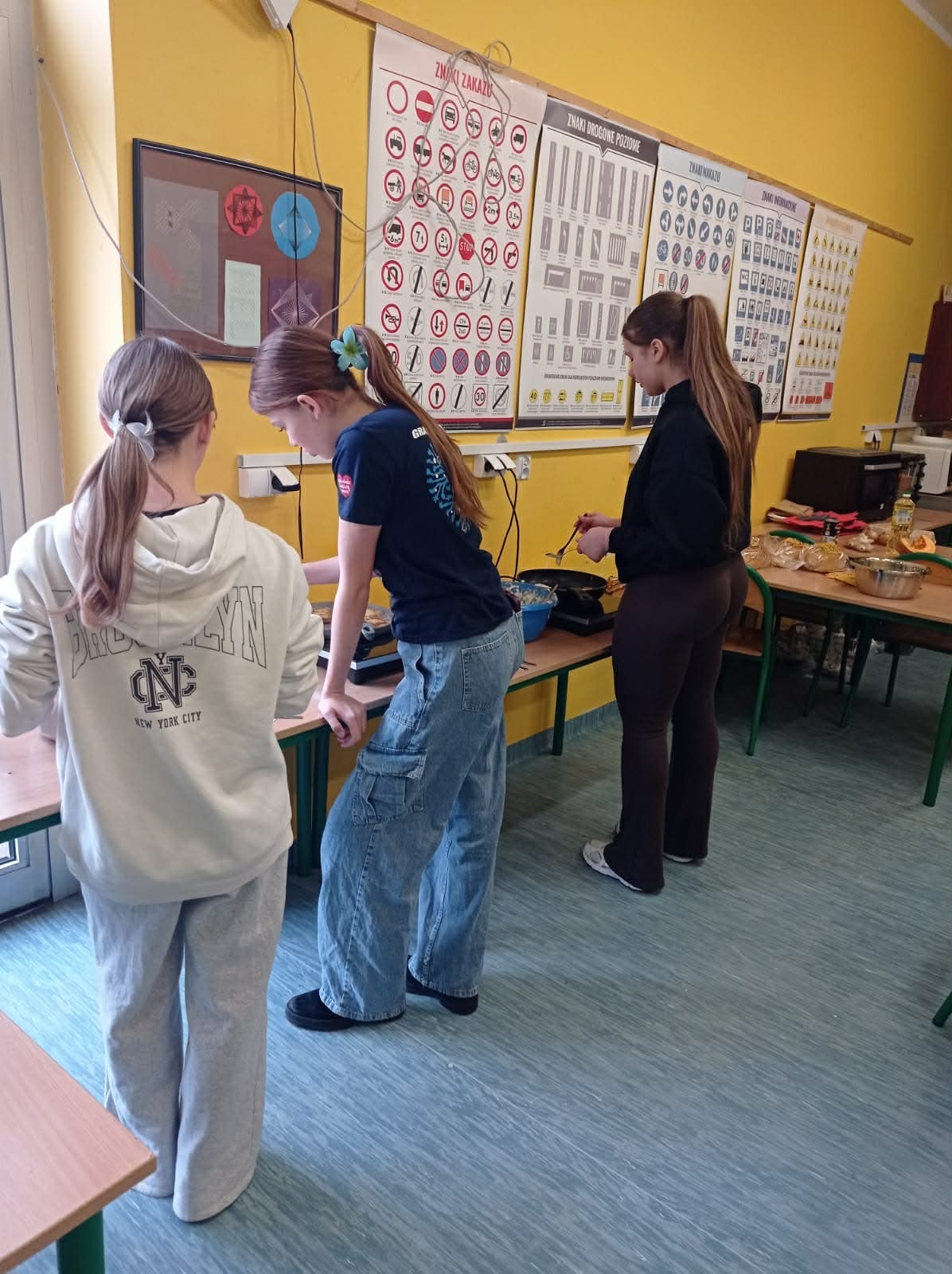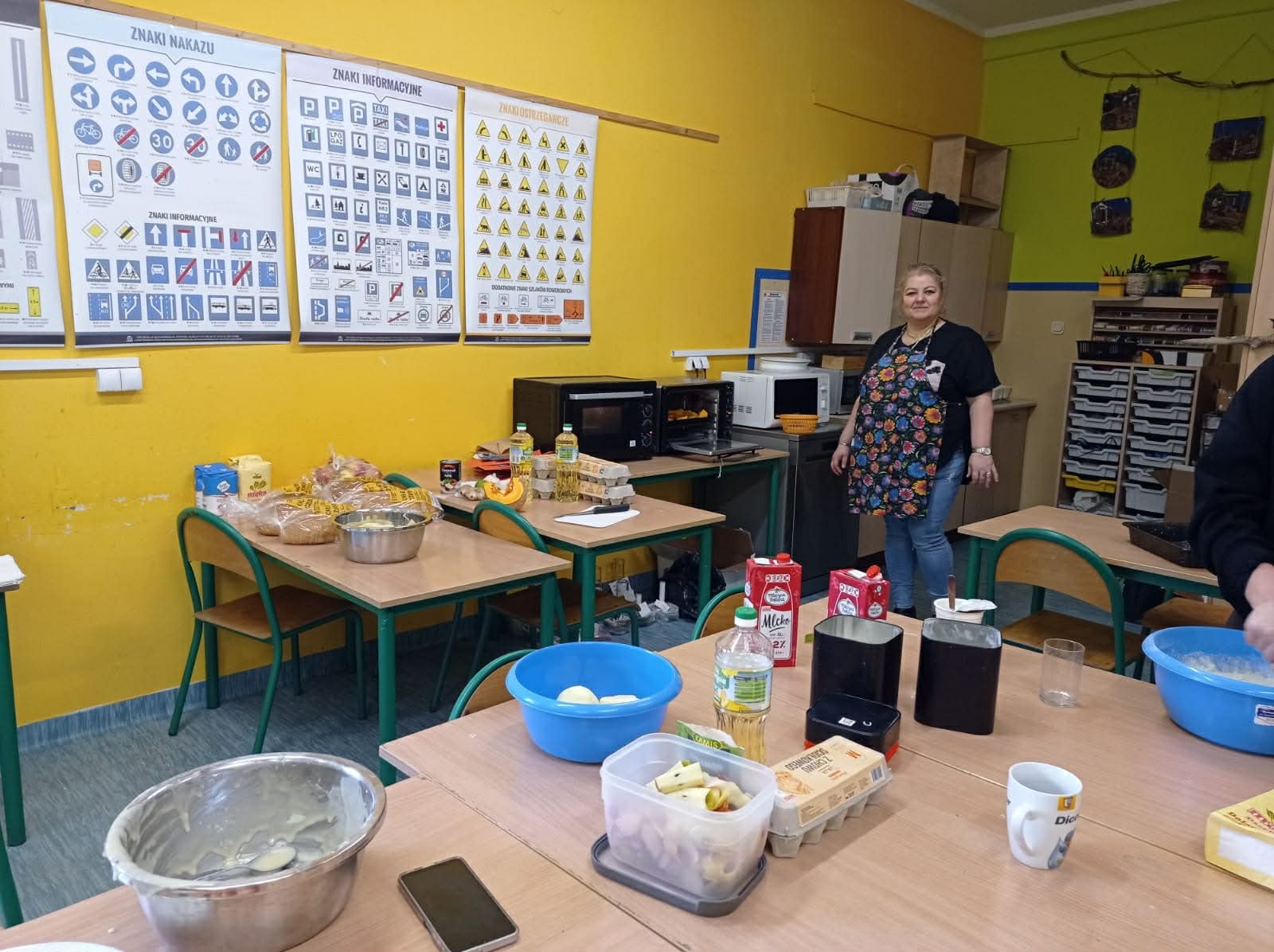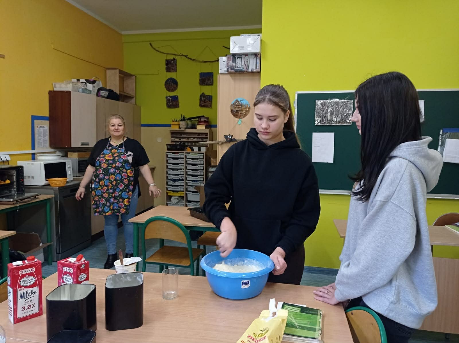 Tym razem zespół z klas 6 i 8 SP pod okiem Pań Oli Muttke Lamparskiej i Iwony Zyskiej przygotowywał popularne dania ze składników, które najczęściej pozostają z różnych innych posiłków. Stąd kopytka, racuszki z jabłkami, smażony w jajku chleb, ciasto dyniowe i jabłecznik. Pyszności cieszyły się wzięciem, a przy okazji uczyliśmy, jak nie marnować żywności. Warto pamiętać, że gospodarstwa domowe poprzez wybór produktów żywnościowych i przyzwyczajenia kulinarne wpływają na swoje otoczenie i tym samym mają udział w procesie globalnym. Każdego roku około 1/3 całej wyprodukowanej żywności – tj. 1,3 mld ton pożywienia o wartości około 1 biliona dolarów – marnuje się w domach lub sklepach albo psuje się z powodu złego transportu i praktyk związanych ze zbiorami.
