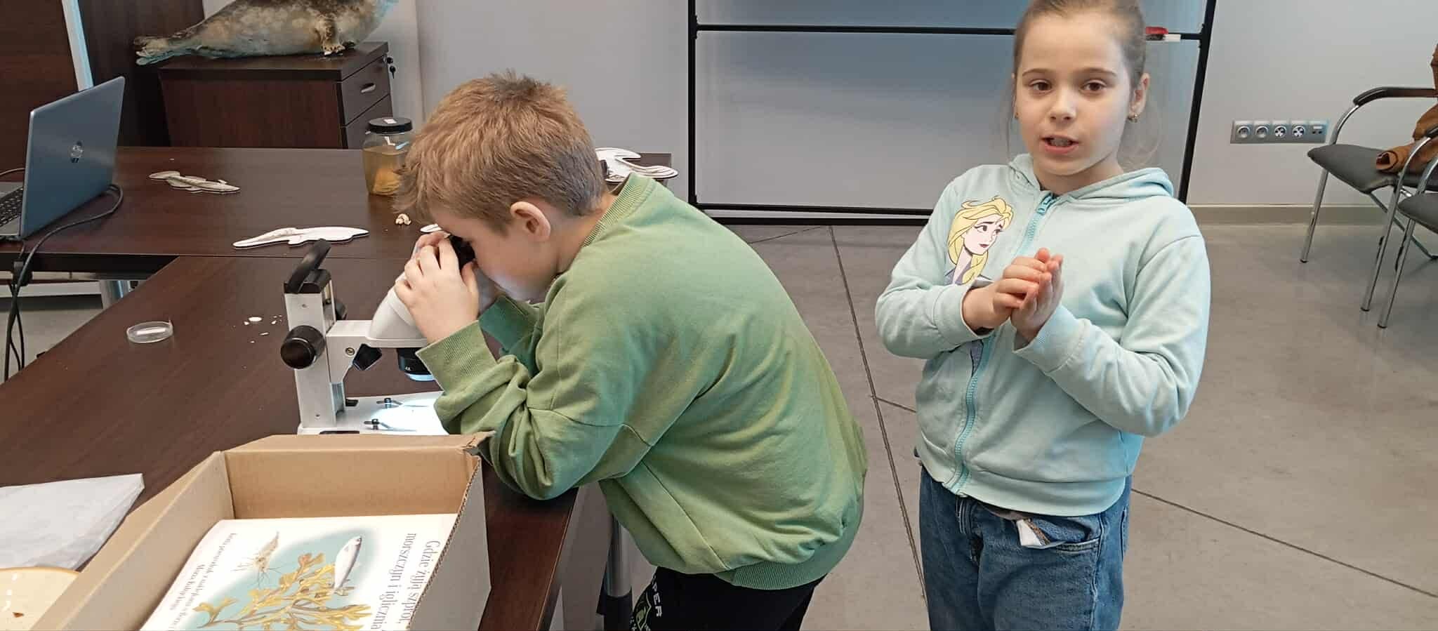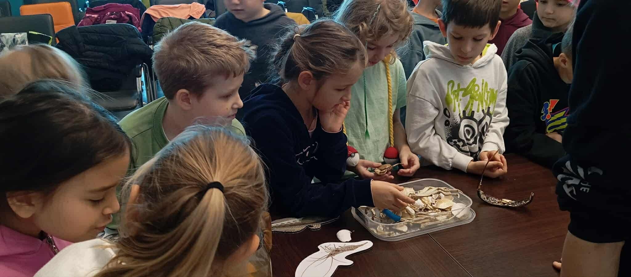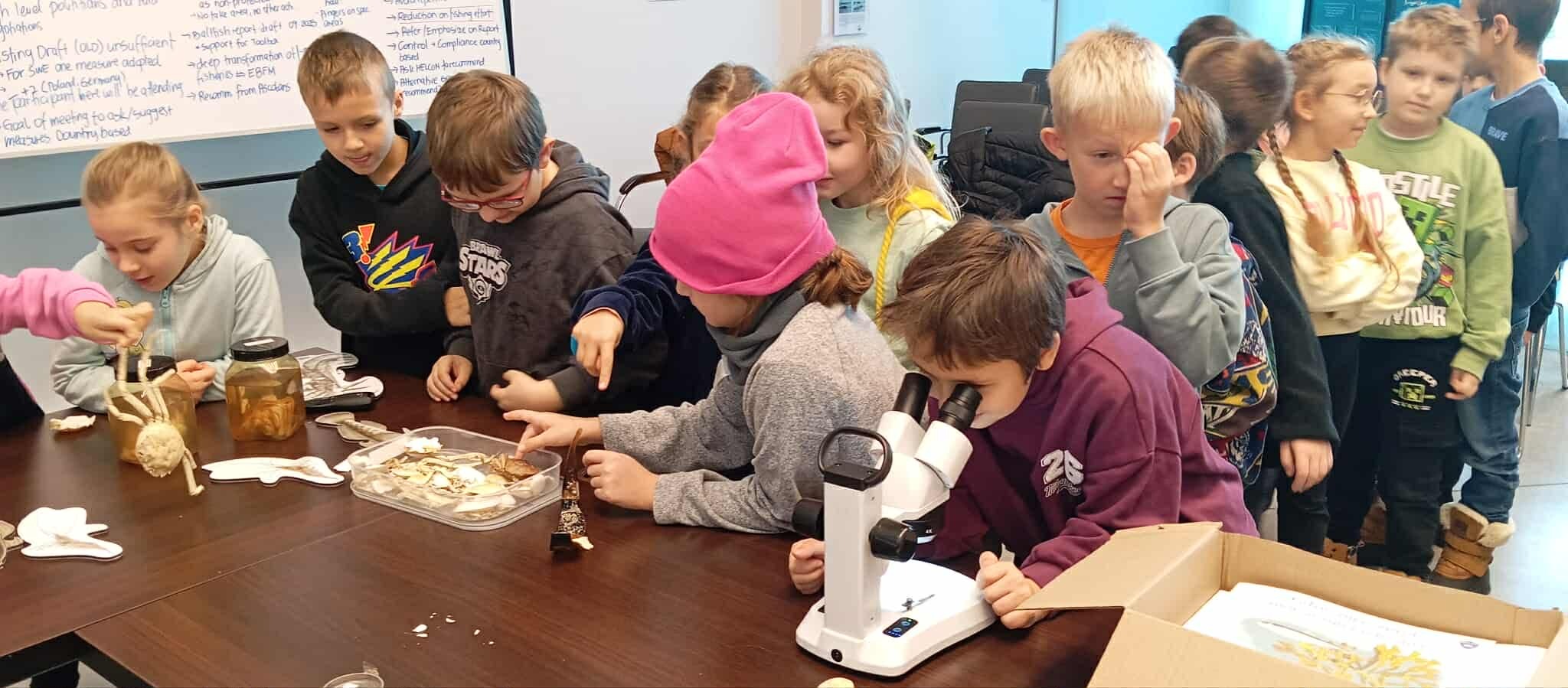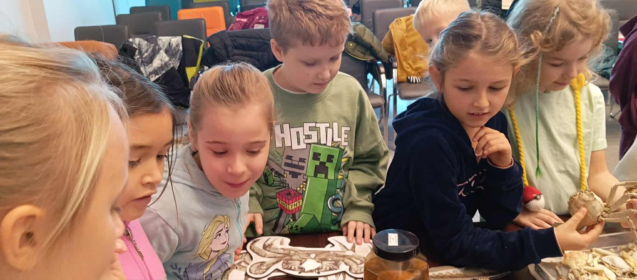 Klasy 2, 3 i 8 SP zdobywały wiadomości o gatunkach obcych i inwazyjnych w Bałtyku. Podziwiały kolekcję białych muszelek i krabów, badały pod mikroskopami pancerzyki pąkli i krabika amerykańskiego. Dodatkową atrakcją było zdobienie tekstyliów (koszulek, toreb) stemplami w kształcie krabików, krewetek i babki byczej. Tego dnia uczyliśmy się, jak chronić morskie i przybrzeżne ekosystemy w sposób zrównoważony.