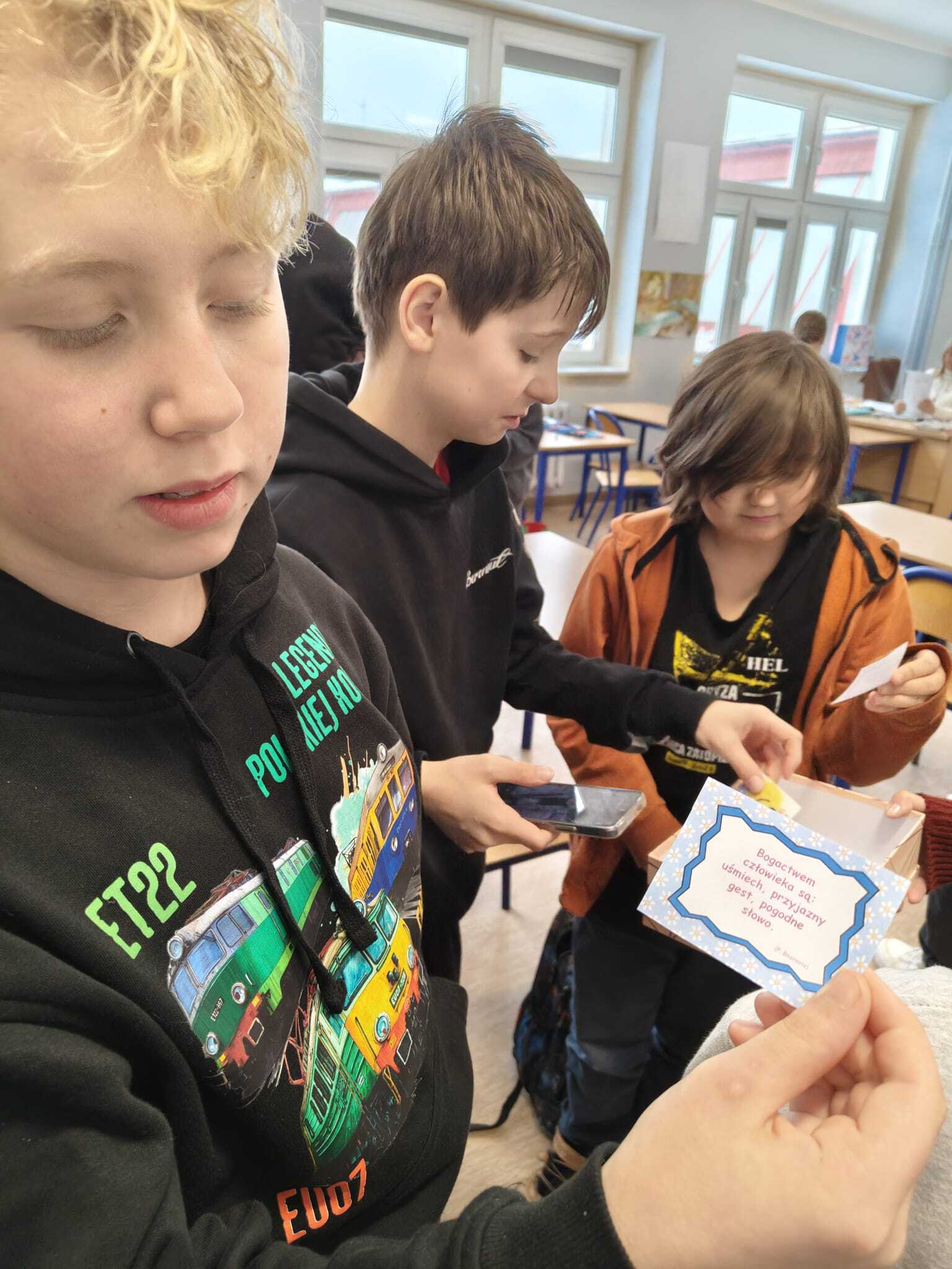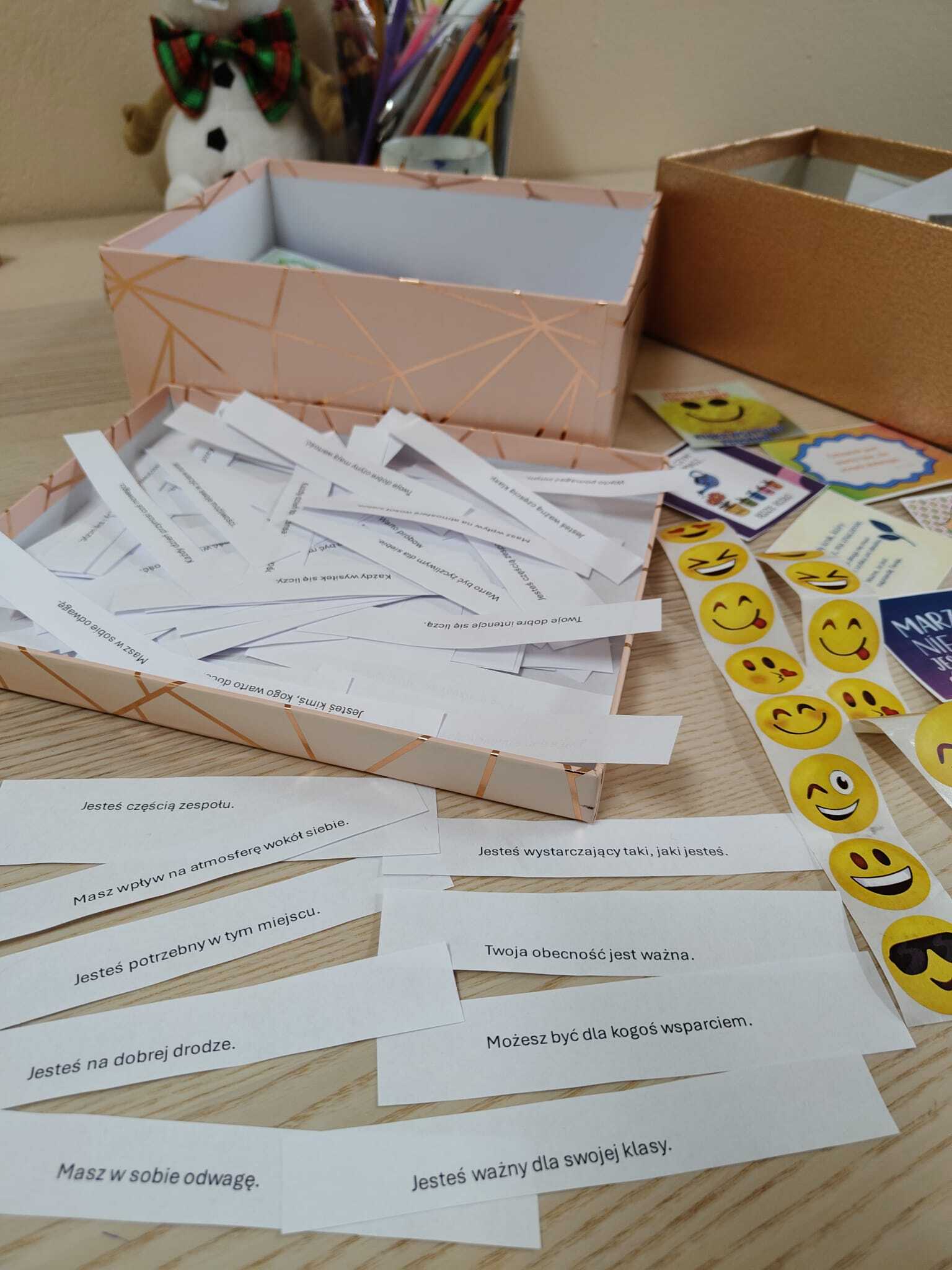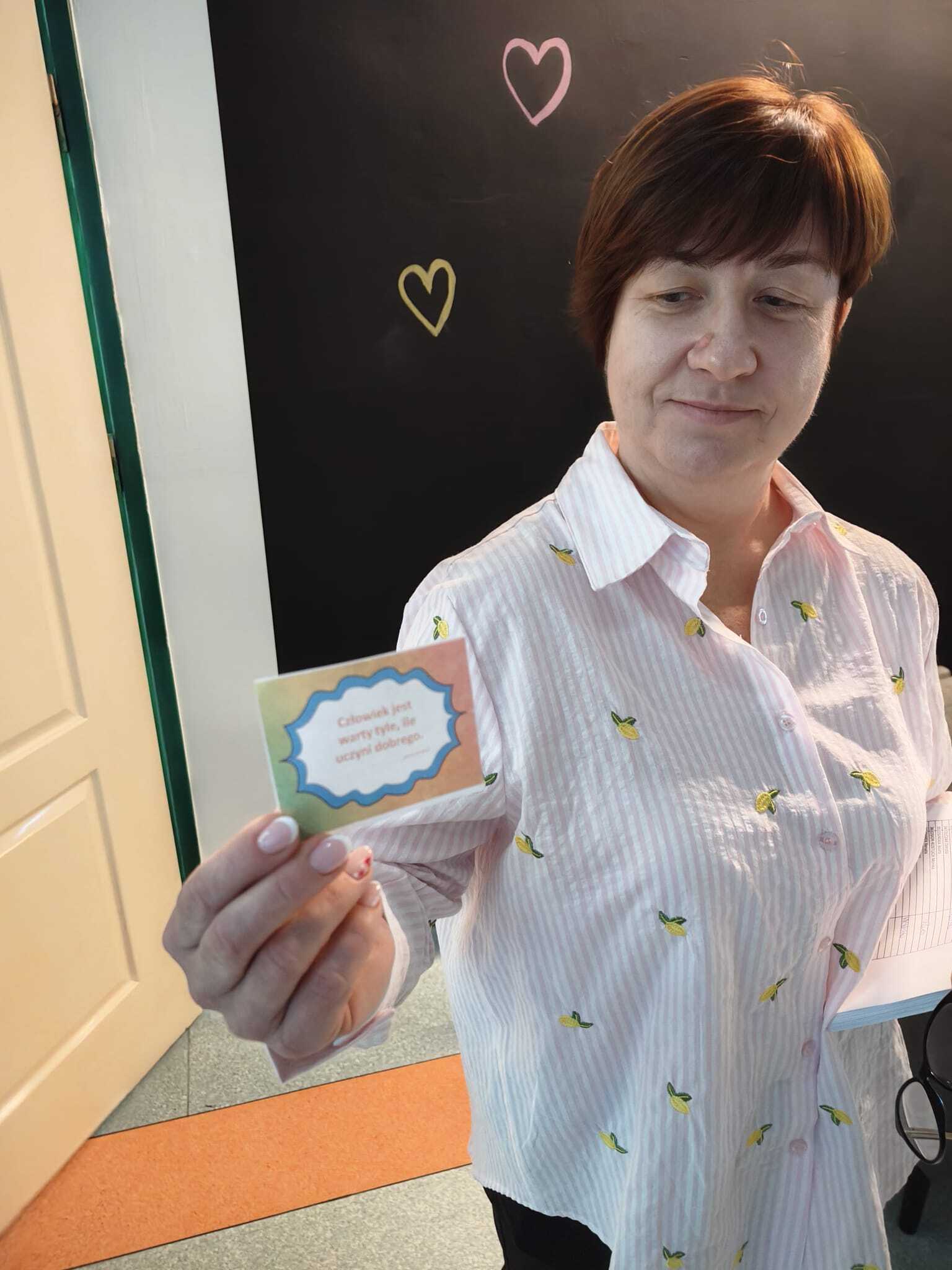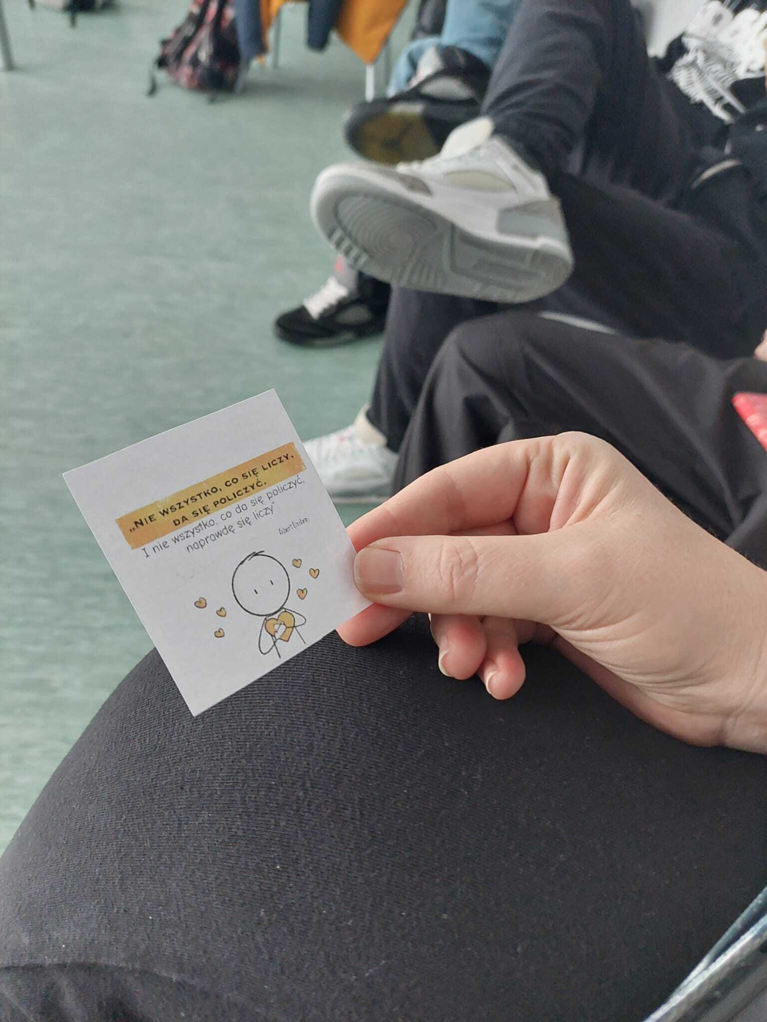 Nie był to jednak koniec niespodzianek… 13 lutego, w Międzynarodowy Dzień Kochania Siebie, którego celem jest wzmacnianie poczucia własnej wartości i poprawa zdrowia psychicznego, nasze panie psycholog rozdawały w całej szkole „kartki życzliwości”. Każdy – zarówno uczeń, jak i nauczyciel czy pracownik - mógł wylosować swoją złotą myśl i w wielu przypadkach okazała się ona niezwykle trafna