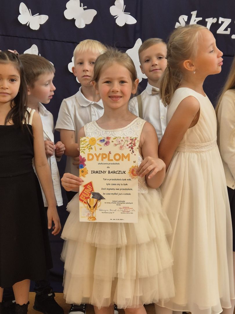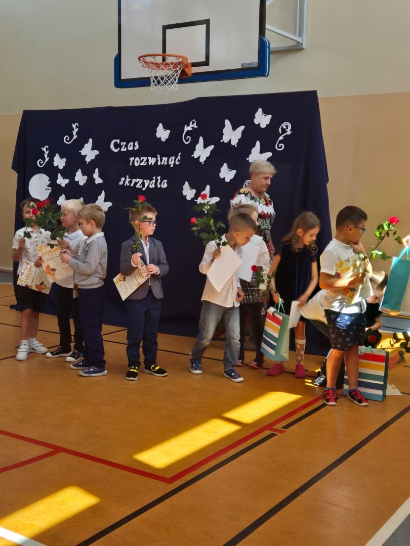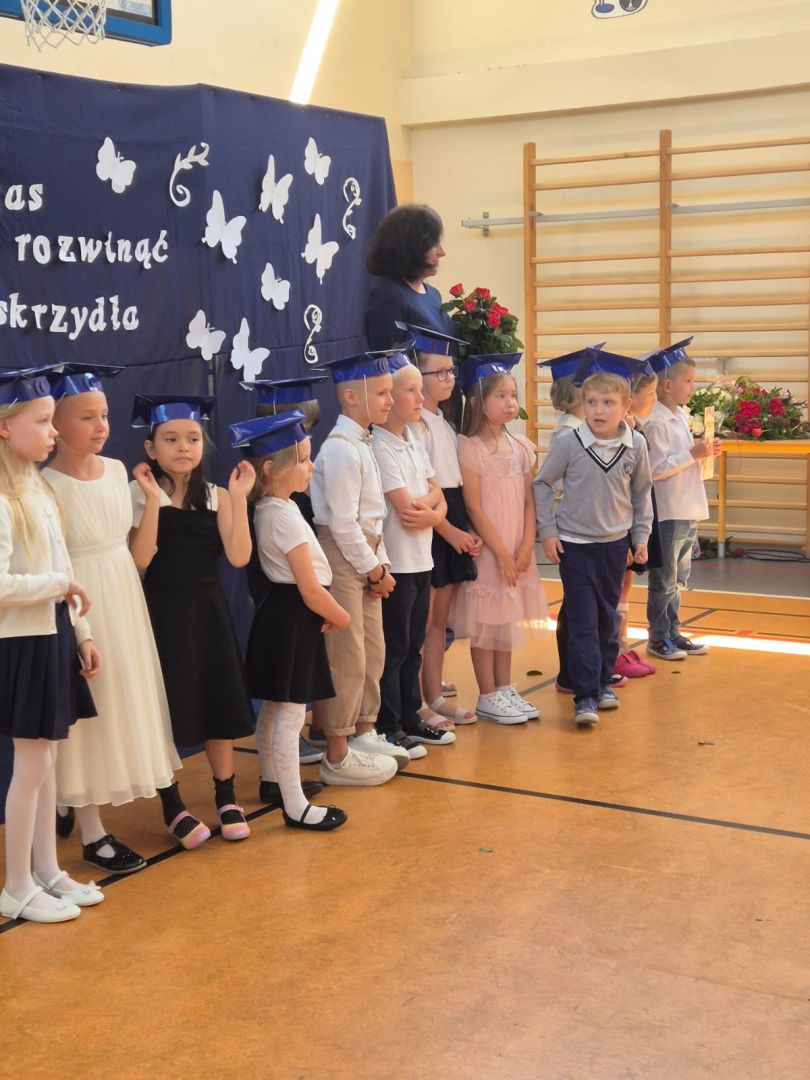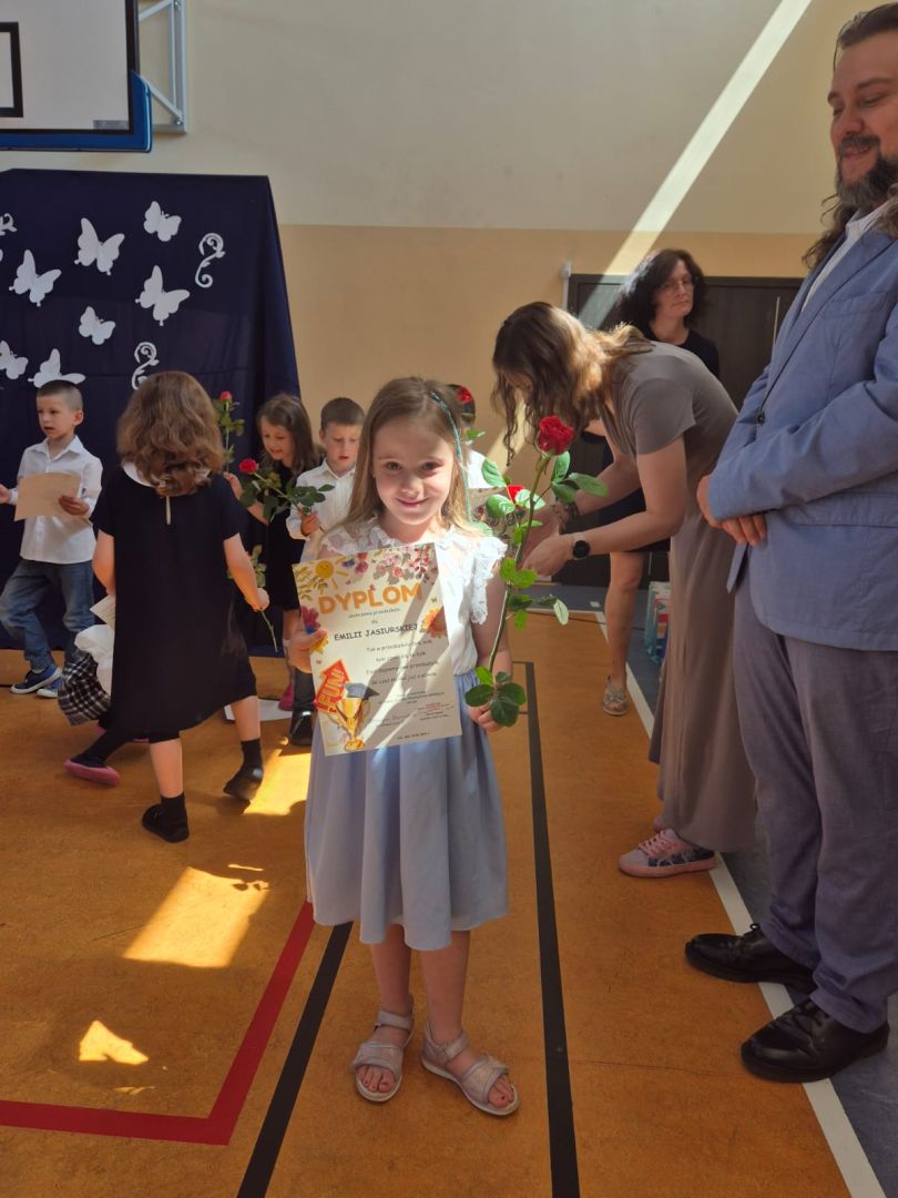 18.06.2024 r. w grupie "Rybki" odbyło się uroczyste zakończenie roku przedszkolnego oraz pożegnanie przedszkola. Dzieci pięknie zatańczyły poloneza oraz wspaniałe zaprezentowały program artystyczny. W przygotowanie uroczystości dzieci włożyły wiele pracy, a wszyscy obecni goście docenili ich trud gromkimi brawami. Po części artystycznej Pan Dyrektor razem z Panią Wicedyrektor życzył dzieciom wielu sukcesów w szkole oraz wręczył dyplomy ukończenia przedszkola i upominki. Dzień był wyjątkowy oraz pełen wzruszeń.