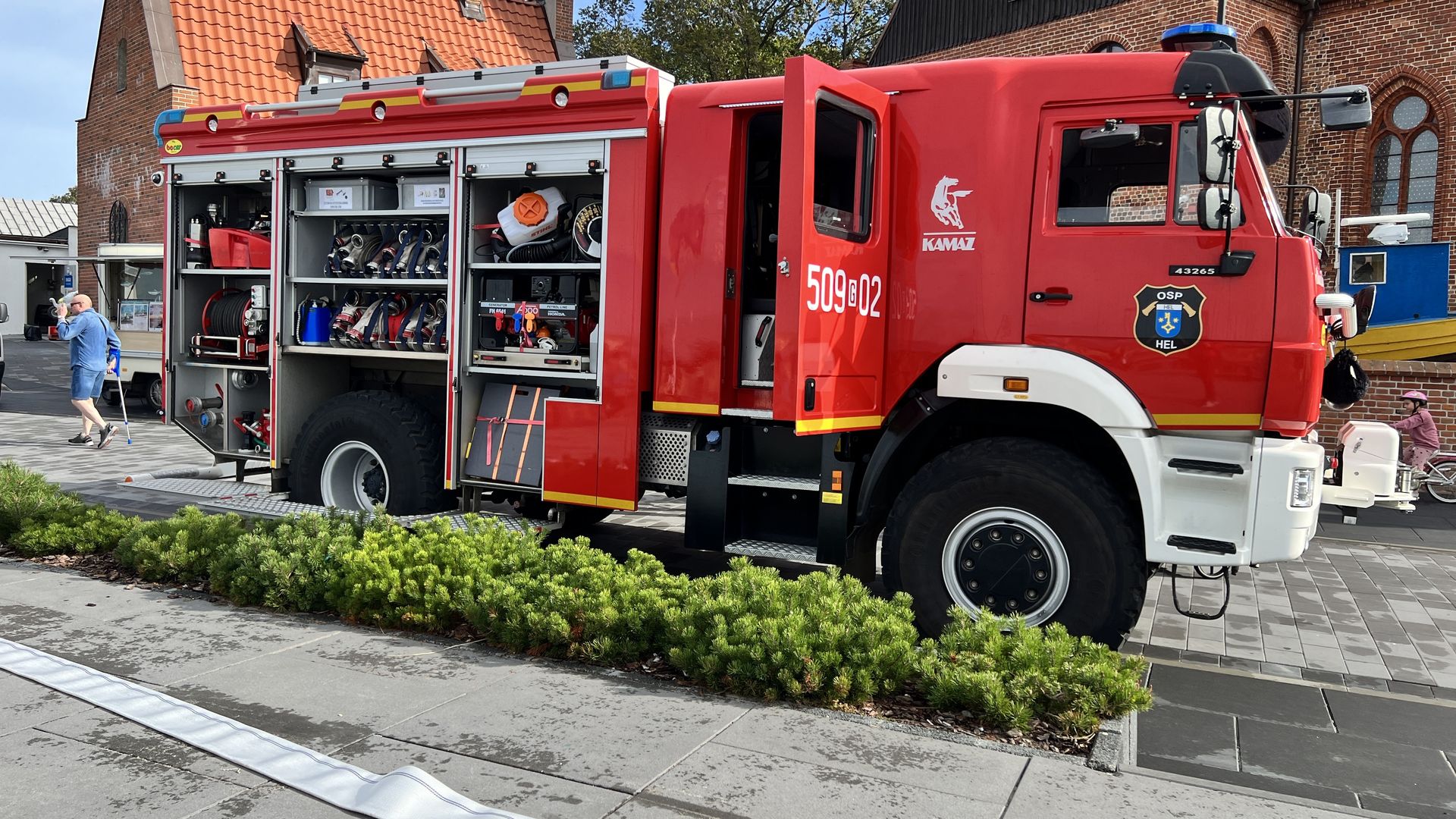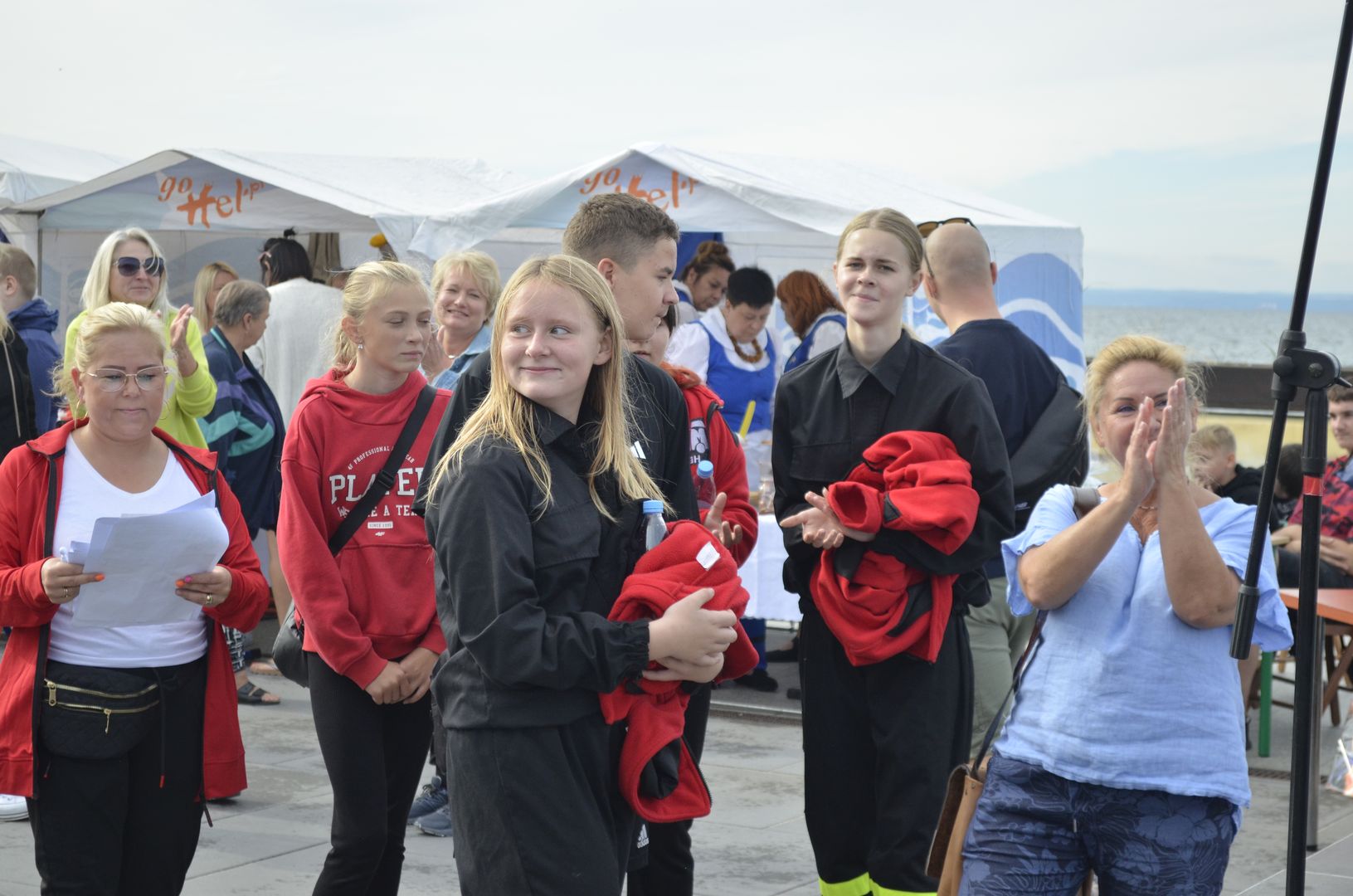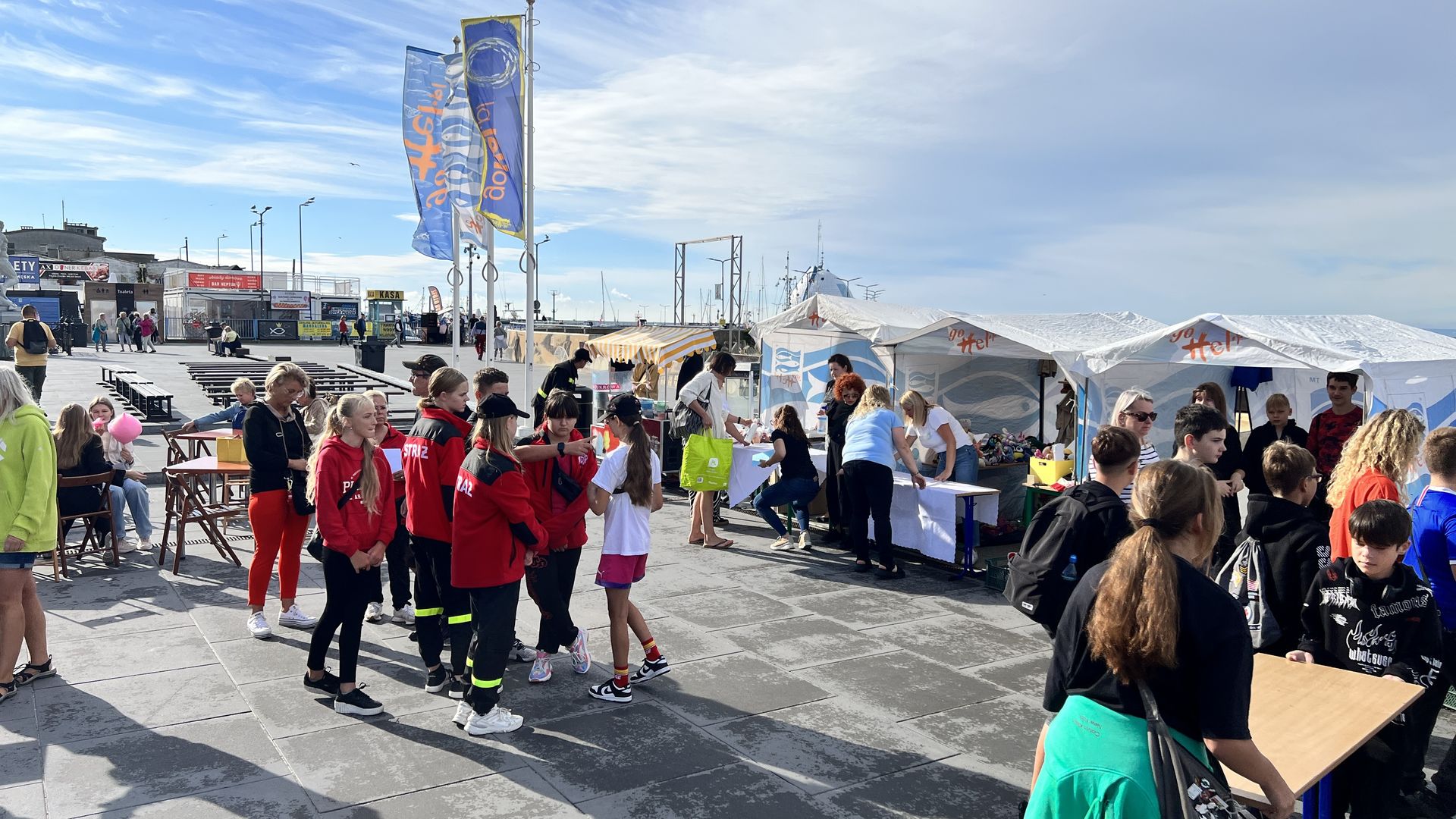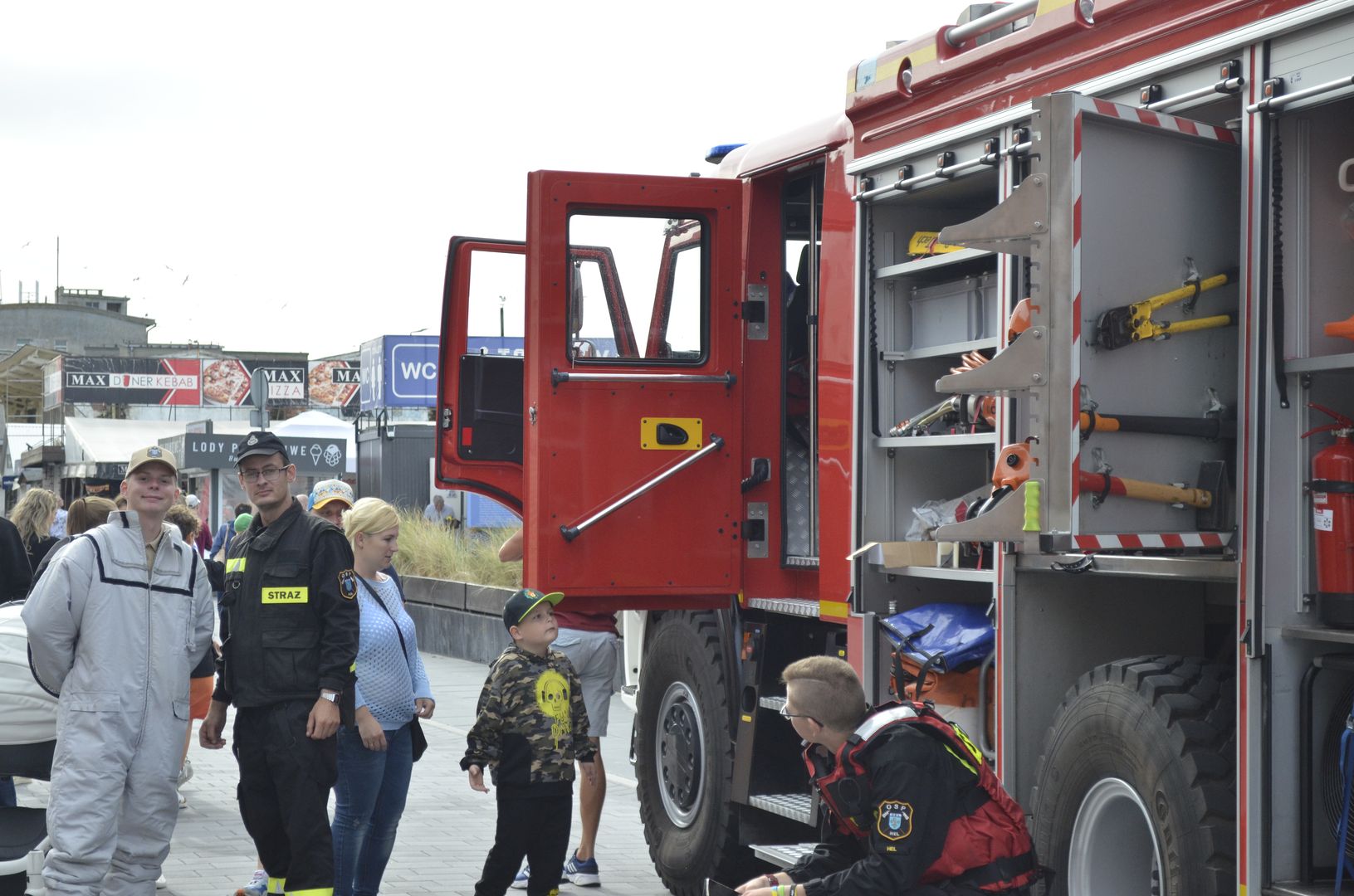Odważni mogli stanąć w szranki konkursów sprawnościowych, które zorganizowała OSP Hel. Zawody w przesuwaniu piłki tenisowej przez wąż strażacki cieszyły się takim powodzeniem, że wielonarodowa grupa turystów przyłączyła się do nas i ku uciesze obserwatorów osiągnęła najlepszy czas.