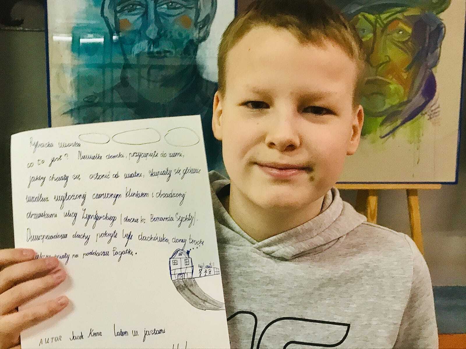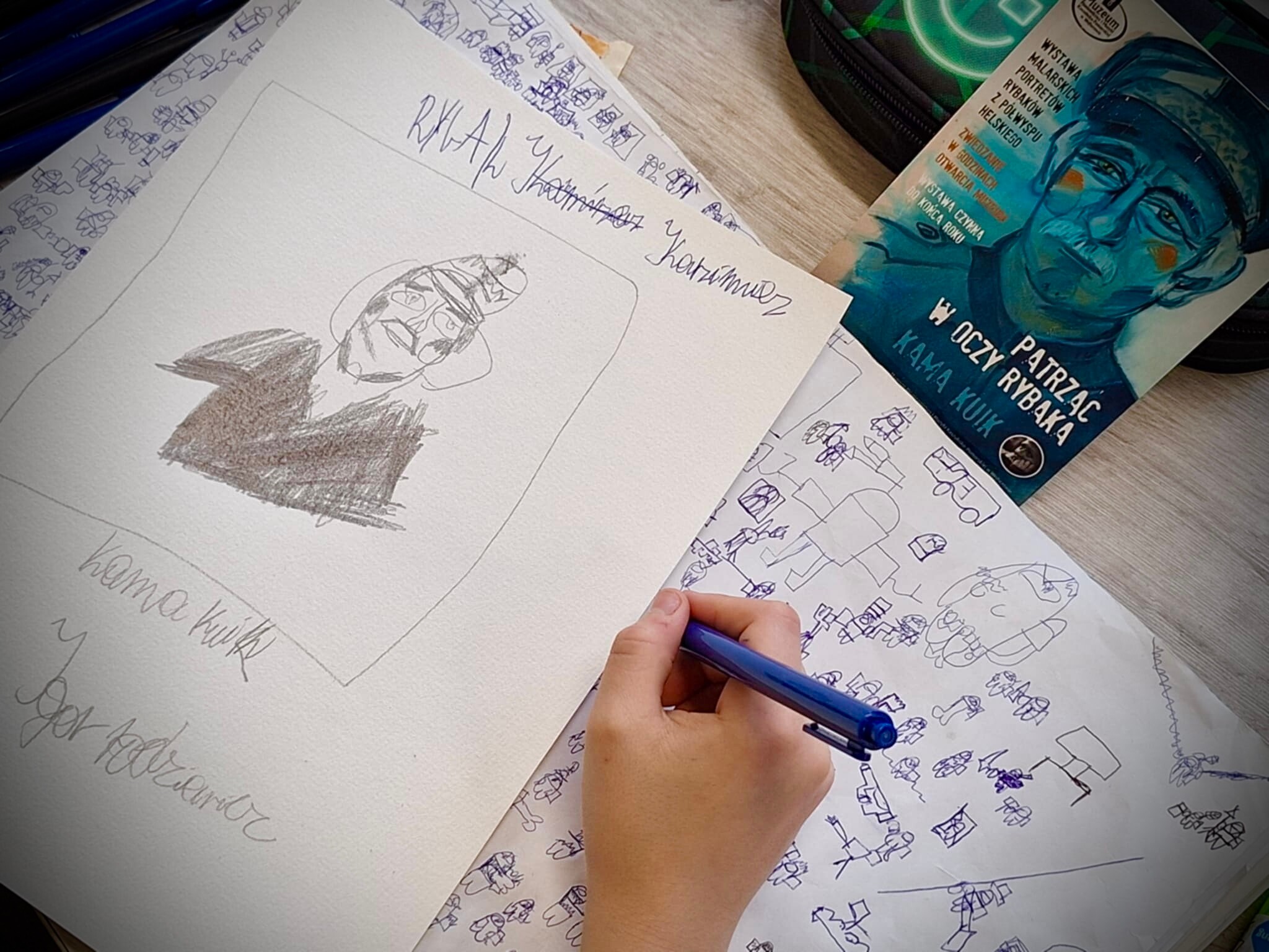 Kończy się okres prezentacji malarskich portretów rybaków z półwyspu helskiego w naszej szkole. Wystawa towarzyszyła Kaszubskim Czwartkom- listopadowemu i grudniowemu, stanowiła także element scenografii podczas warsztatów: Moja Familijna Opowieść Rybacka. W zajęciach wzięli udział uczniowie klasy 2HEL~LO, klas 6ab i 8 SP. Tworzyli „mini książki” – skrawki najbliżej sercu pamięci o Ludziach, przedmiotach, miejscach, próbując wyodrębnić, nazwać i ocalić od zapomnienia znaki tożsamości związane z ziemią wśród wód Bałtyku. Dobrze jest w zrozumieniu i z czułością słuchać drżenia własnego serca. Pani Kamo, dziękujemy i pozdrawiamy!